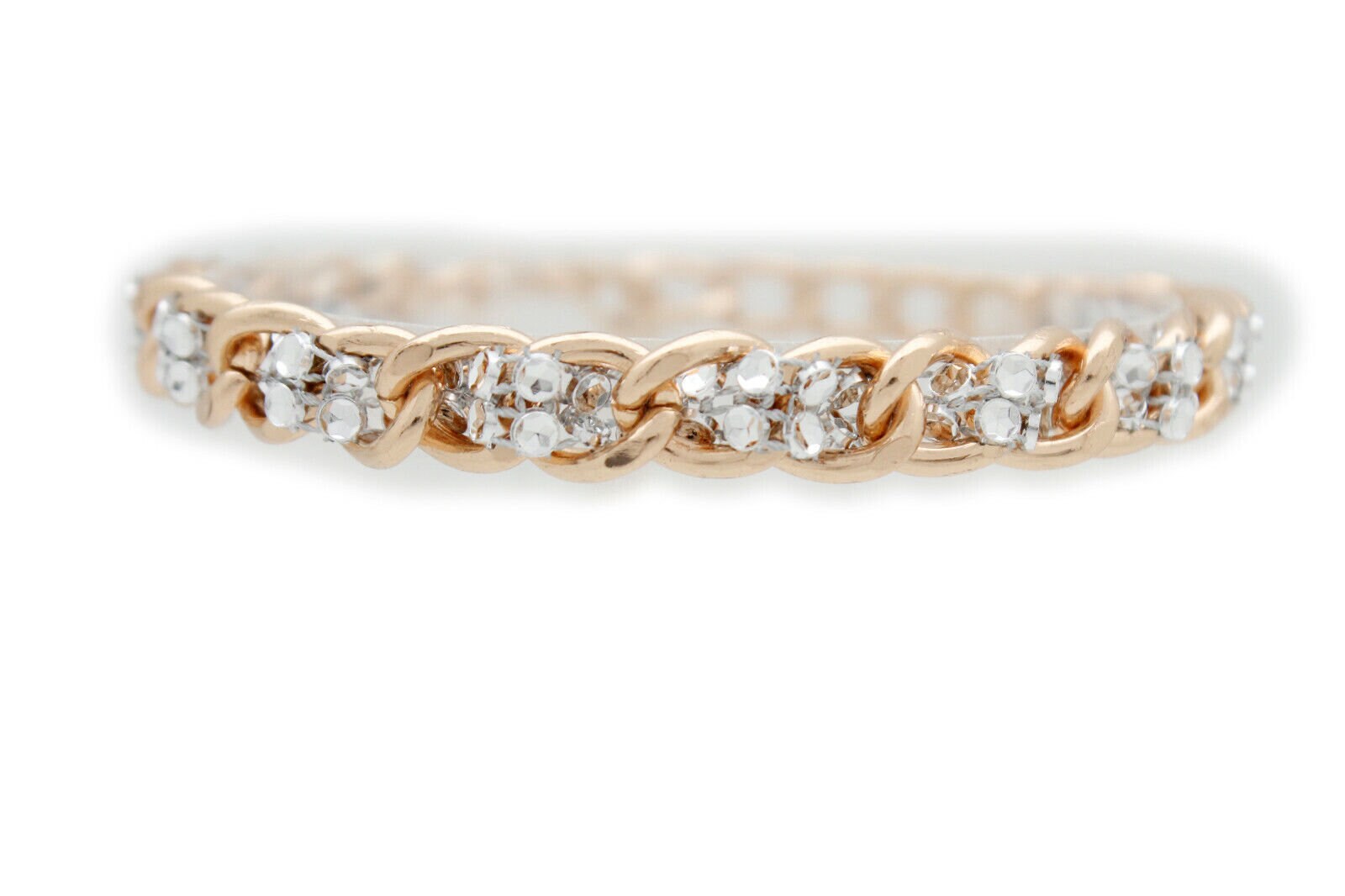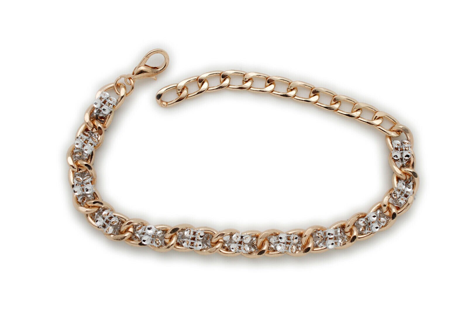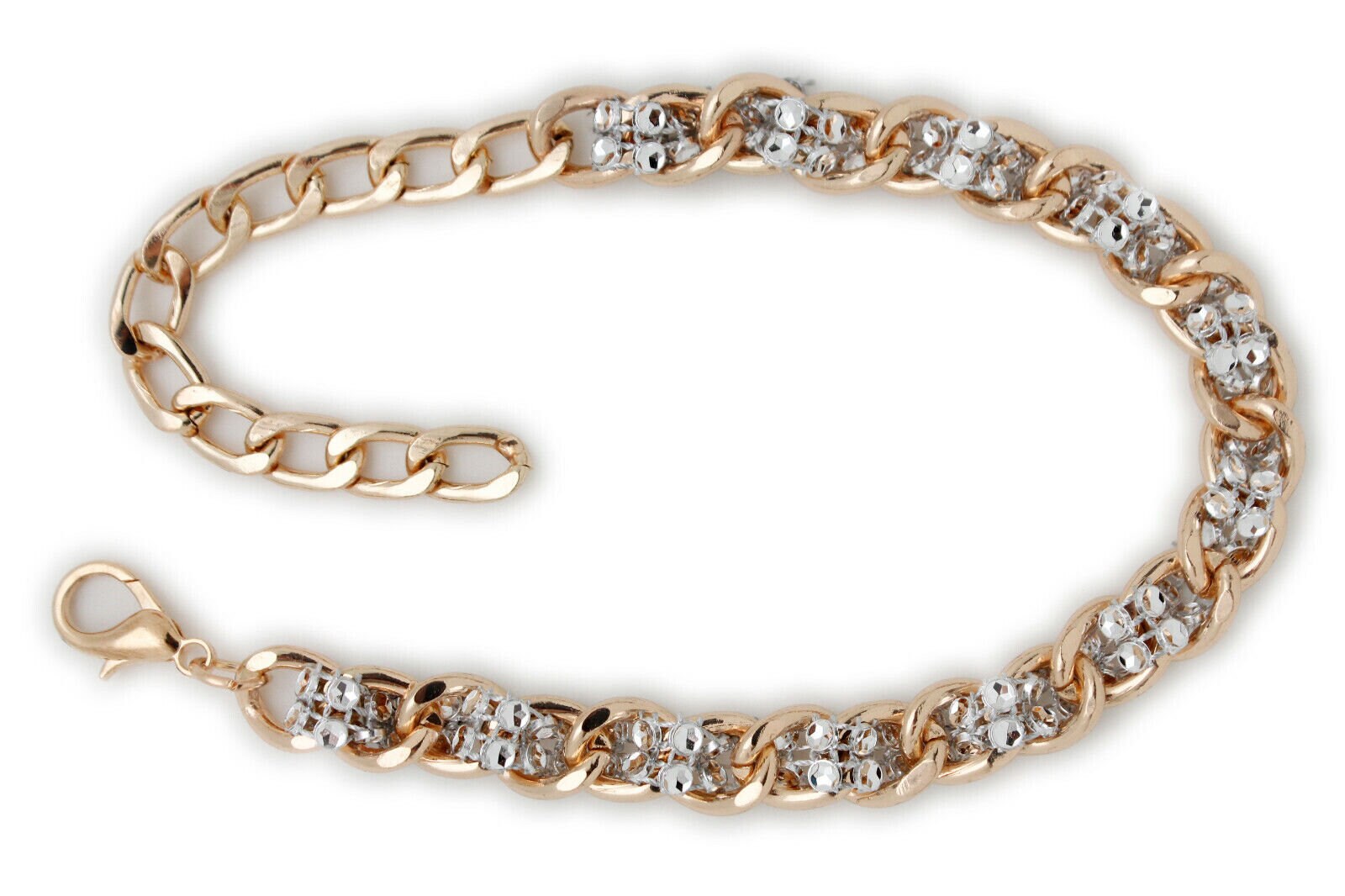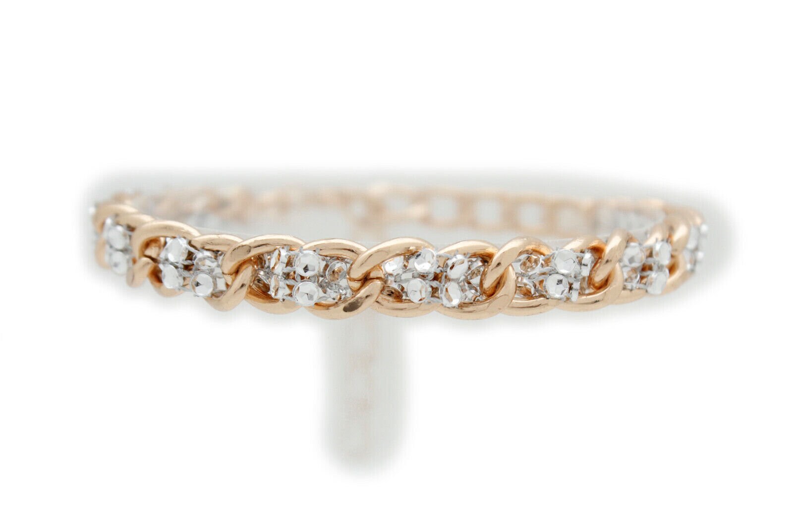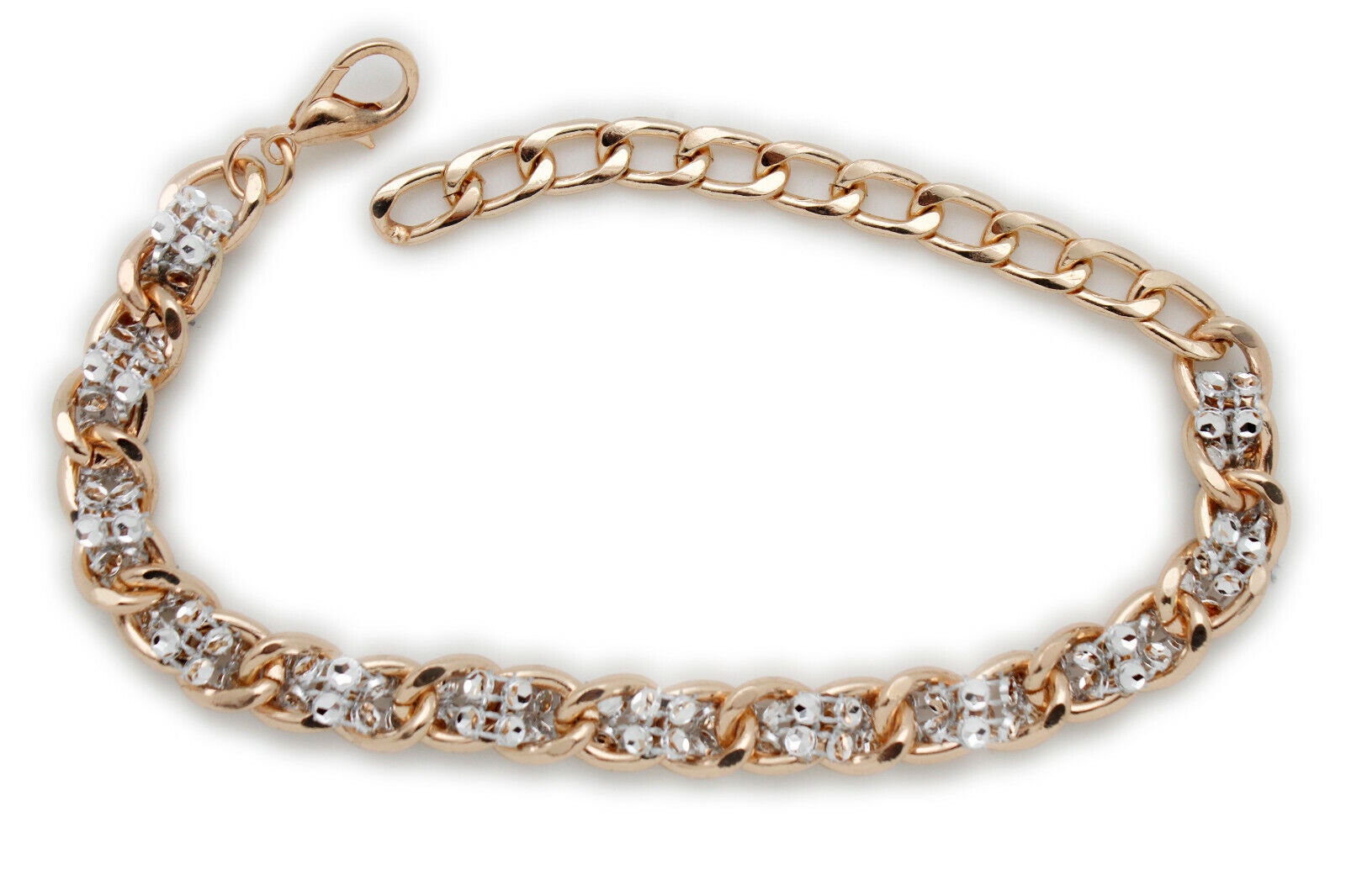 color: gold-tone metal chain links + silver-tone mesh weave bead accents