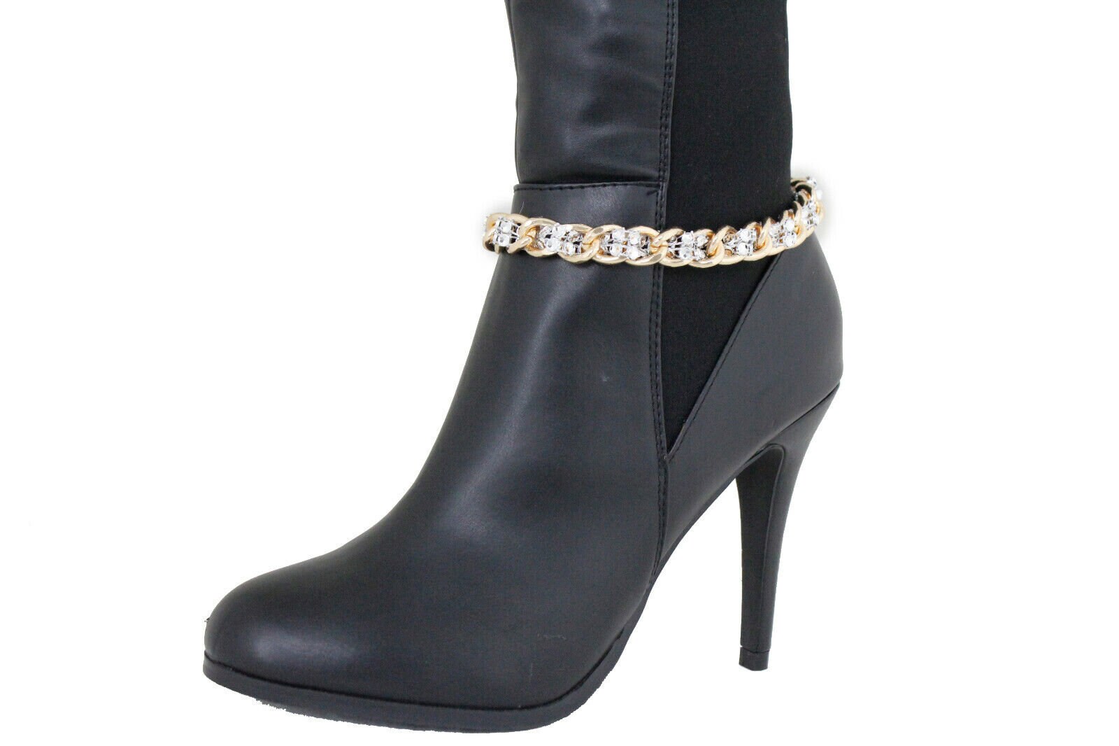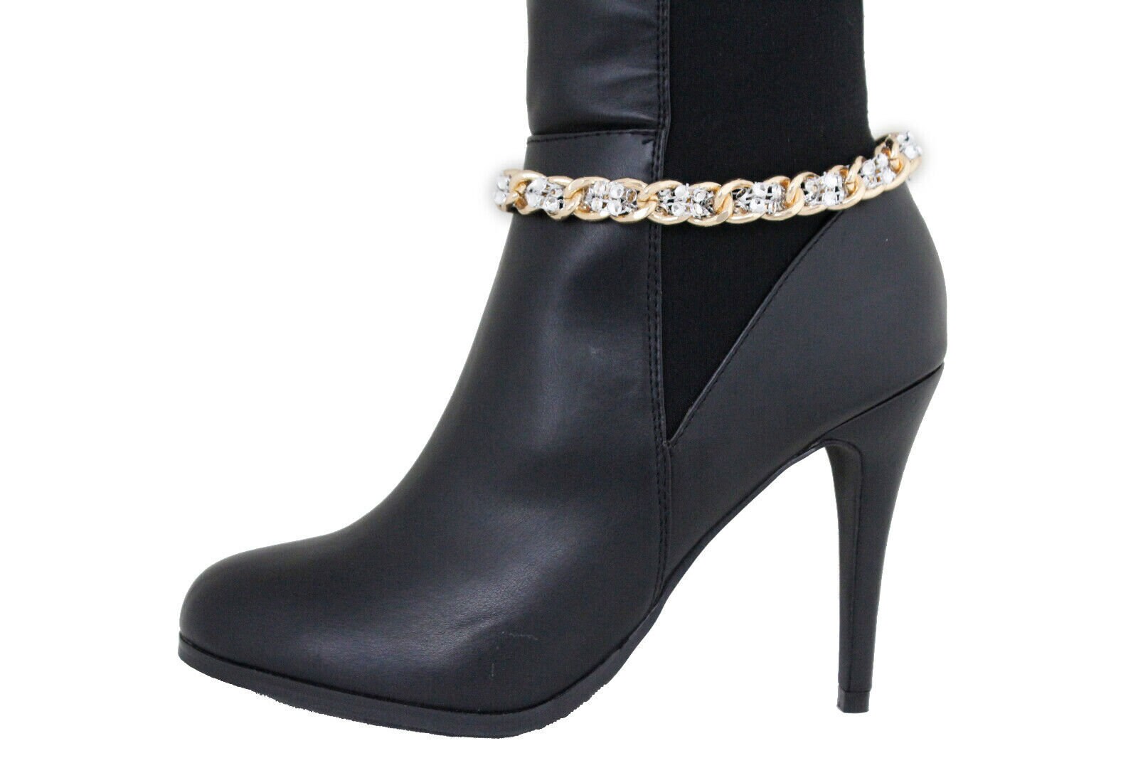 Add a polished sparkle detail to your boots in seconds. This listing is for bc170, a pair (2 pcs) of handmade boot chain bracelets designed to sit around the ankle area or lower boot shaft. The look is clean and elevated: gold-tone chain links with silver-tone mesh weave bead accents for dimensional shine that catches the light while you move.