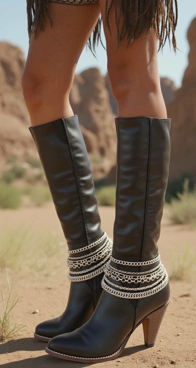 ✅ 2-Piece Matching Set (Left + Right Boots): Complete your outfit with this glamorous pair of silver metal boot chain bracelets. Designed to wrap around both boots for a matching cowgirl-inspired look that slays.