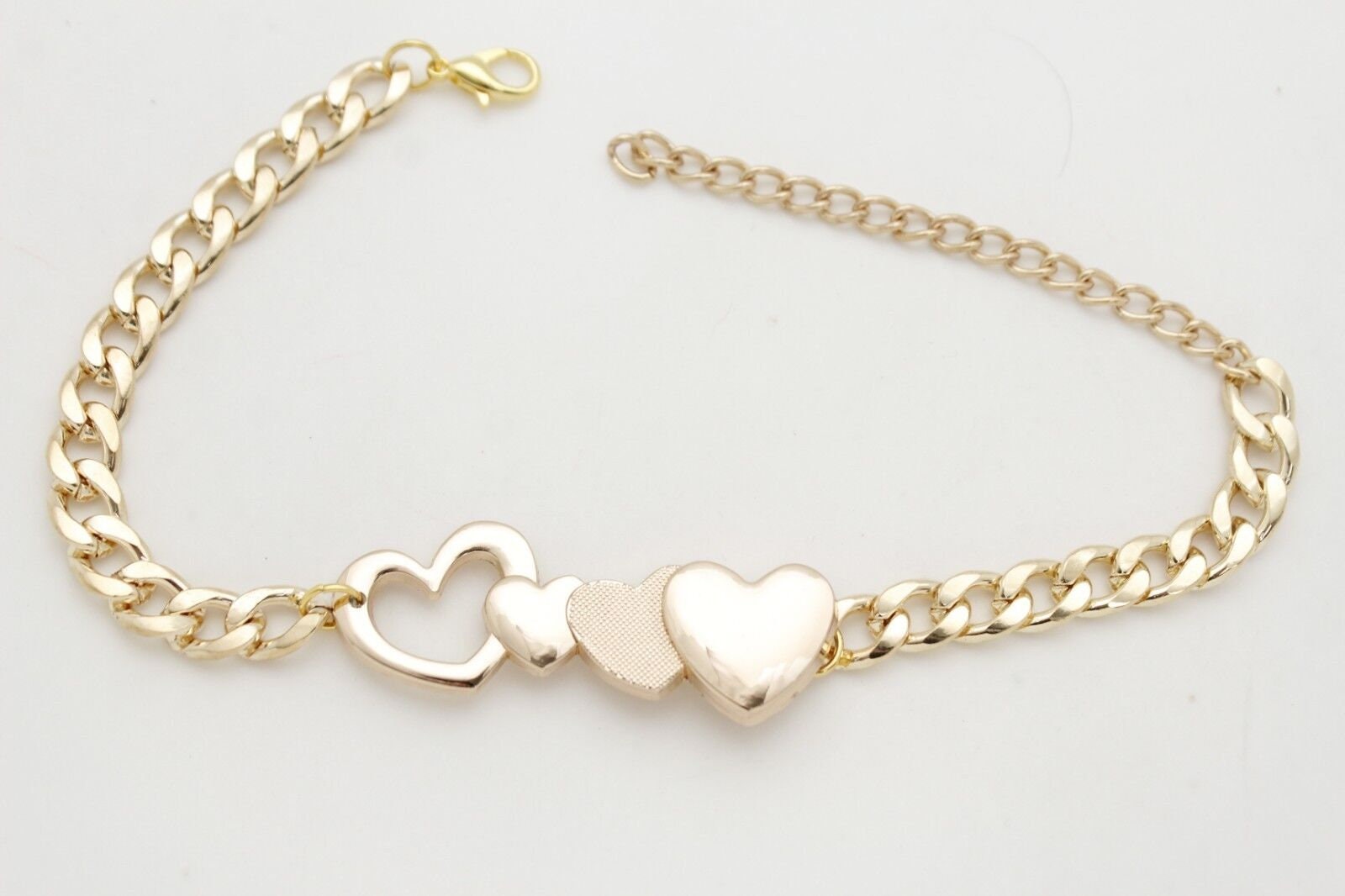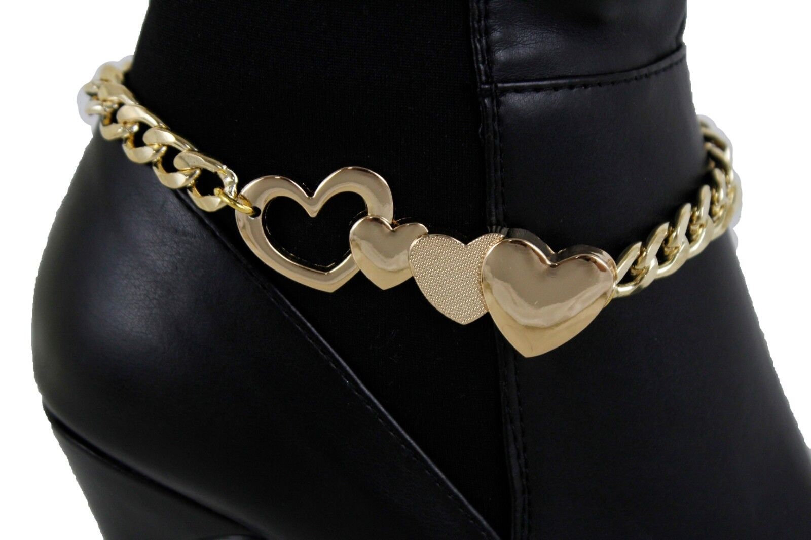Turn your boots into the main character. This BC156 set is a pair of gold-tone chain boot bracelets finished with a multi-heart charm centerpiece—a sweet detail with a bold chain-link edge. It’s the kind of accessory that makes simple outfits look styled in seconds: boots, jeans, a jacket, and suddenly it feels like a full look.