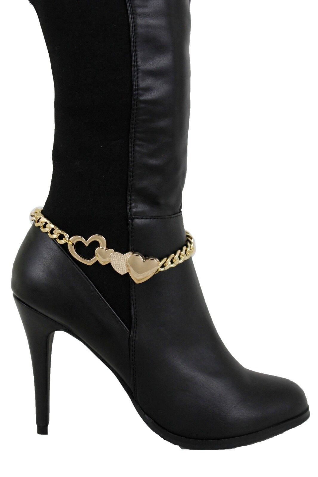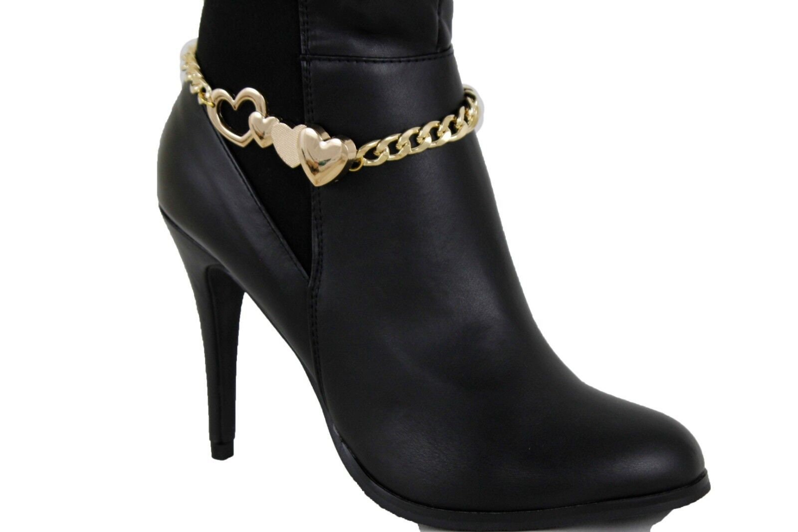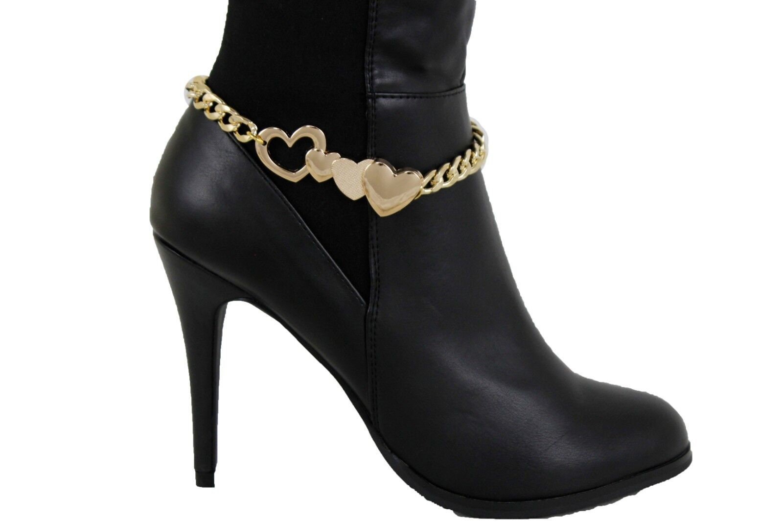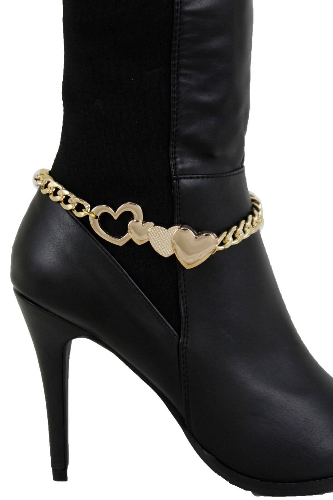 Gold Heart Boot Chain Bracelet Set, Pair Boot Jewelry Shoe Anklets BC156