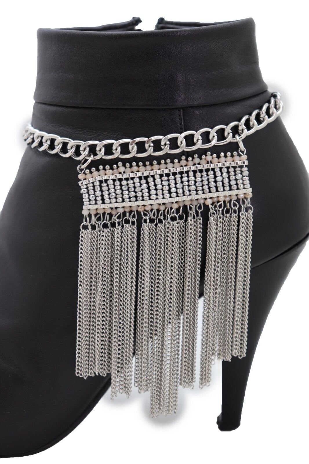 Introducing the Brand New Fancy Western Fashion Sexy Boot Chic Metal Chain Links Bracelet with a Twist of Tassels! Elevate your style and make a statement at special events, parties, or casual outings. Handcrafted with care in the U.S.A, this unique piece is a must-have for every fashion-forward individual.