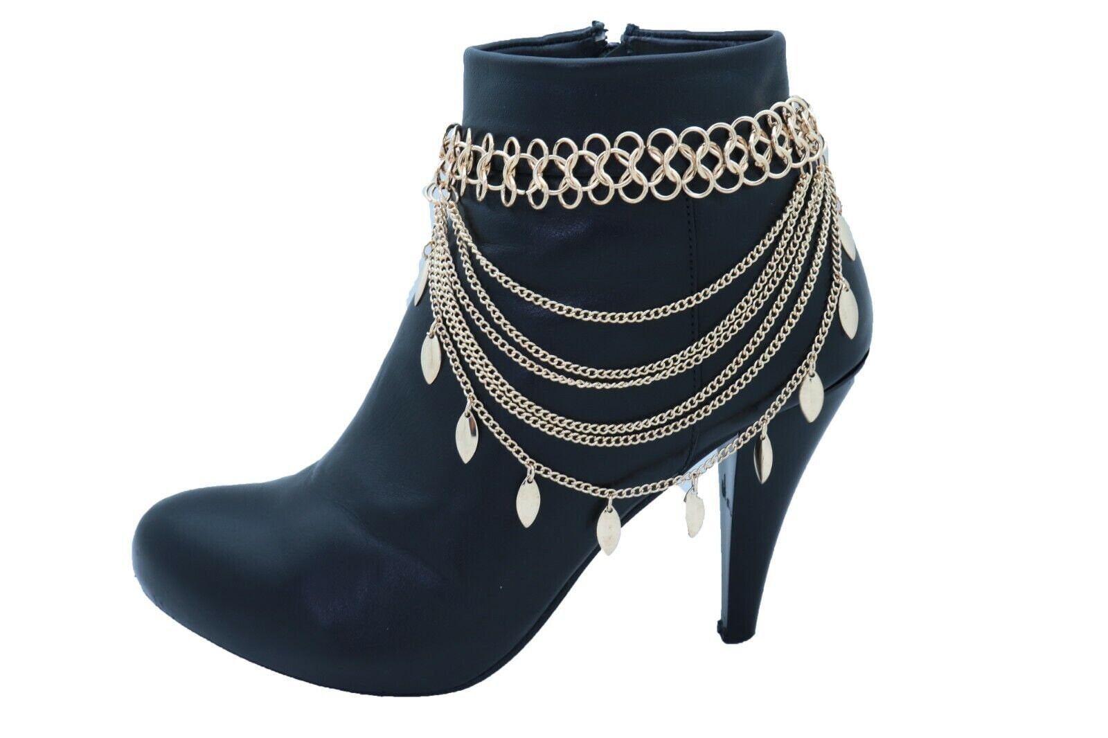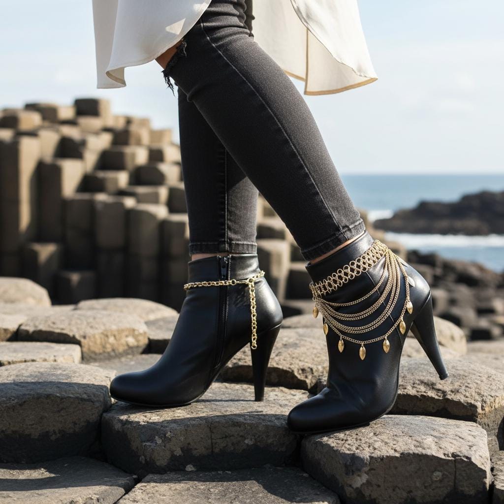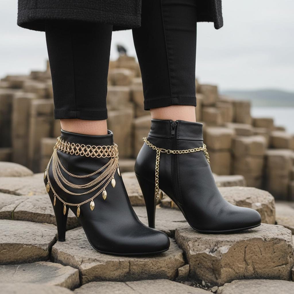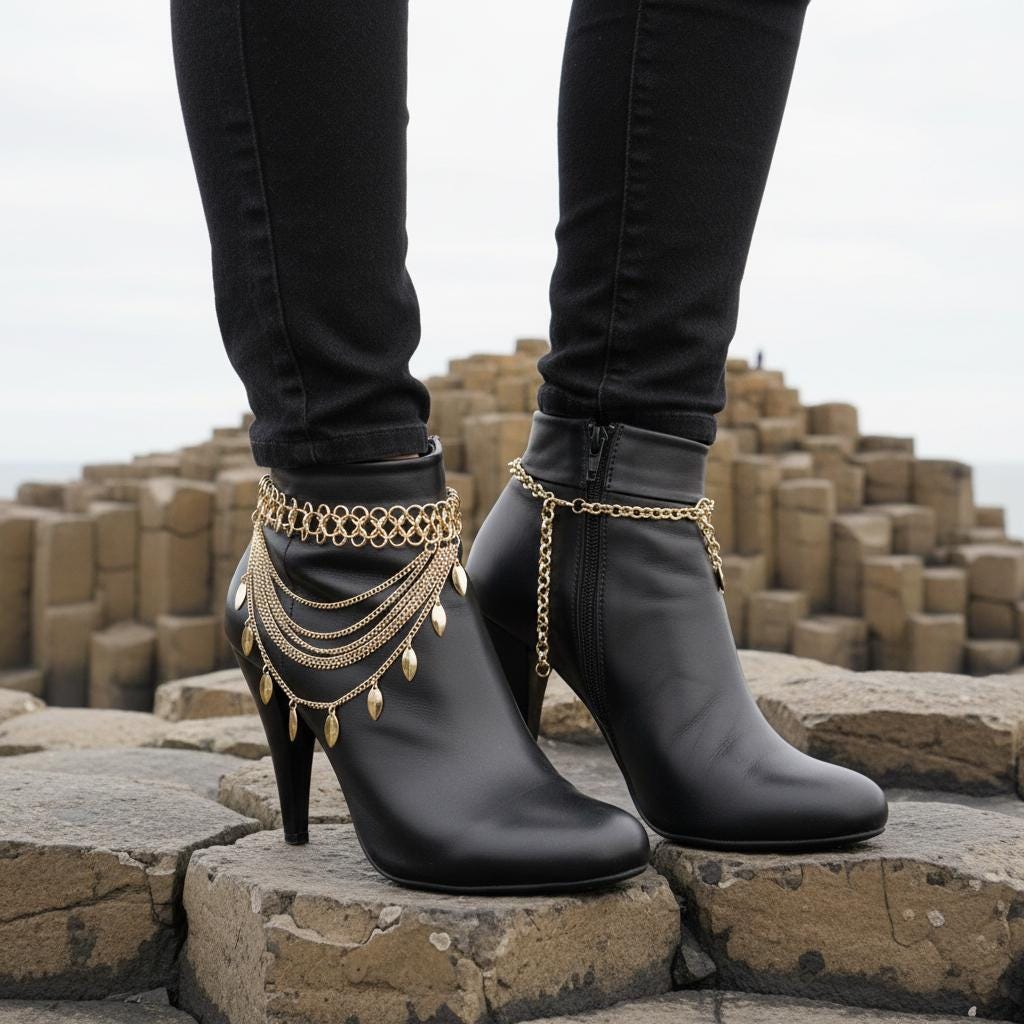 Make your boots the statement. This gold tone boot jewelry set features a layered, multi-wave drape with dangling leaf charms that move with every step. It’s the perfect finishing detail for western outfits, night-out looks, concerts, and styled festival fashion—without feeling bulky.
