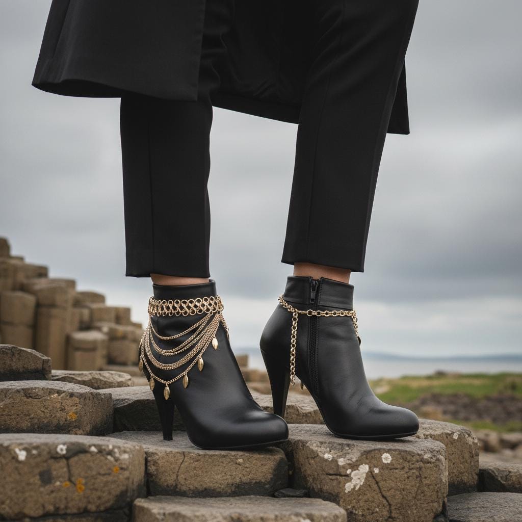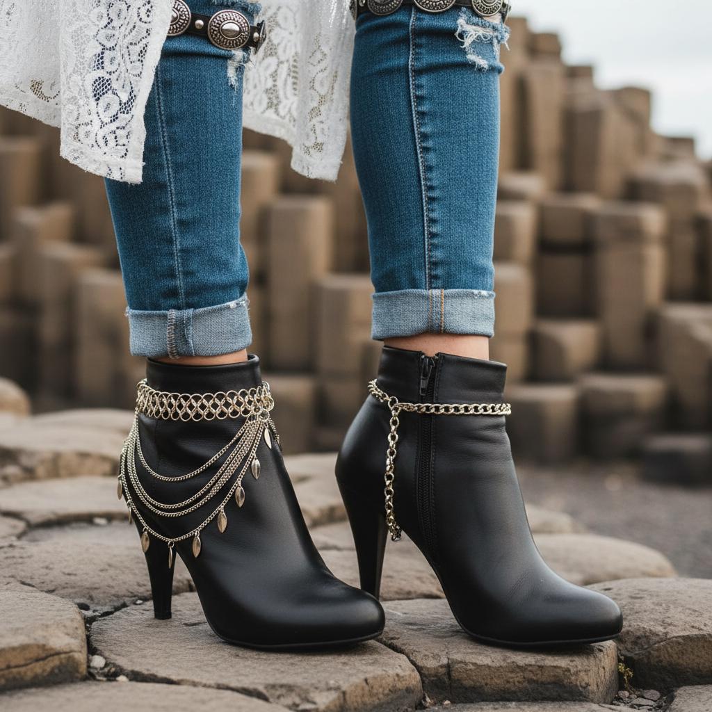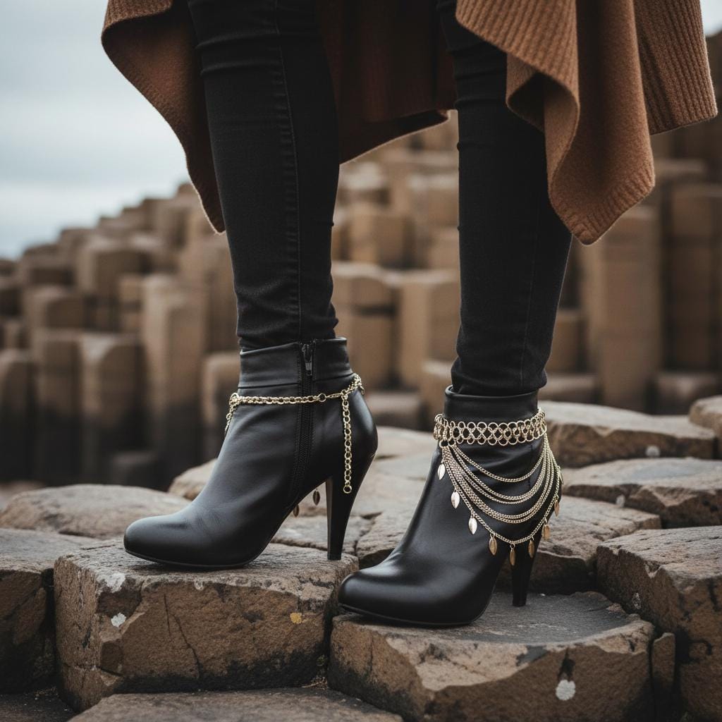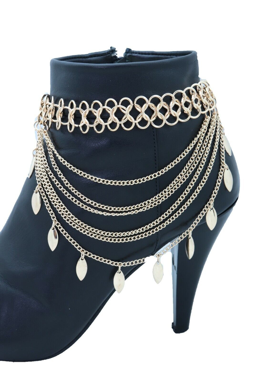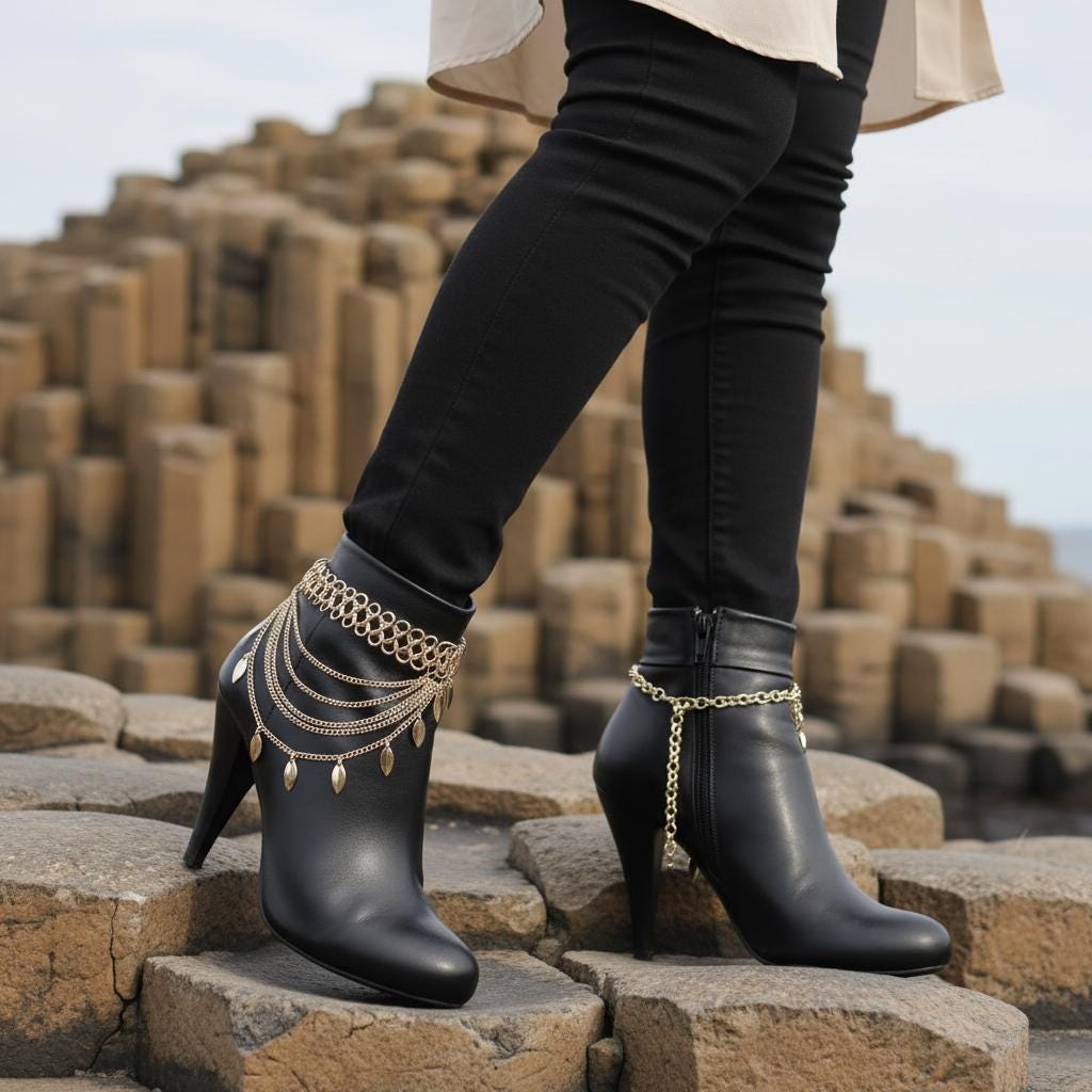 Make your boots the statement. This gold tone boot jewelry set features a layered, multi-wave drape with dangling leaf charms that move with every step. It’s the perfect finishing detail for western outfits, night-out looks, concerts, and styled festival fashion—without feeling bulky.