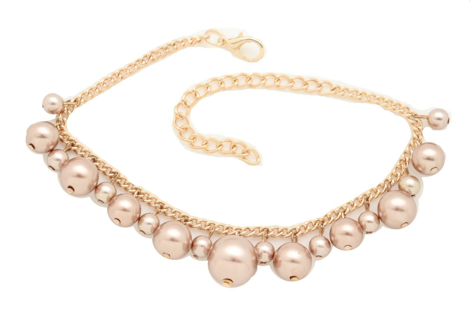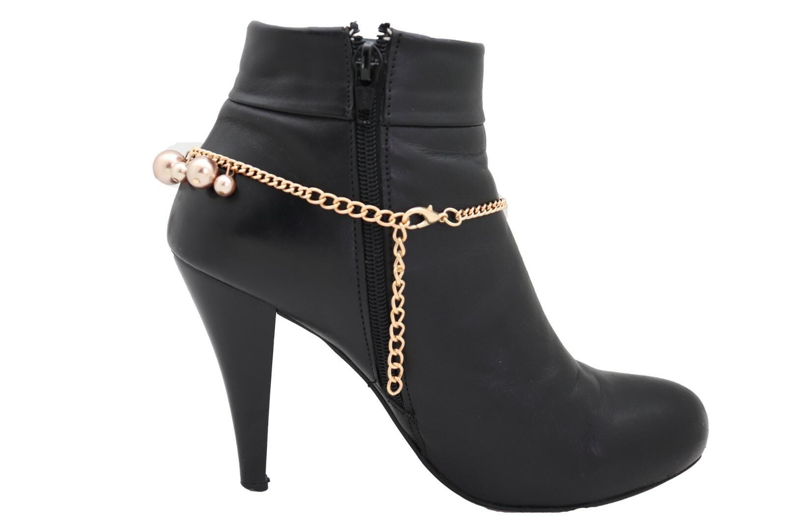 women gold tone faux pearl boot bracelet pair western boot chain shoe anklet bronze bead handmade usa