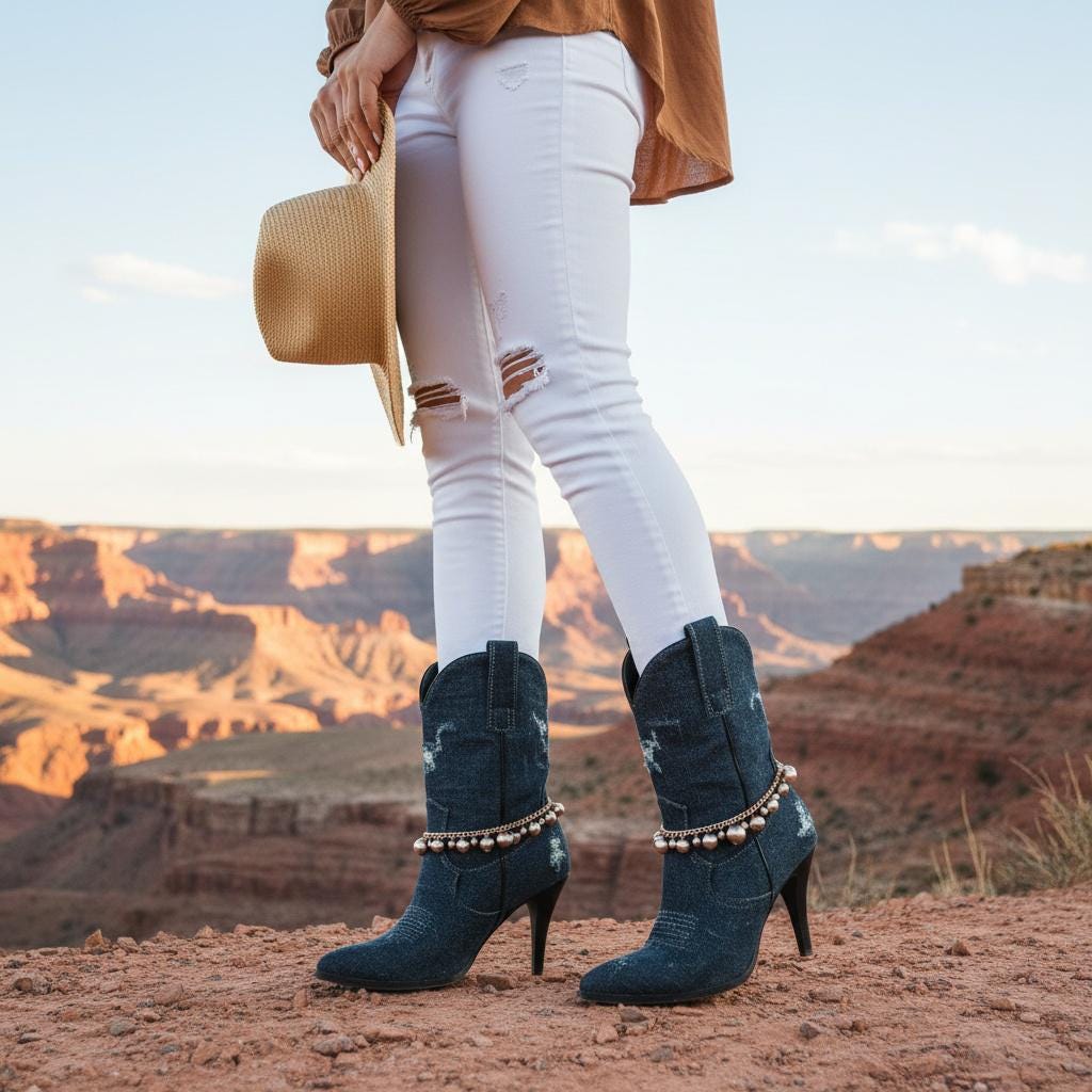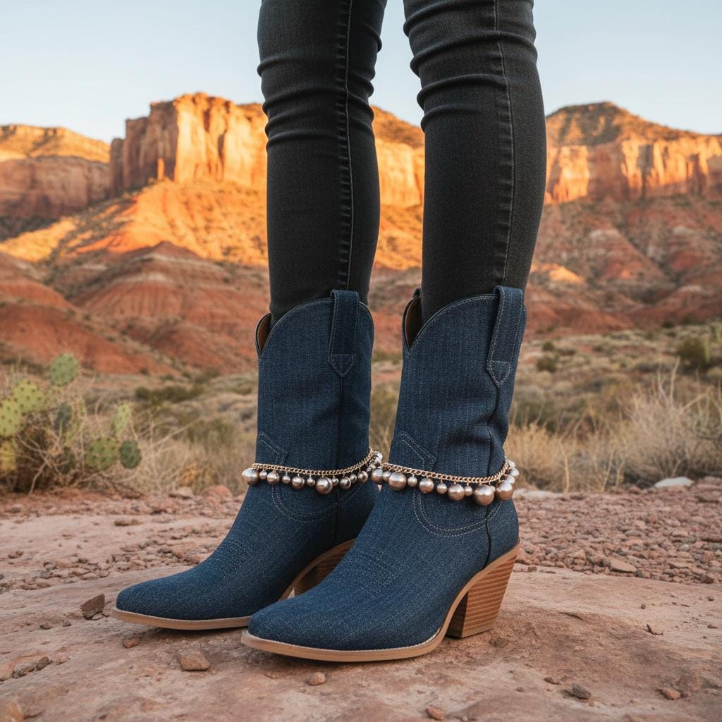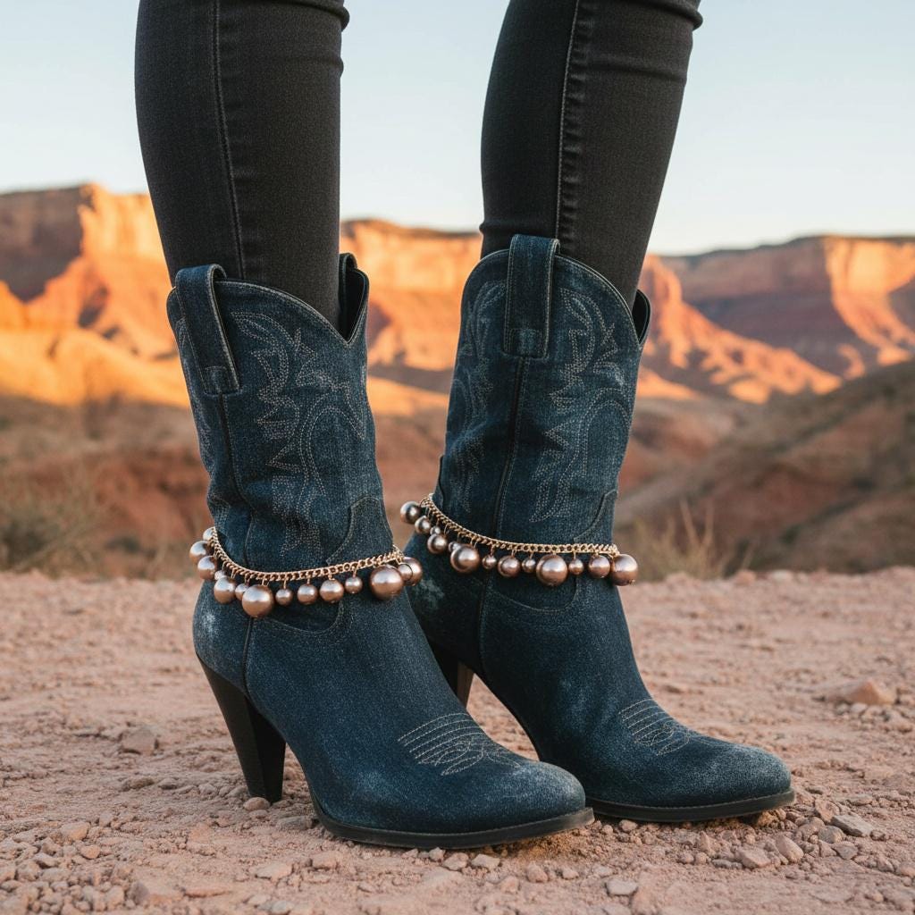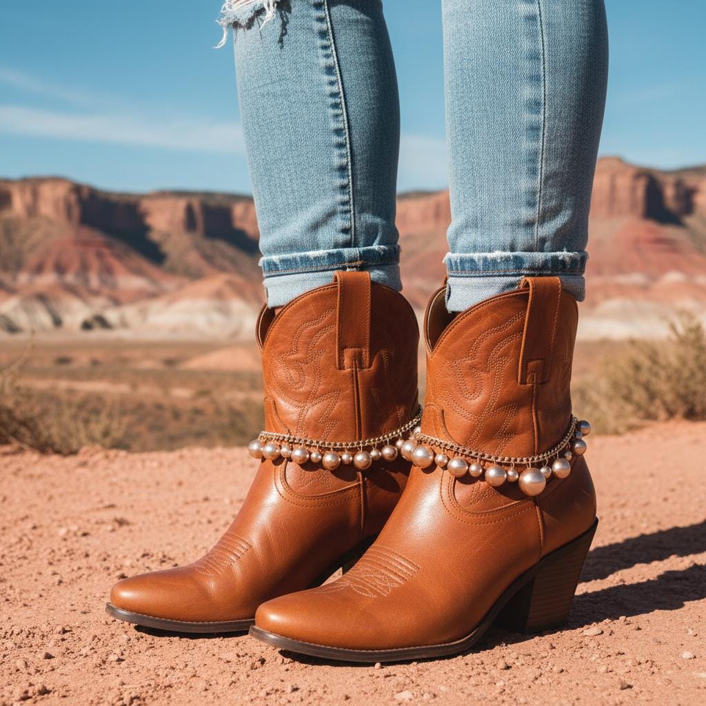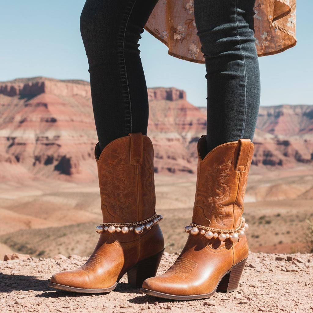 These boot bracelets are handmade by us in the USA and designed to be worn with a slight drape around the boot rather than pulled tight. That more relaxed fit helps protect the chain and gives the accessory its intended look. The adjustable extension chain allows flexible styling on different boot shapes and heights.