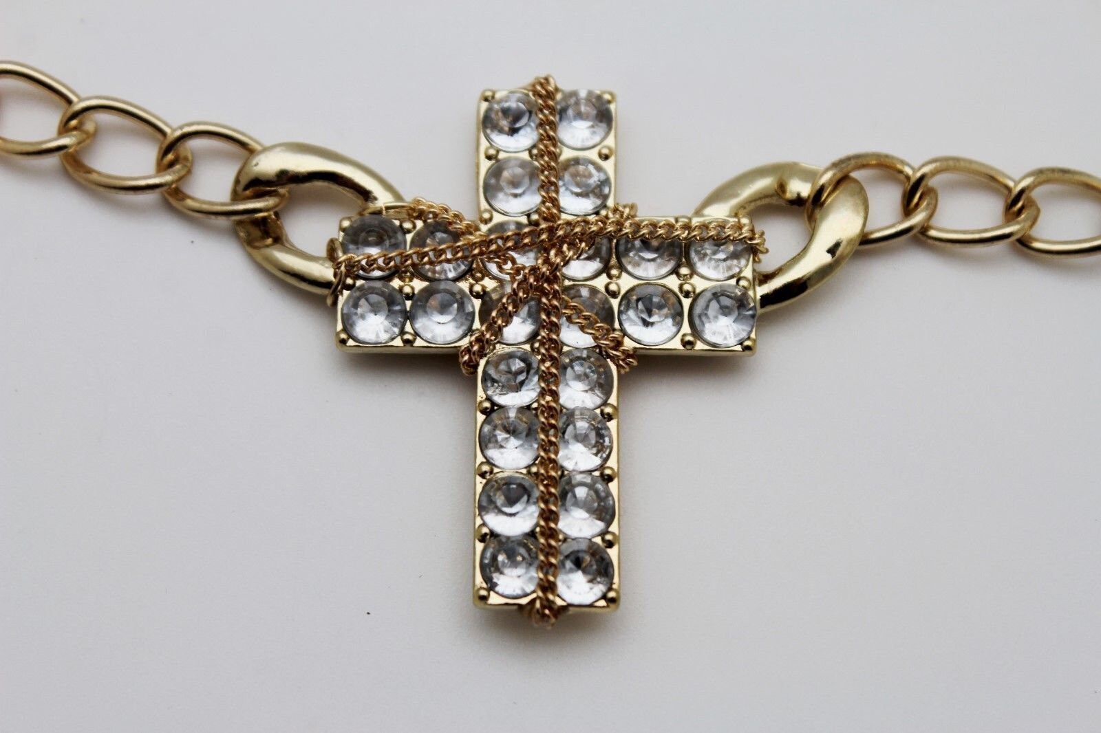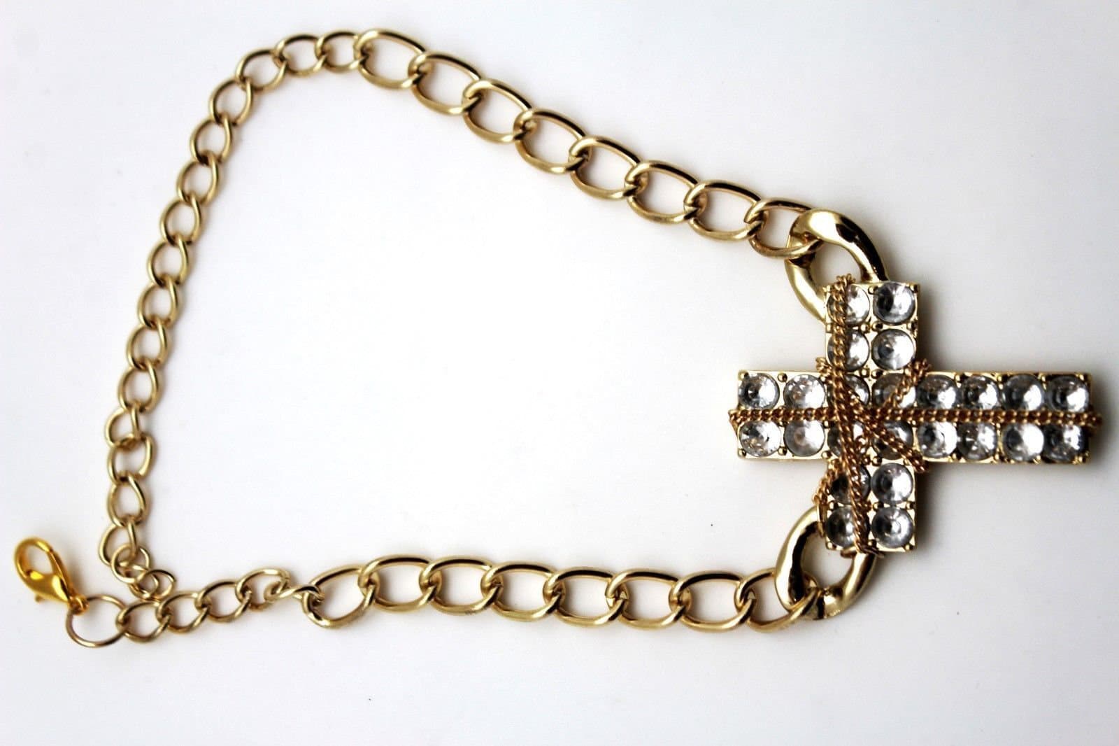 Women Metal Boot Chain Bracelet Western Shoe Cross Charm Silver Rhinestones Bling Weekend Jewelry