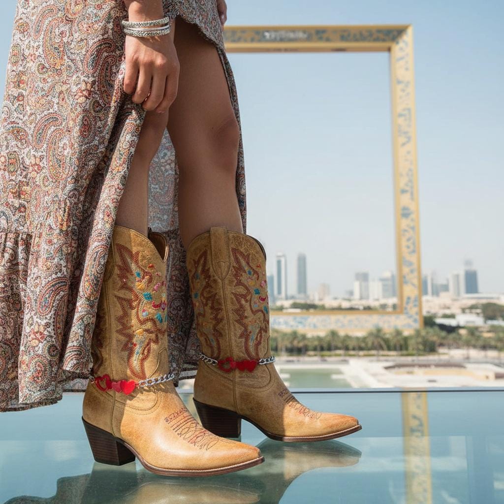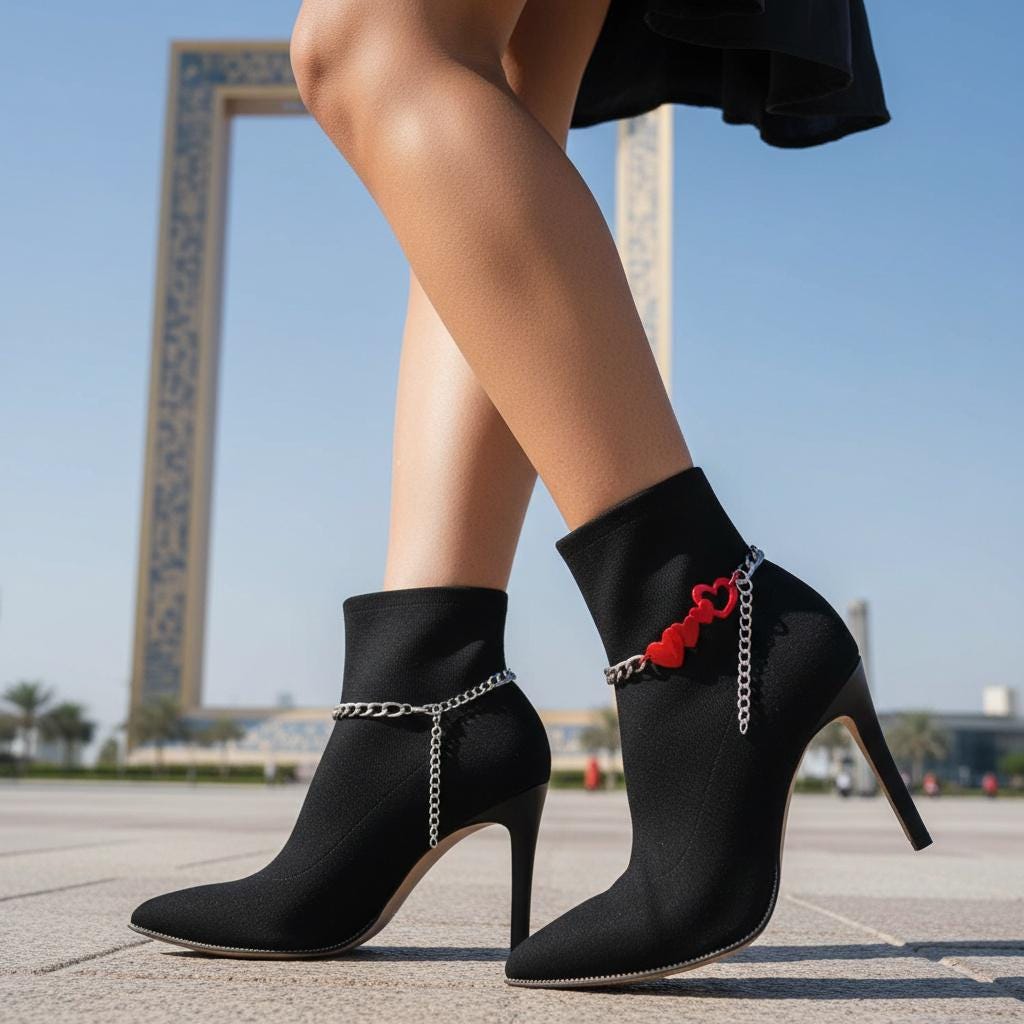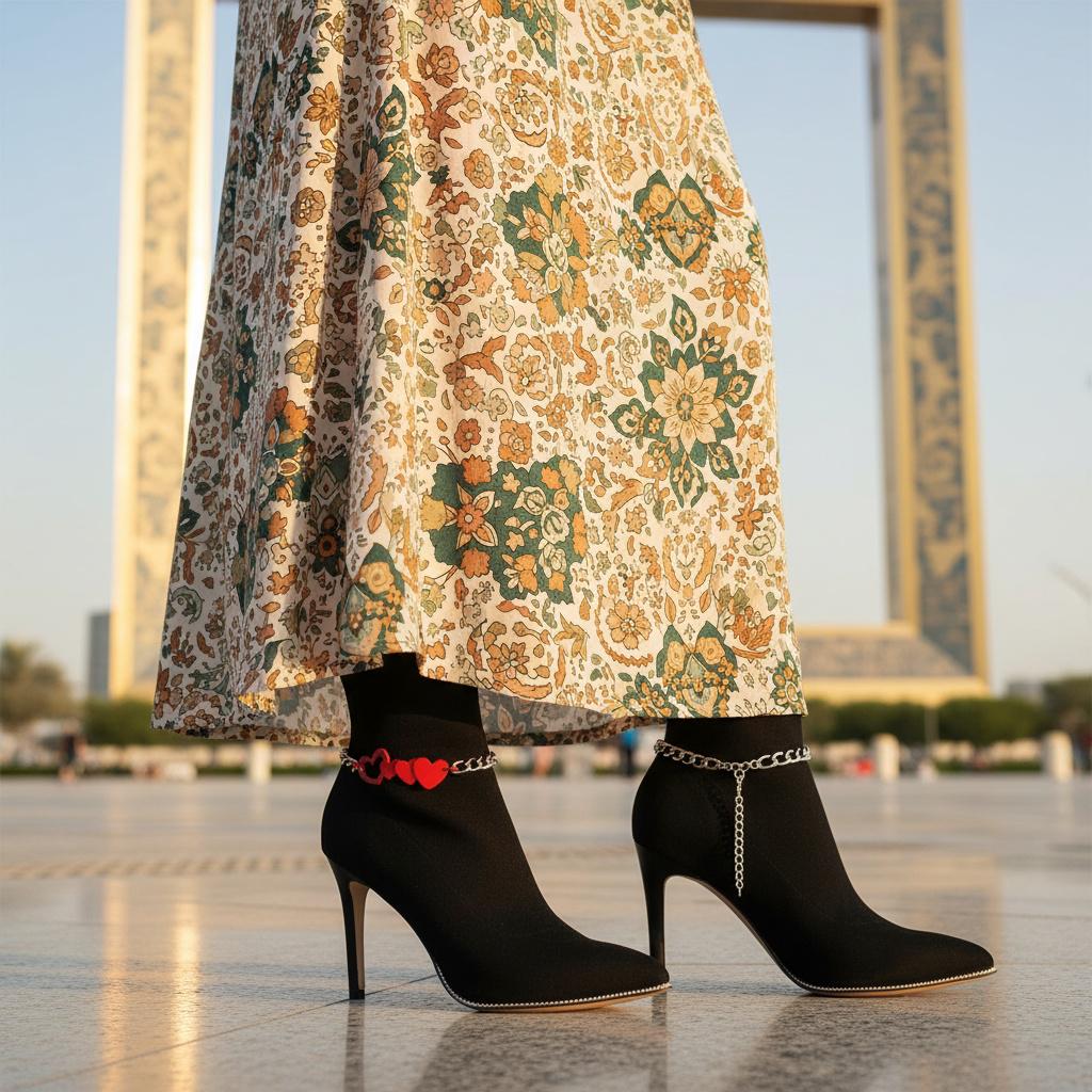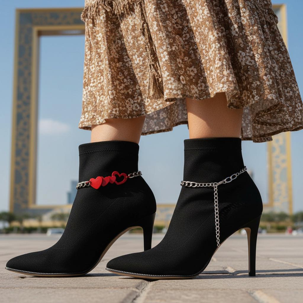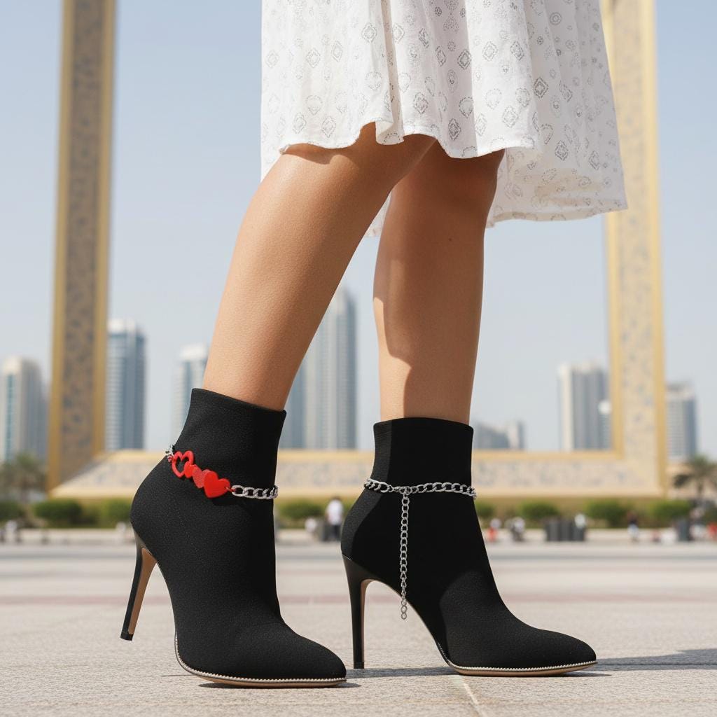 For the best fit and wear, style the chain with a slight drape around the boot instead of wearing it tight. This helps movement feel more natural and reduces tension on the links.