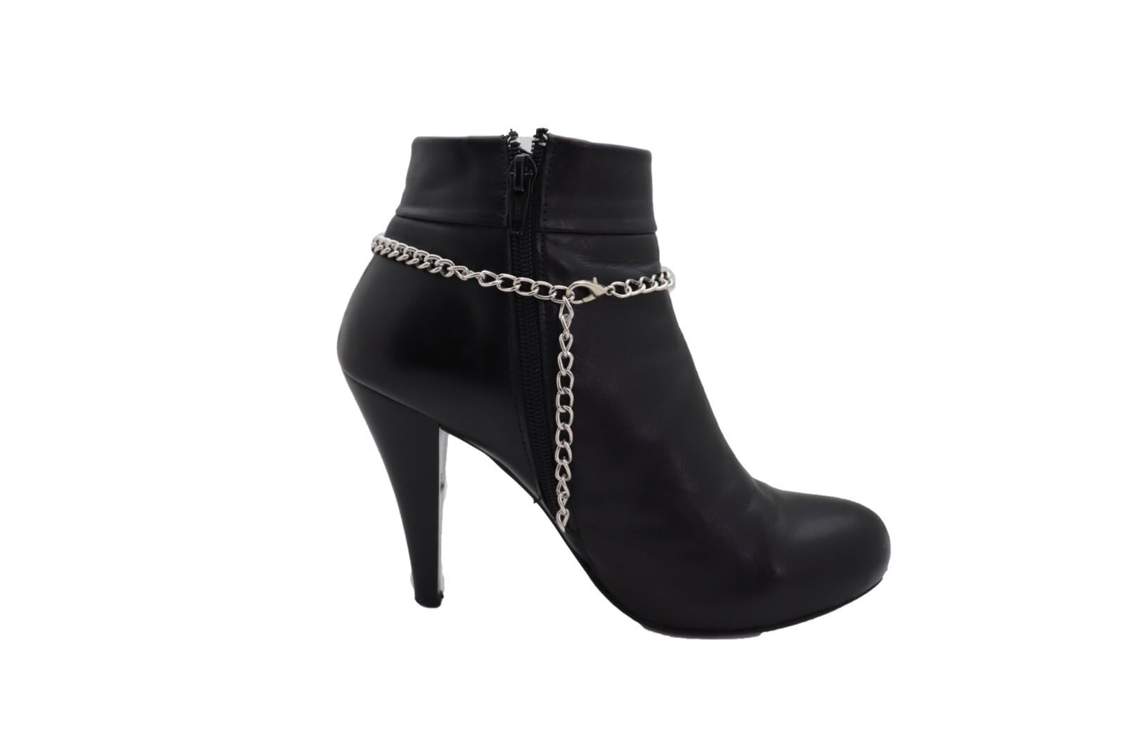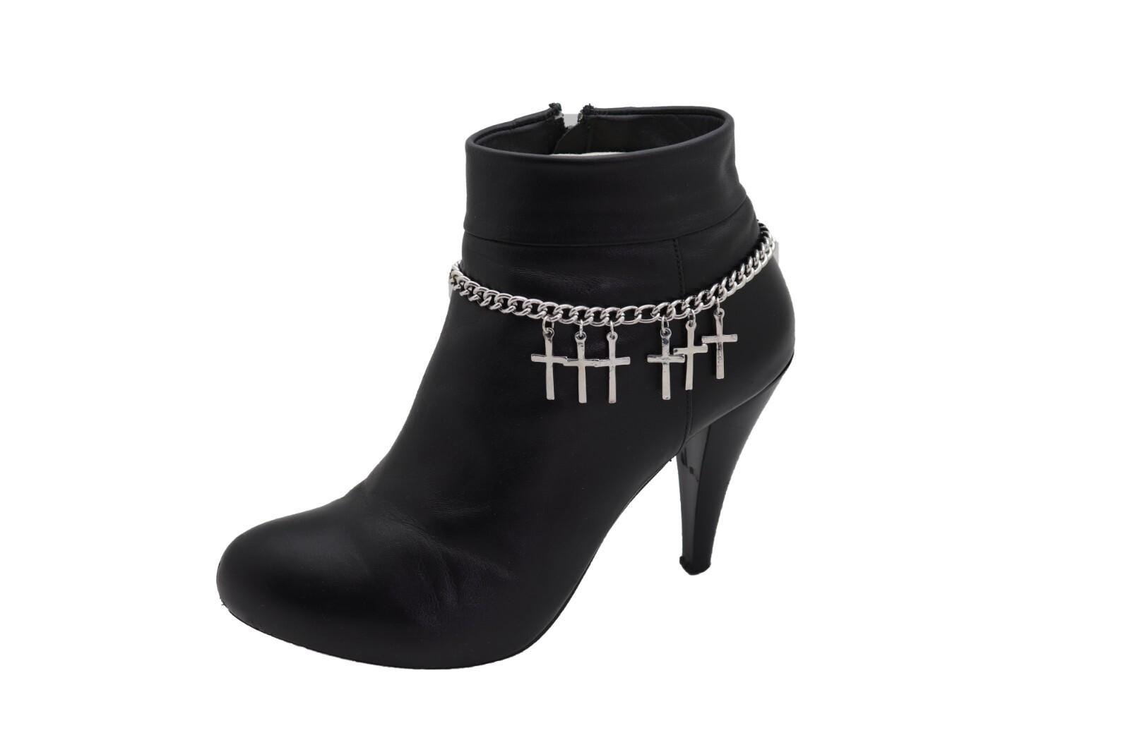 Silver Boot Chain Bracelets Pair, Multi Cross Charm Boot Anklets, Women’s Boot Jewelry BC128