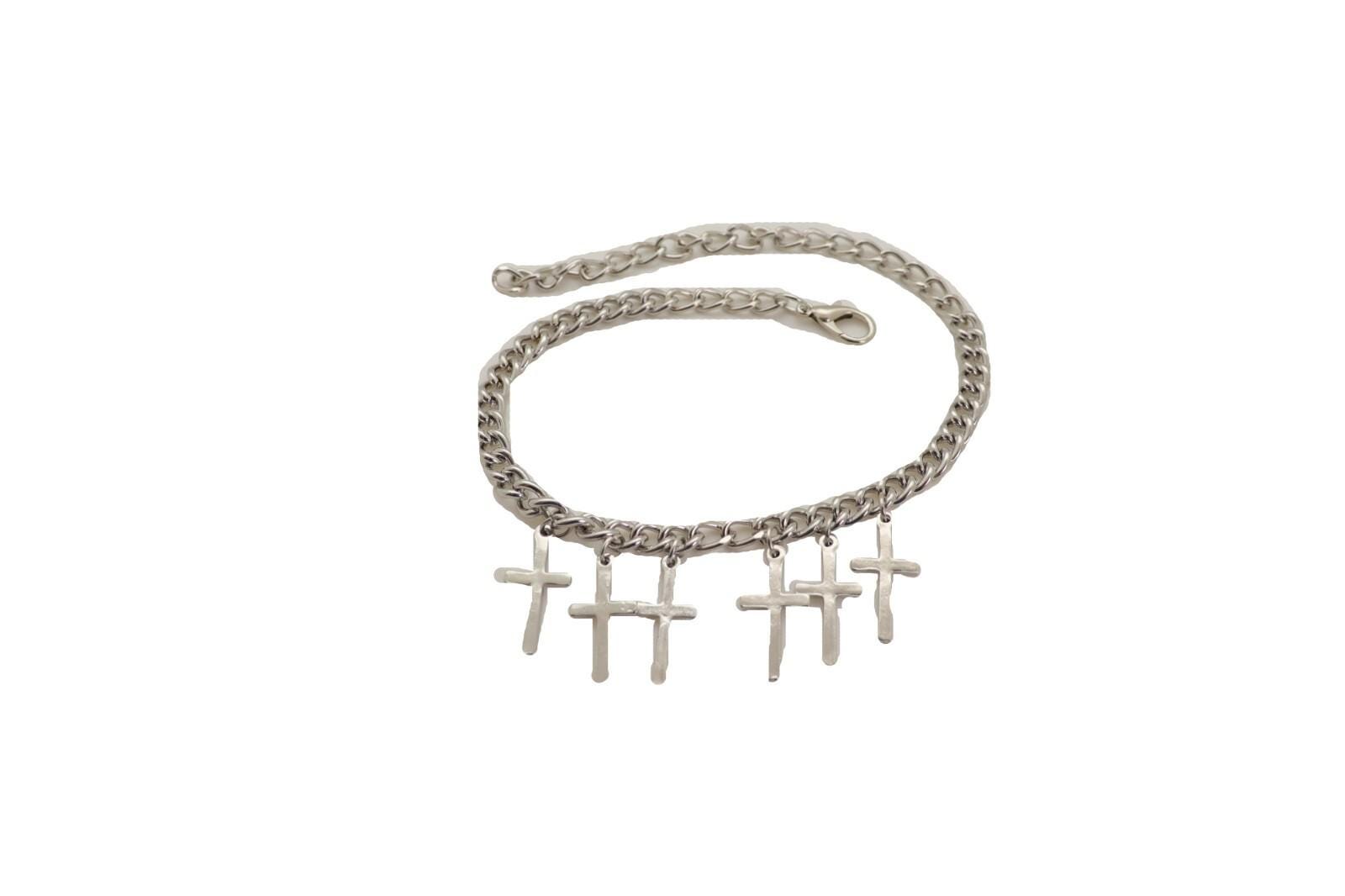 1 pair (2PCS) silver boot chain bracelets with multi cross charm dangles.