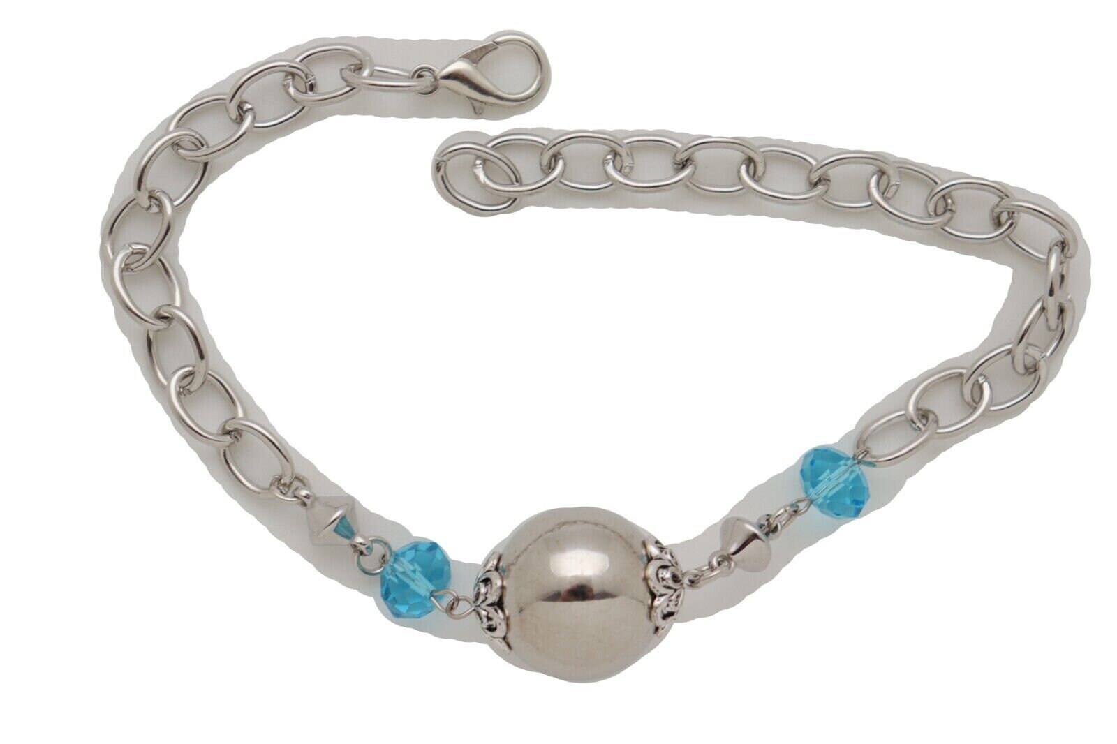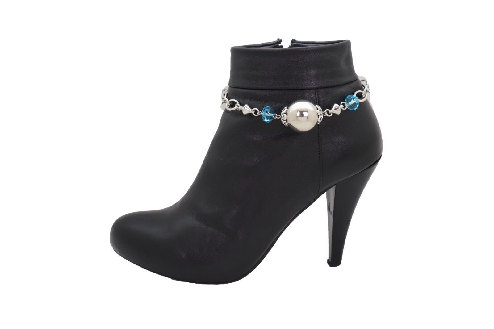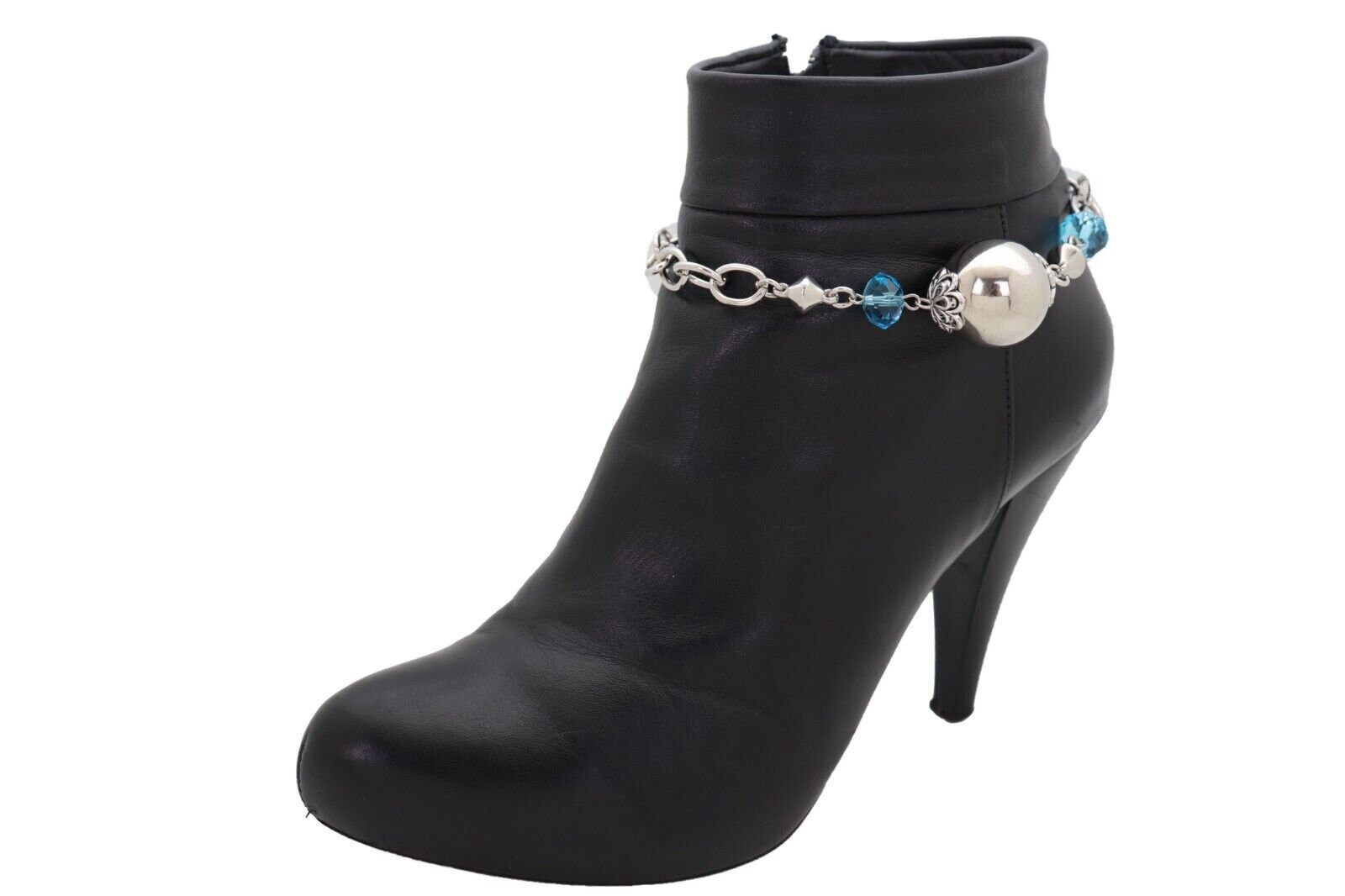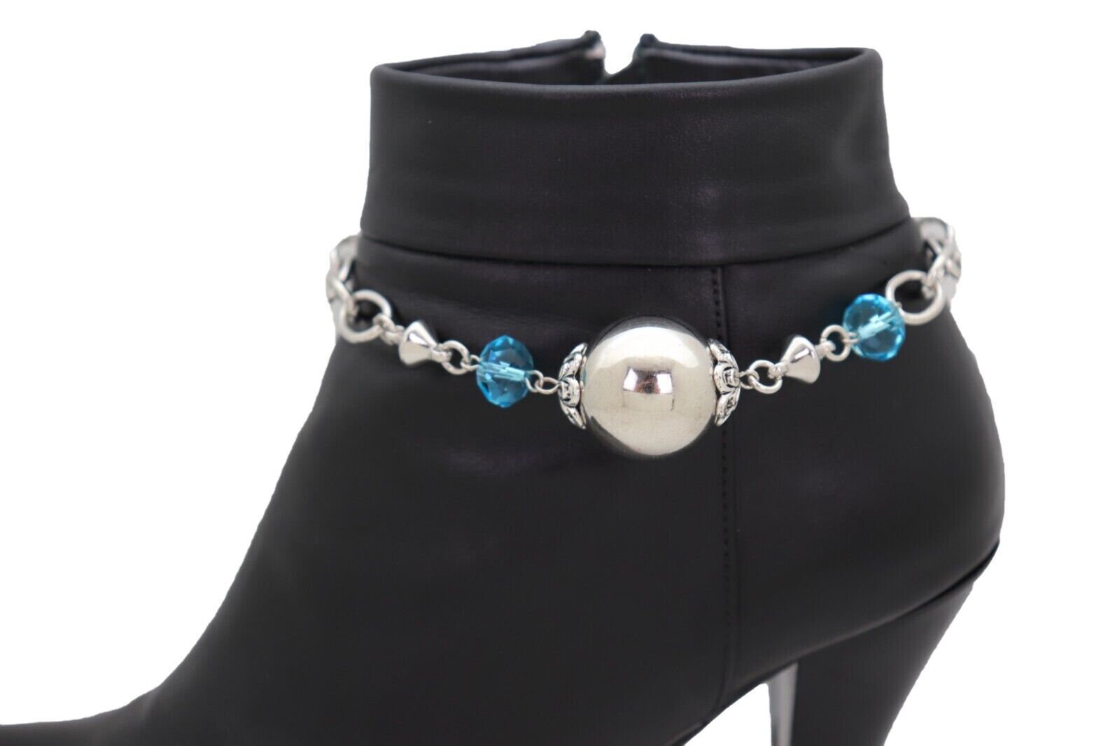 Women Metal Silver Boot Chain Bracelet Anklet Shoe Ball Charm Blue Beads Fashion Jewelry