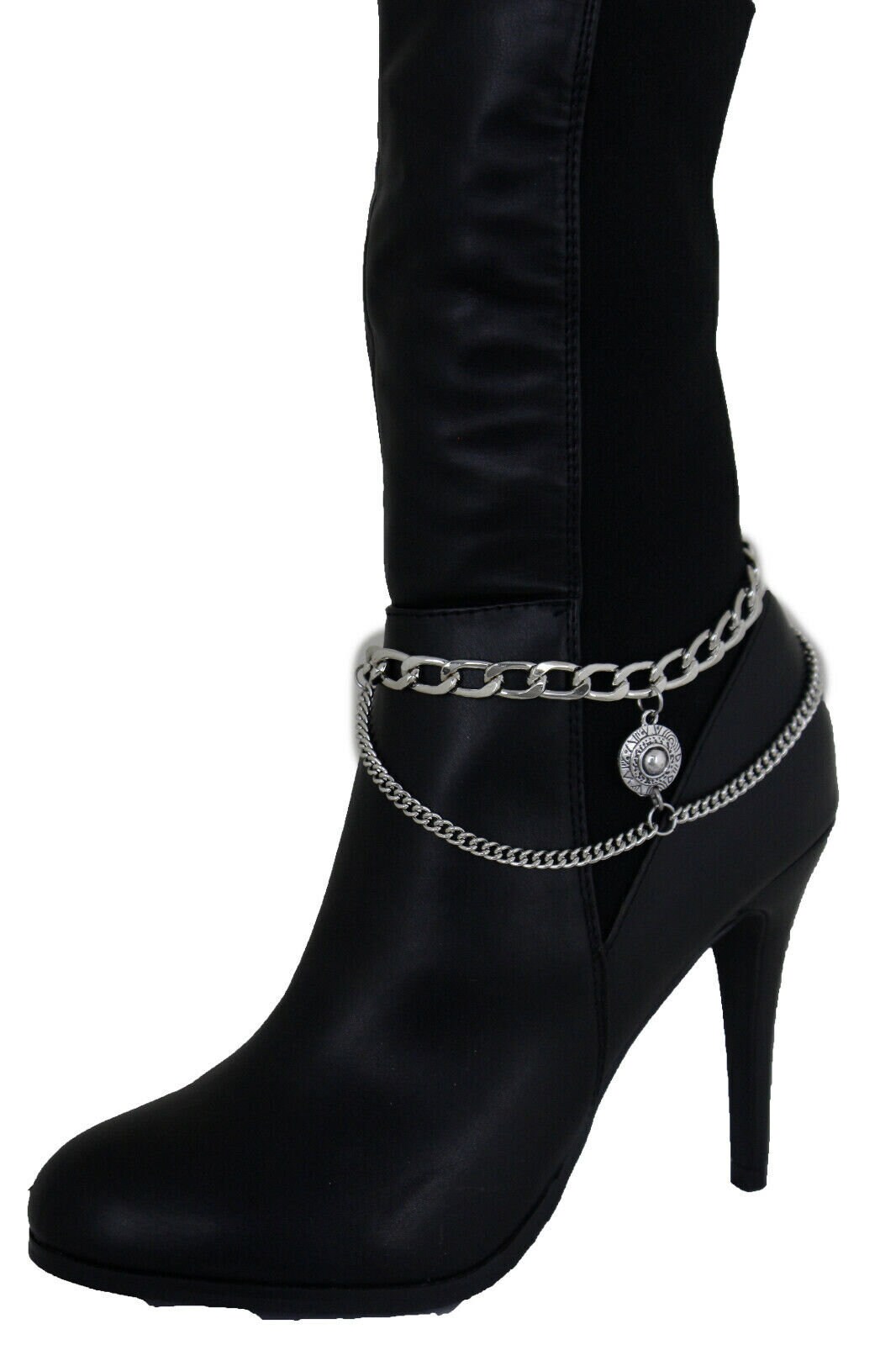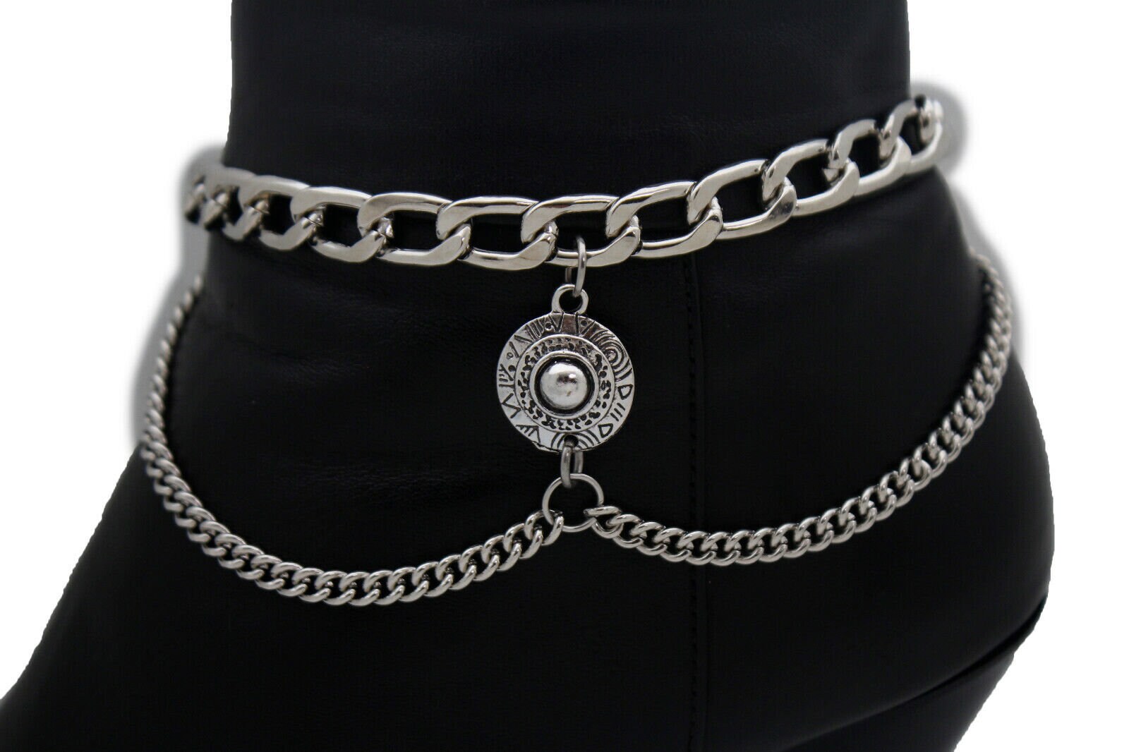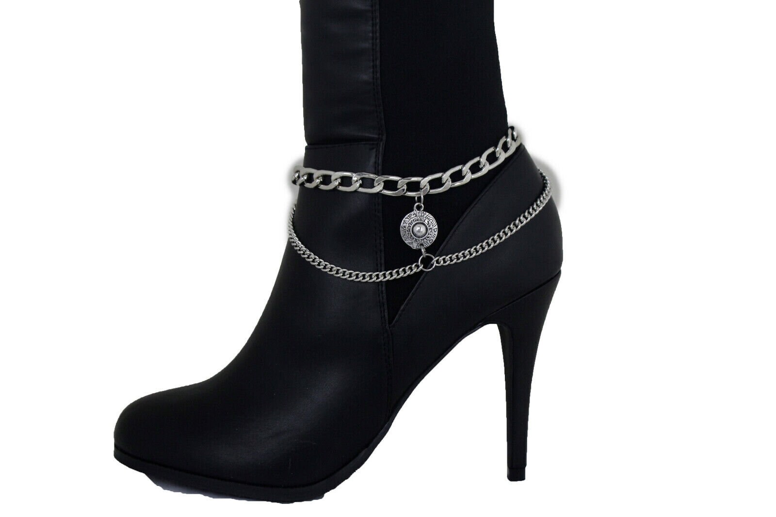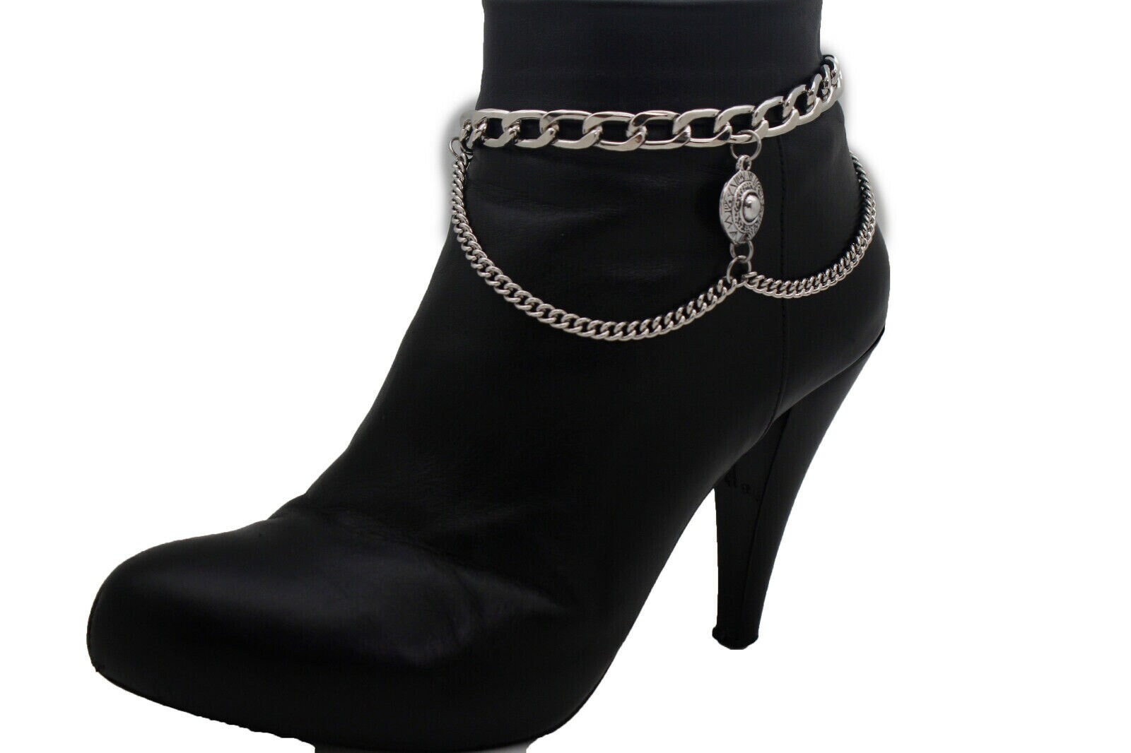 Chic Western Style: Enhance your boots with this single strap bracelet featuring silver metal chains and a stylish charm pendant.