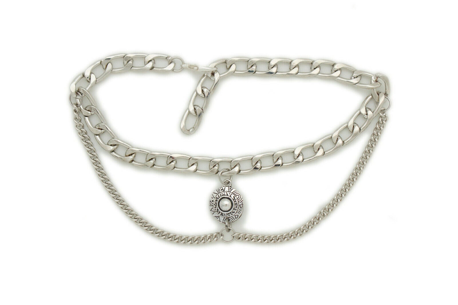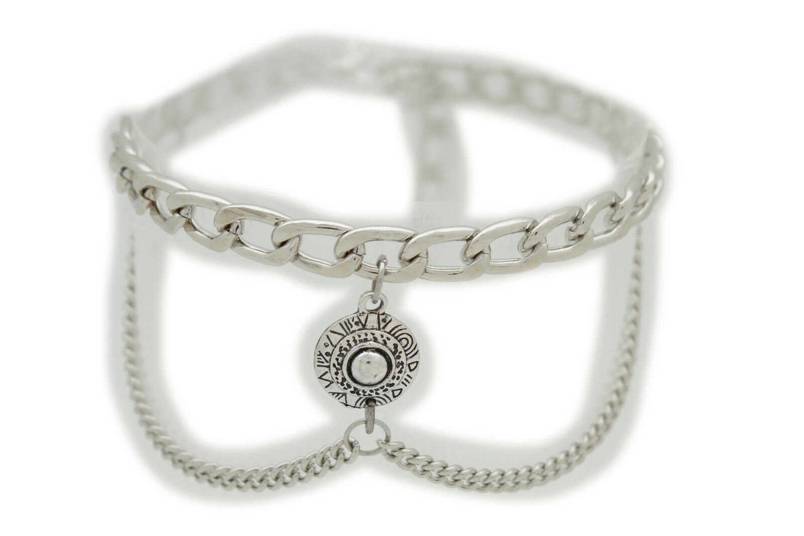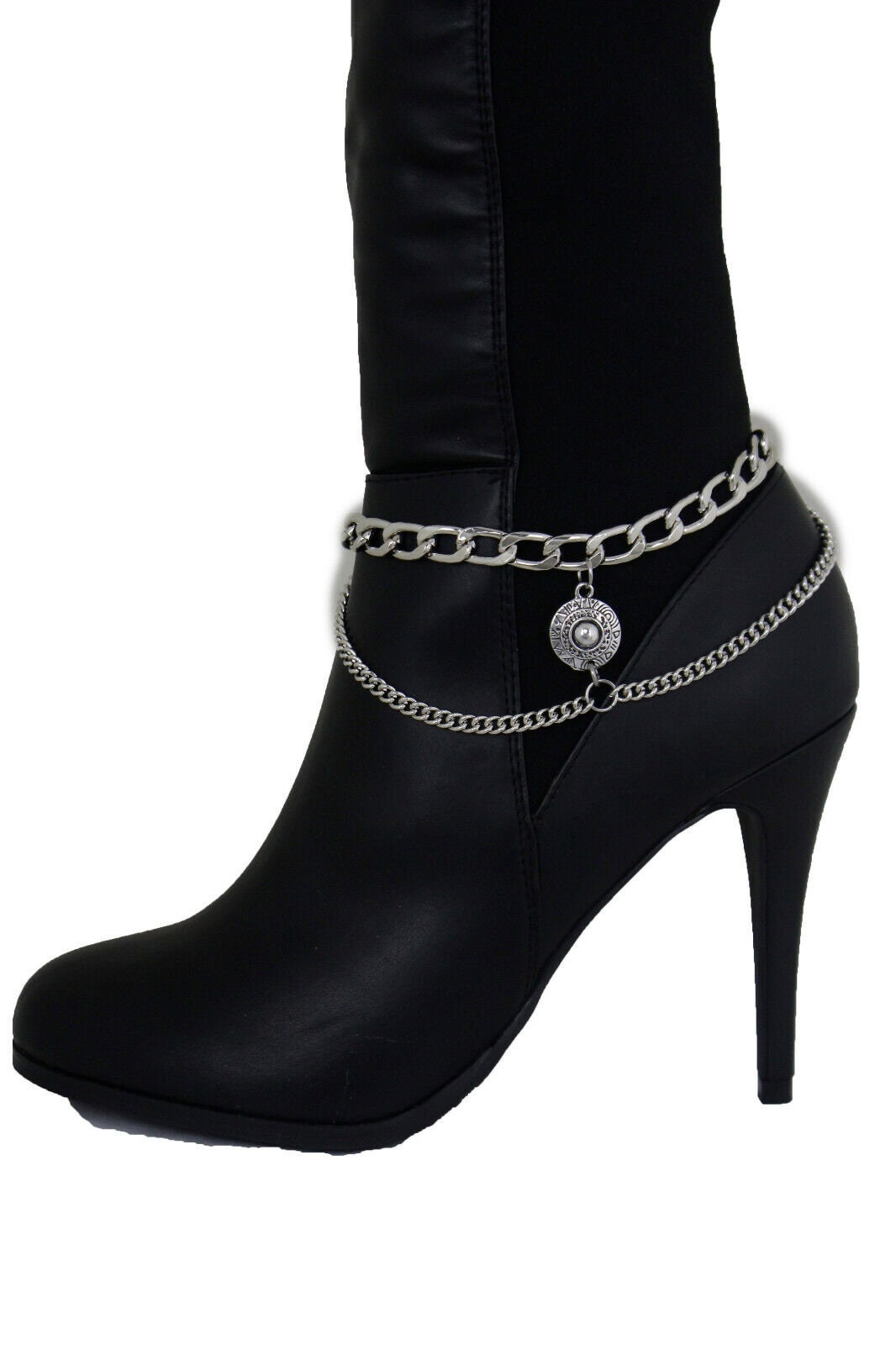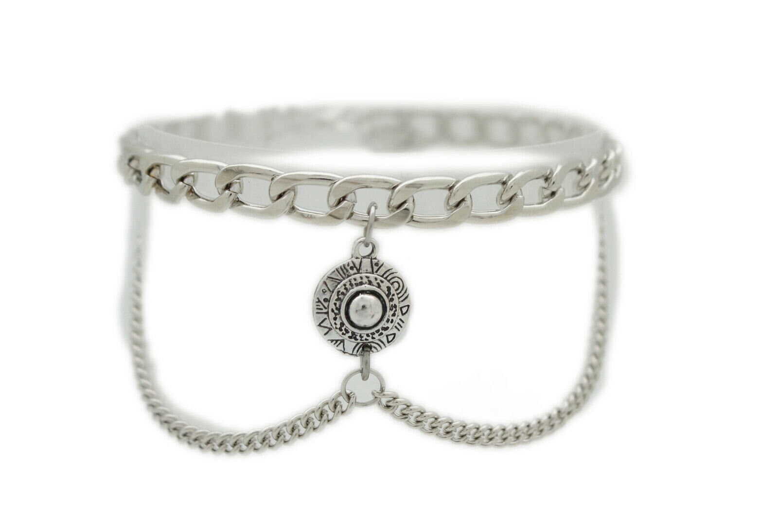 Chic Western Style: Enhance your boots with this single strap bracelet featuring silver metal chains and a stylish charm pendant.