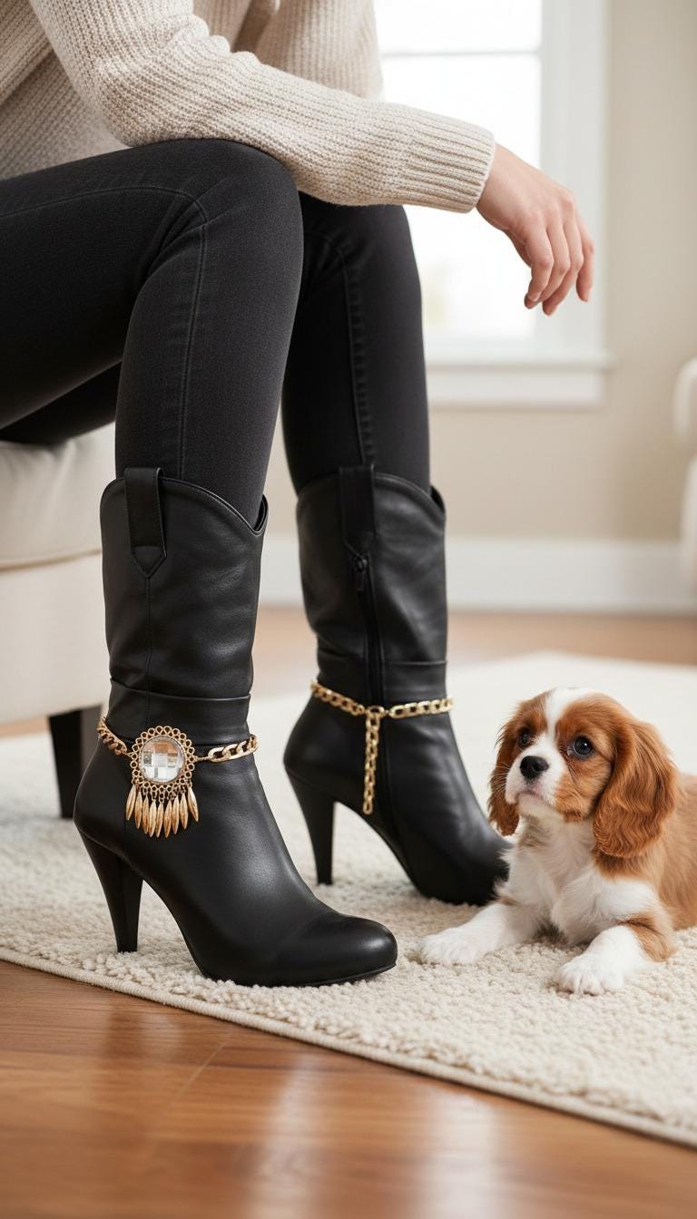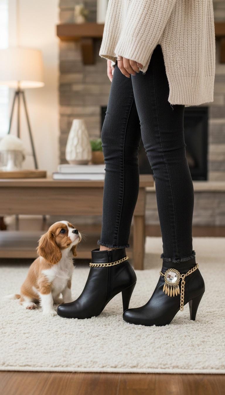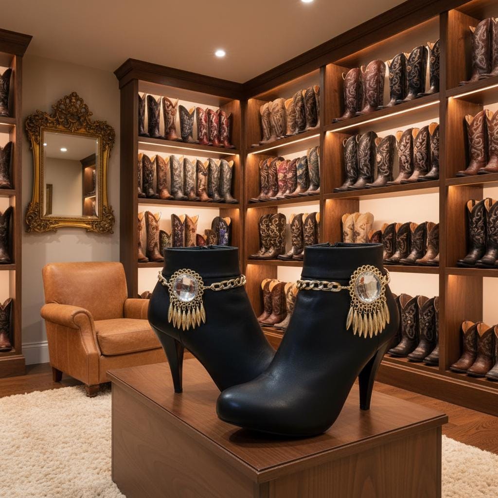 Each set includes two boot chains (one for each boot). Adjustable sizing makes it easy to wear with different boot styles—ankle boots, heeled boots, and many mid-calf/tall boots depending on how you style the wrap.