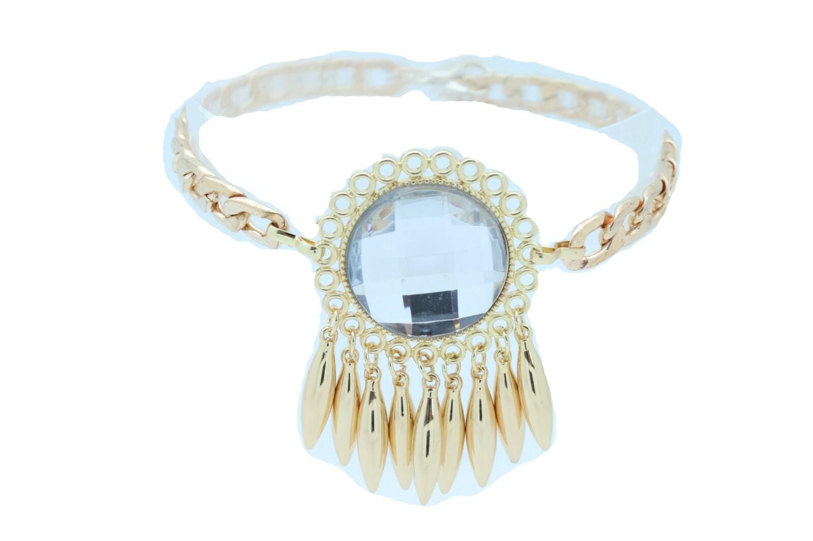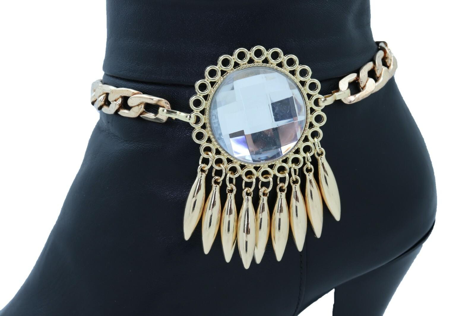 This gold tone boot chain bracelet pair is the easiest way to make boots look styled, finished, and photo-ready without changing your whole outfit. Each piece wraps around the ankle/boot area and features a sunflower-inspired statement charm with a clear faceted stone that reflects light, plus dangling petal-style charms for movement. The result is a bold-but-wearable look that works with western outfits, boho styling, festival looks, concerts, and everyday “I want my boots to look cooler” moments.