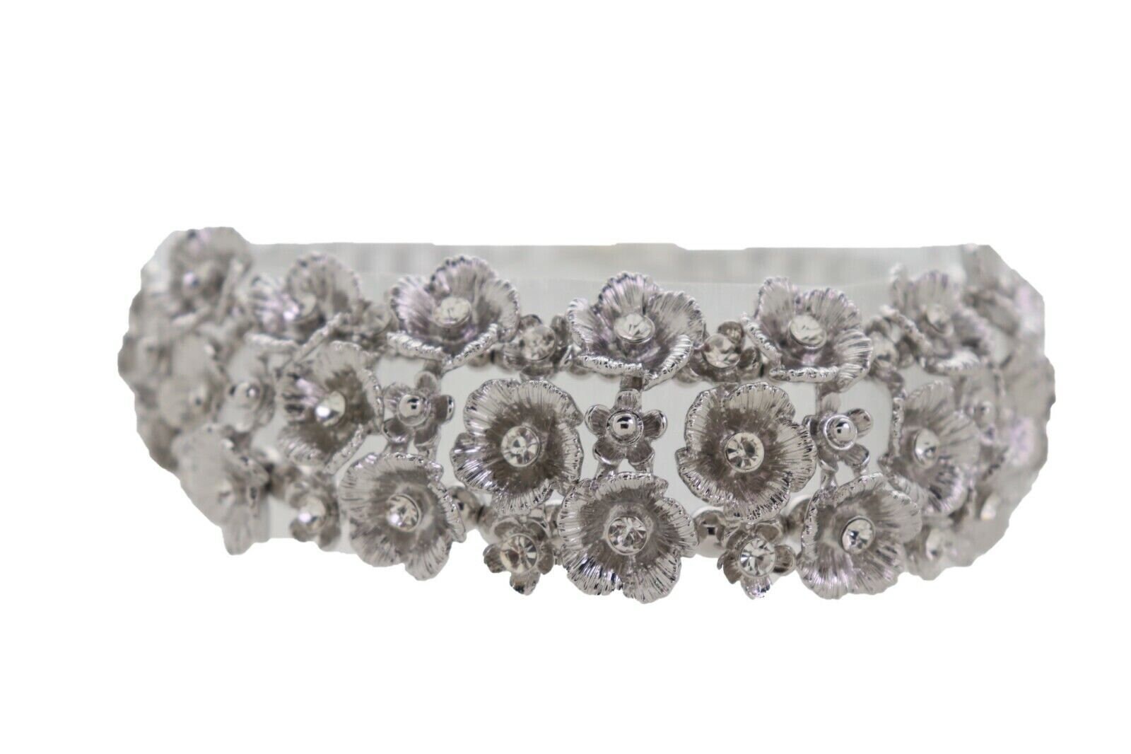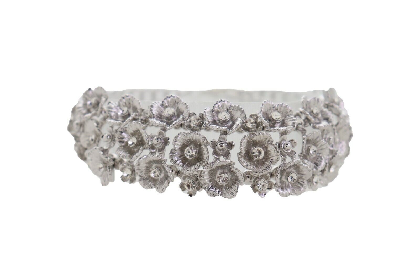 Silver-tone metal, rhinestone accents