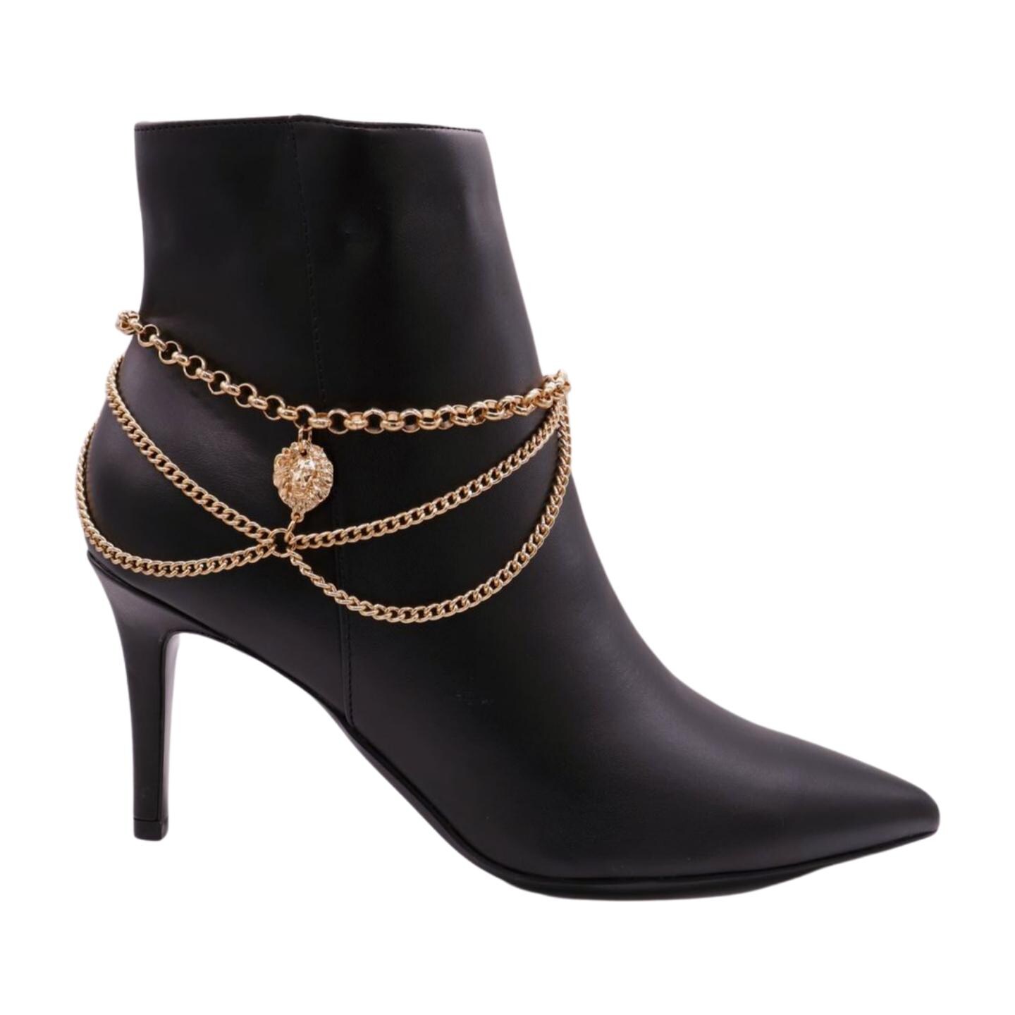 Meet the boot accessory that turns “cute boots” into “who is she?” boots. This listing is for a handmade pair (2PCS) of gold-tone boot chain bracelets featuring a bold lion head charm and layered wave-style drape strands. Designed to wrap around the ankle area or lower boot shaft, these chains add movement and shine with every step—perfect for western outfits, concerts, line dancing, rodeo nights, festivals, and styled everyday looks.