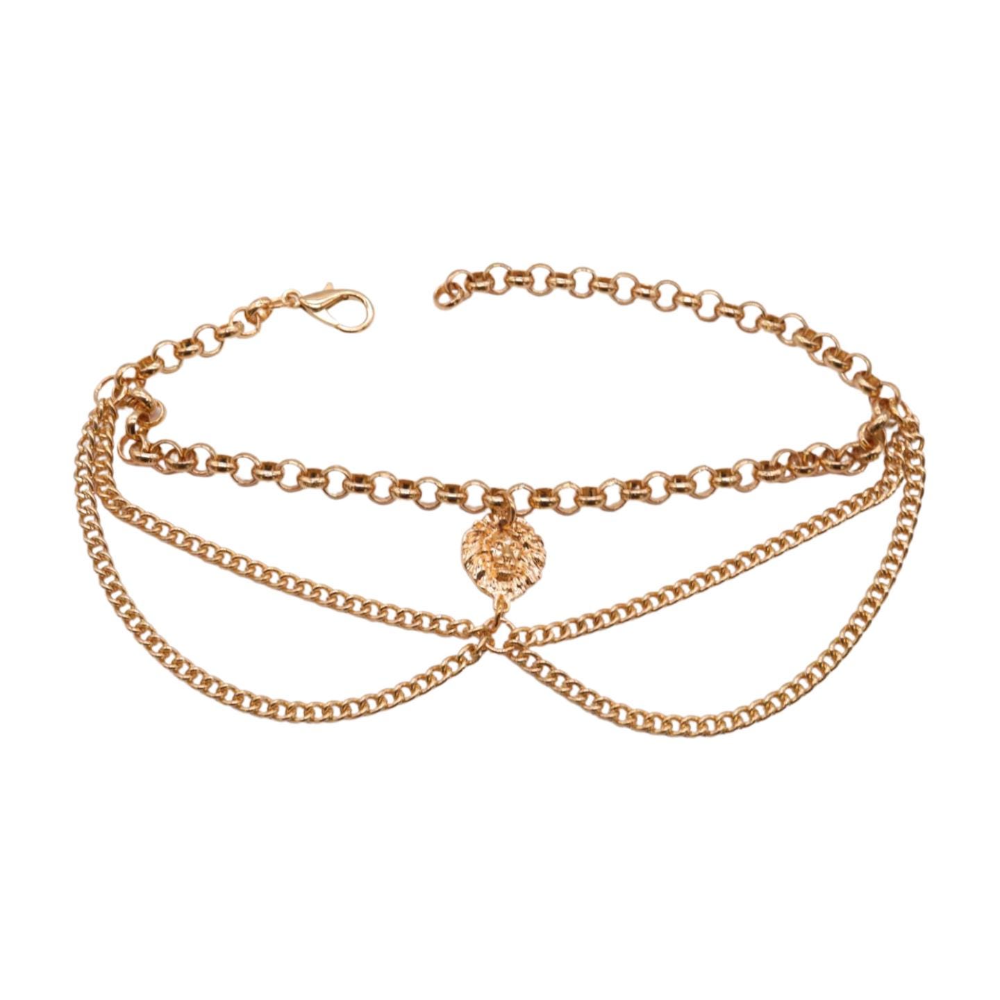 2PCS Gold Boot Chain Bracelet: Western Lion Head + Waves Charm Anklet SET BC123