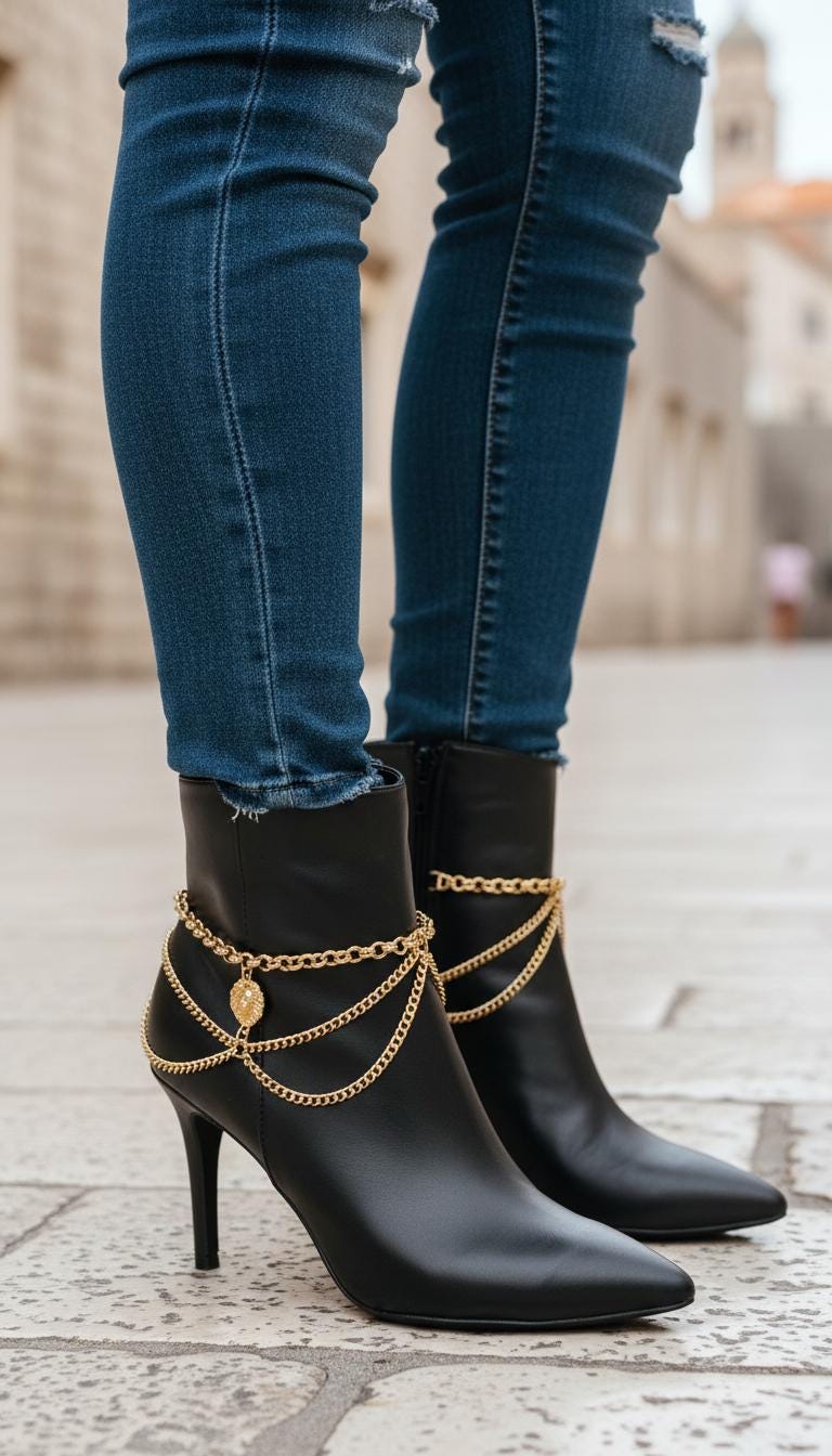 These are boot accessories only (boots are not included). You will receive two matching bracelets—one for each boot—so your look stays balanced and intentional from every angle.