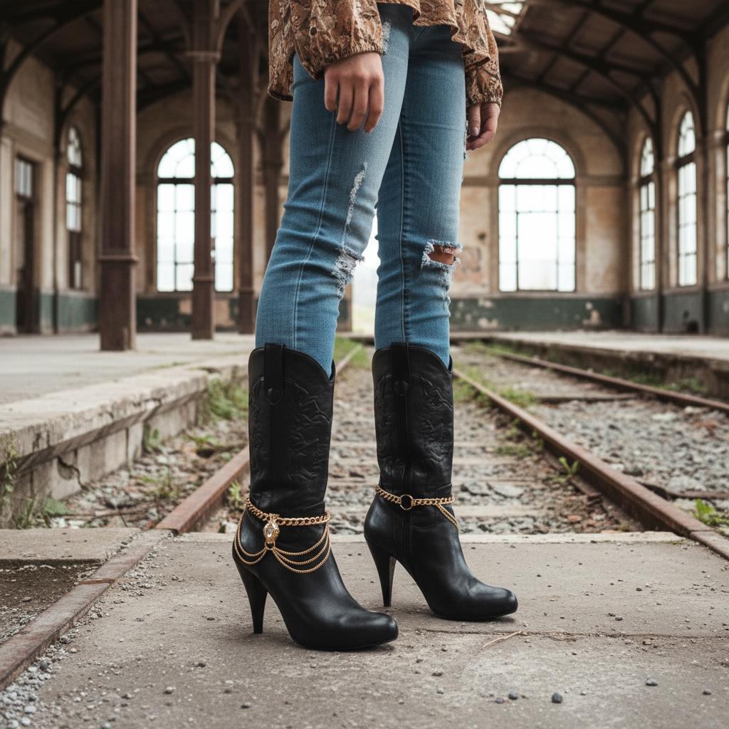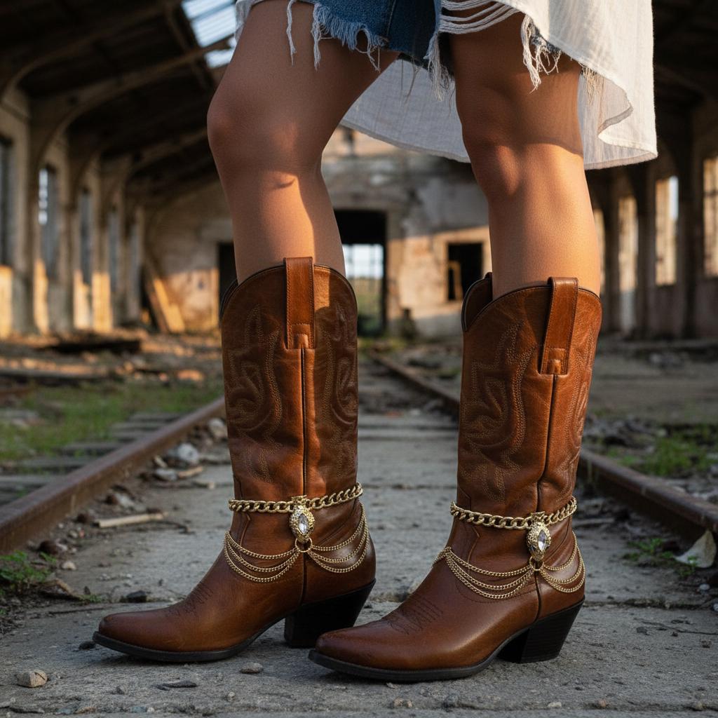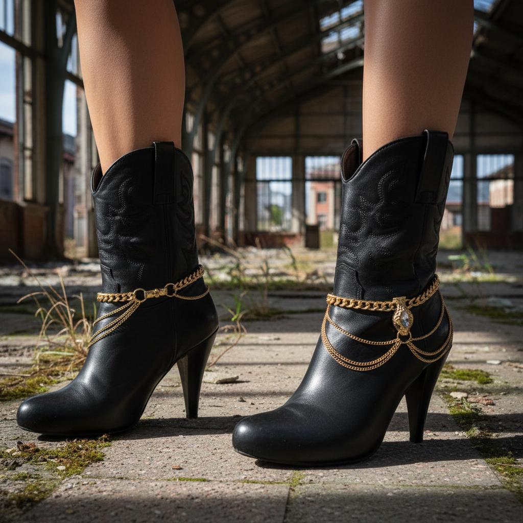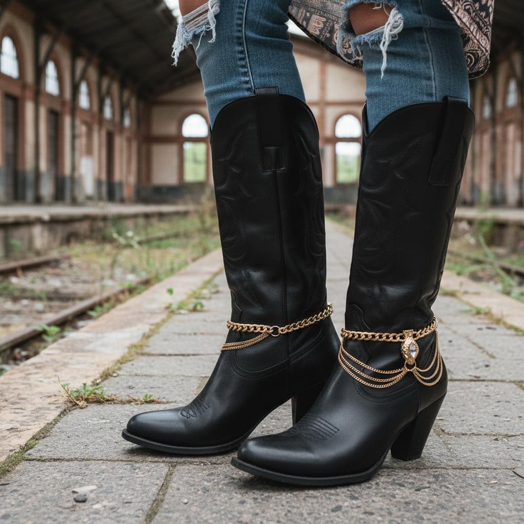The design is built with a structured curb chain along the top and multiple drape strands below, creating that “styled, layered, boutique” look without needing extra accessories. Wear them on ankle boots, cowgirl boots, or tall boots. Adjust the length from 11–15 inches using the lobster clasp and extension chain so you can choose your preferred drape.