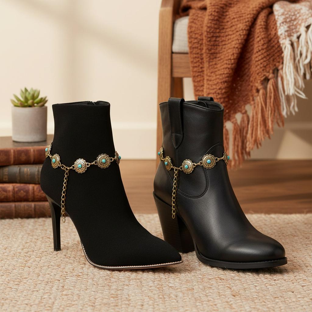This listing is for a matching pair (2 pieces total): one boot chain strap for each boot/side. They are adjustable from 11 to 15 inches using a lobster clasp and extension chain, so you can style them at the ankle or around the lower boot shaft depending on your boot shape and outfit.