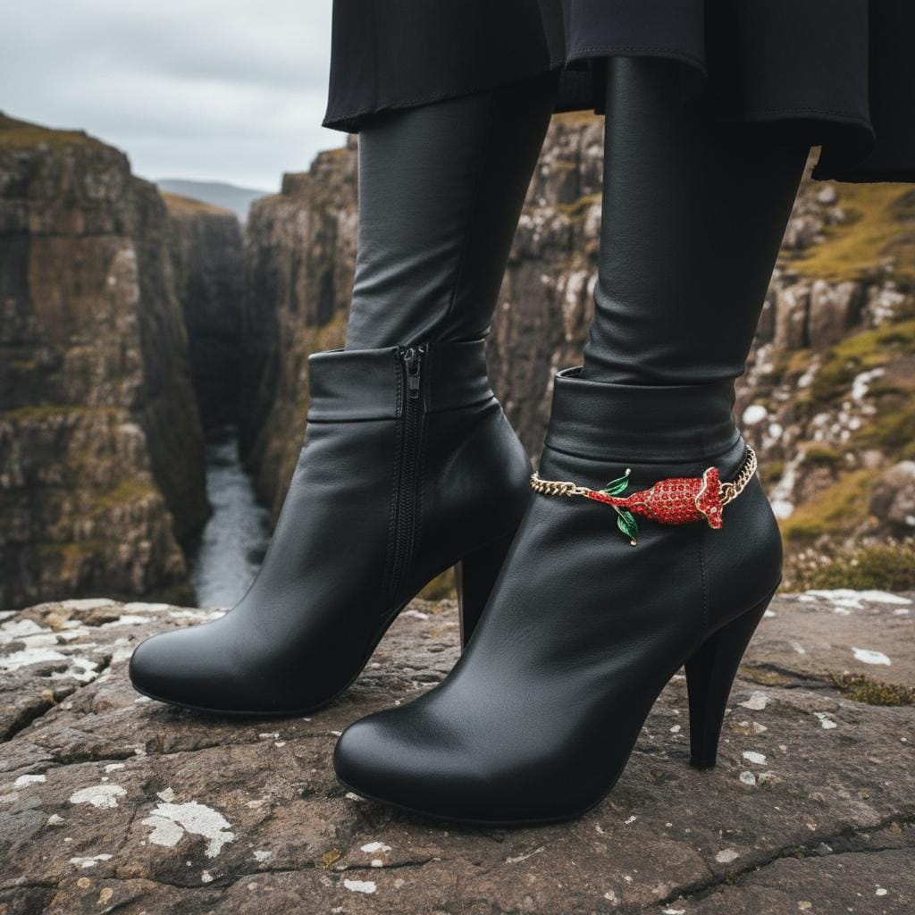 Comfort fit tip: for the best wear and to help protect the chain, style the boot jewelry with a slight drape rather than a tight fit. That little bit of looseness helps reduce tension when you walk or dance.