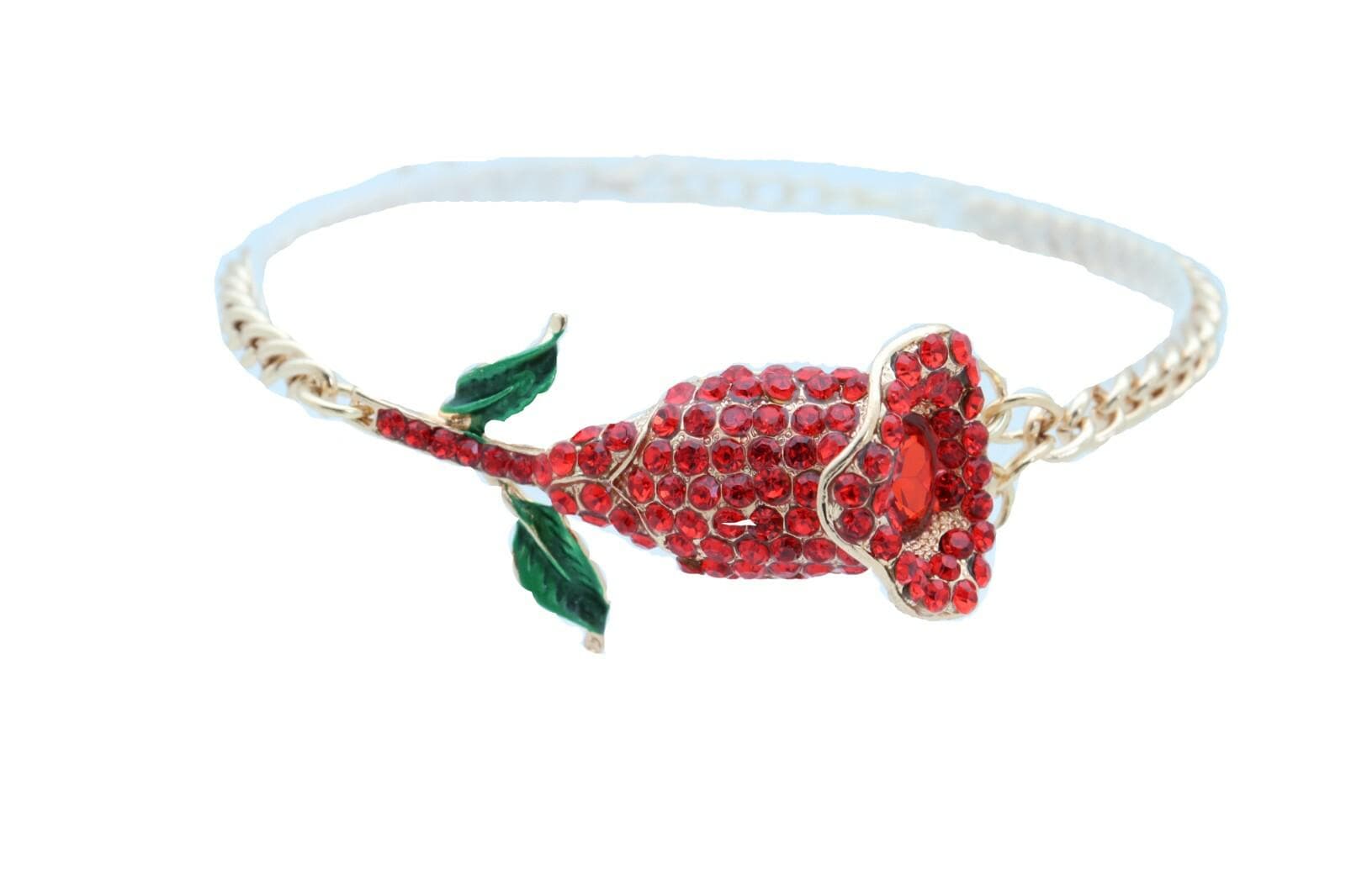 These gold boot chain bracelets are designed to turn any pair of boots into a styled, statement look in seconds. The set features a gold-tone chain with a bold red rhinestone rose charm and small green leaf accents for a romantic Western finish that stands out in photos and in real life.