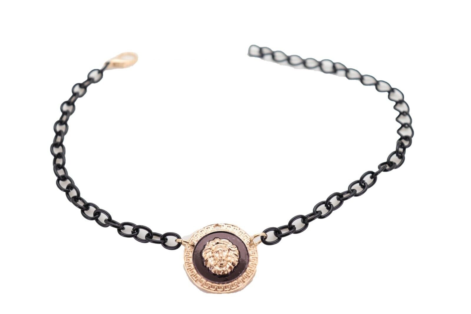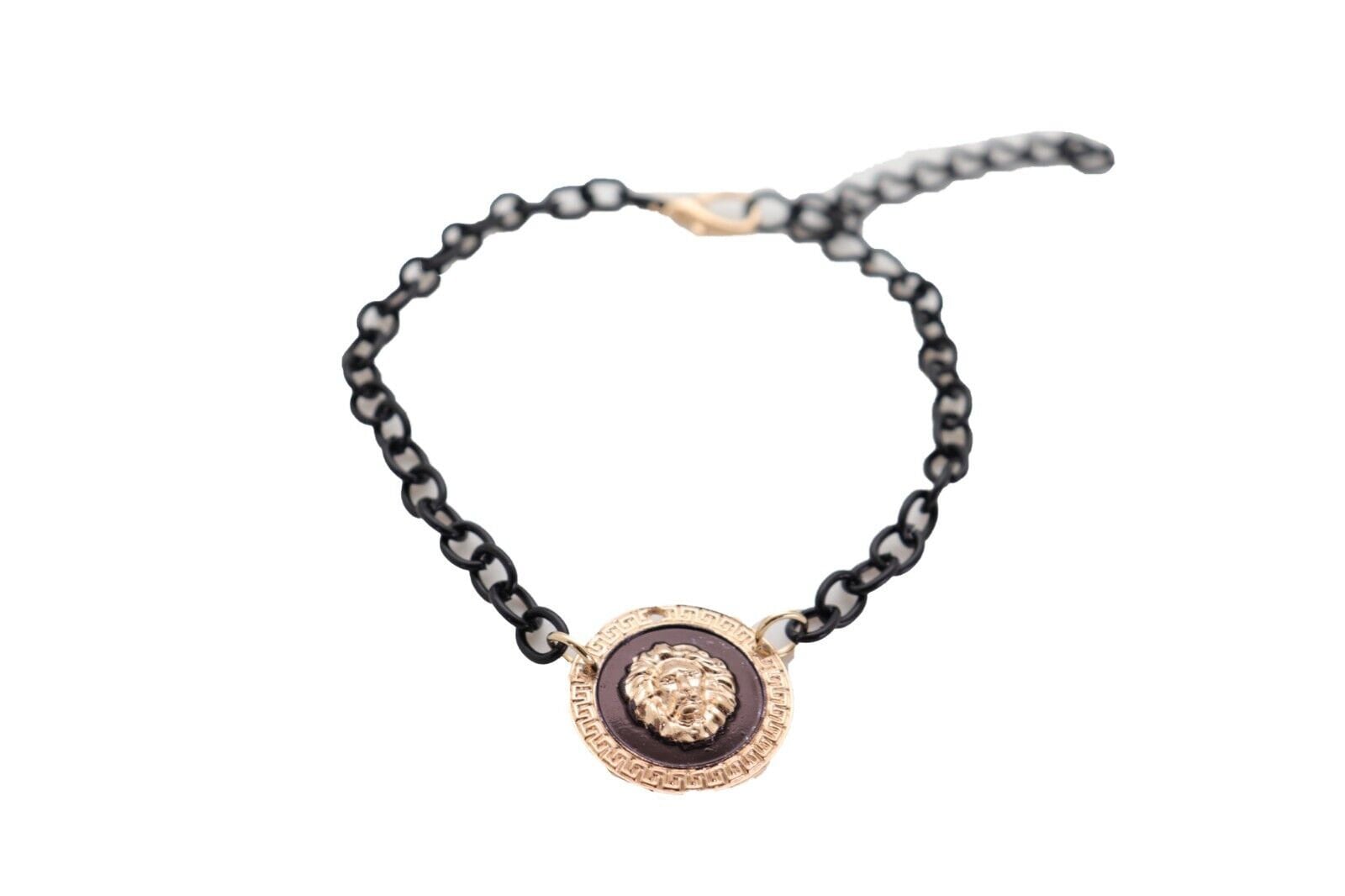 Black boot chain bracelet pair, gold lion coin medallion charm, shoe jewelry 2pcs BC196