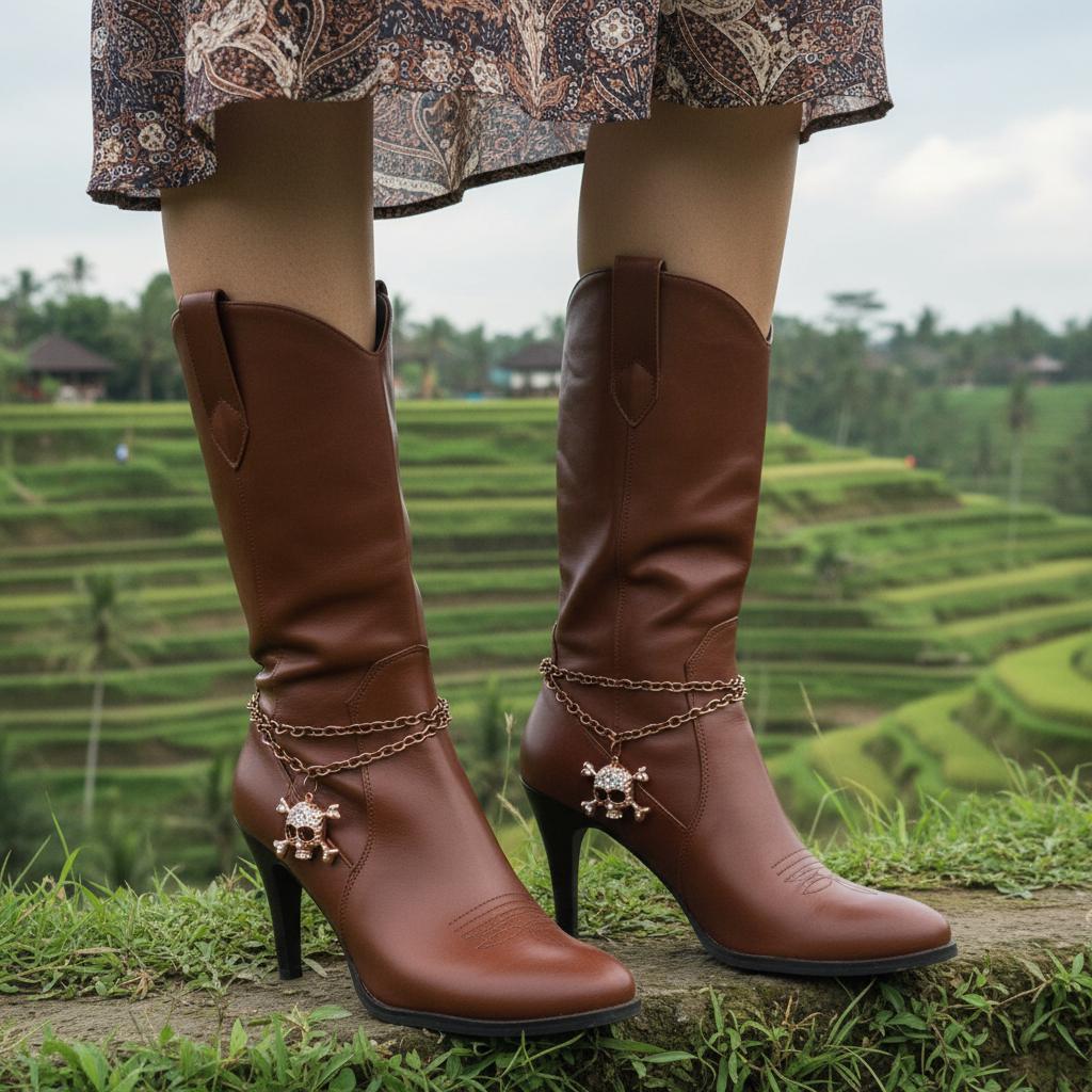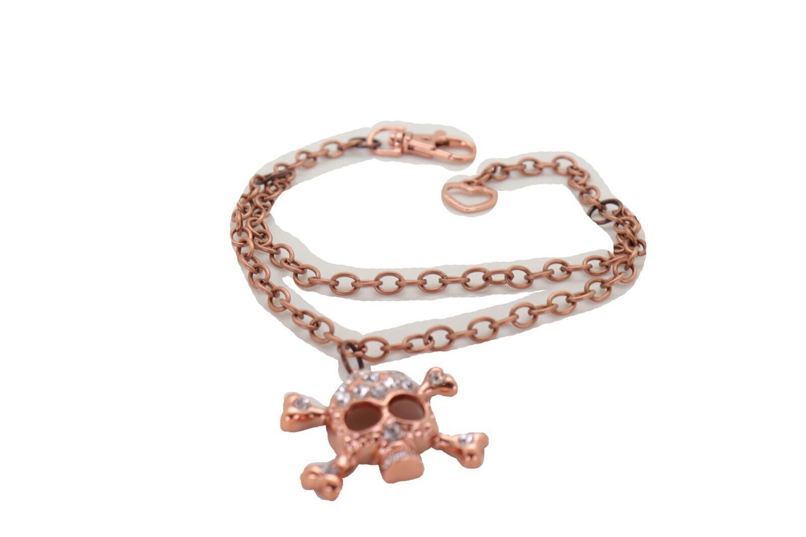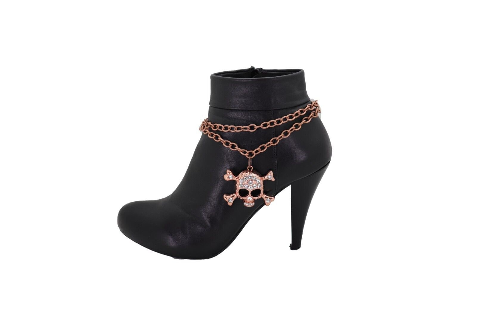 Meet your new favorite boot upgrade: rose gold/copper tone boot chain bracelets with a rhinestone skull-and-bones charm, sold as a pair (2 pcs) so both boots get the full look. These are made to add movement, shine, and a little rebellious personality—without changing your boots or your whole outfit.