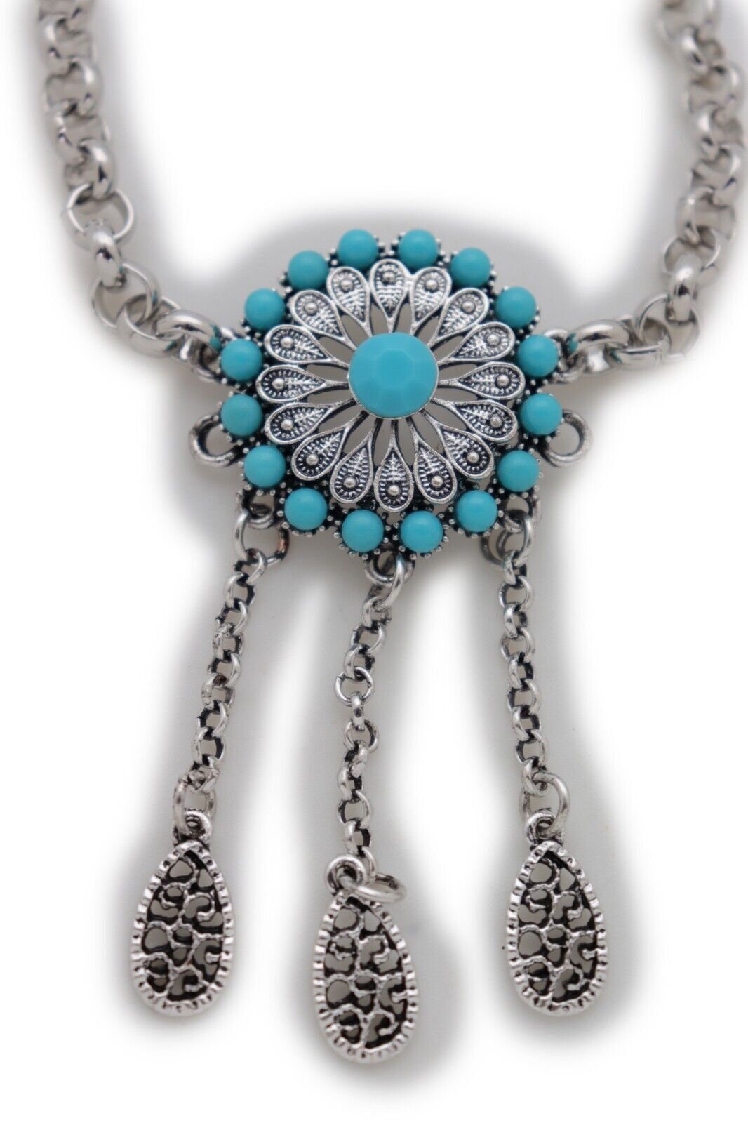 Say hello to the ultimate Western fashion accessory – our Women's Silver Boot Chain Bracelet Set featuring turquoise flower charms, vintage silver metal links, and three eye-catching chain drops for a bold yet elegant finish.