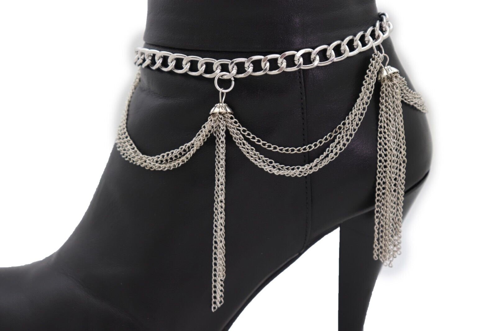 Meet BC195, a bold silver-tone boot chain bracelet set designed for maximum movement and attention. This set is sold as a pair (2PCS)—you get two matching boot chains so both boots look styled, balanced, and photo-ready.