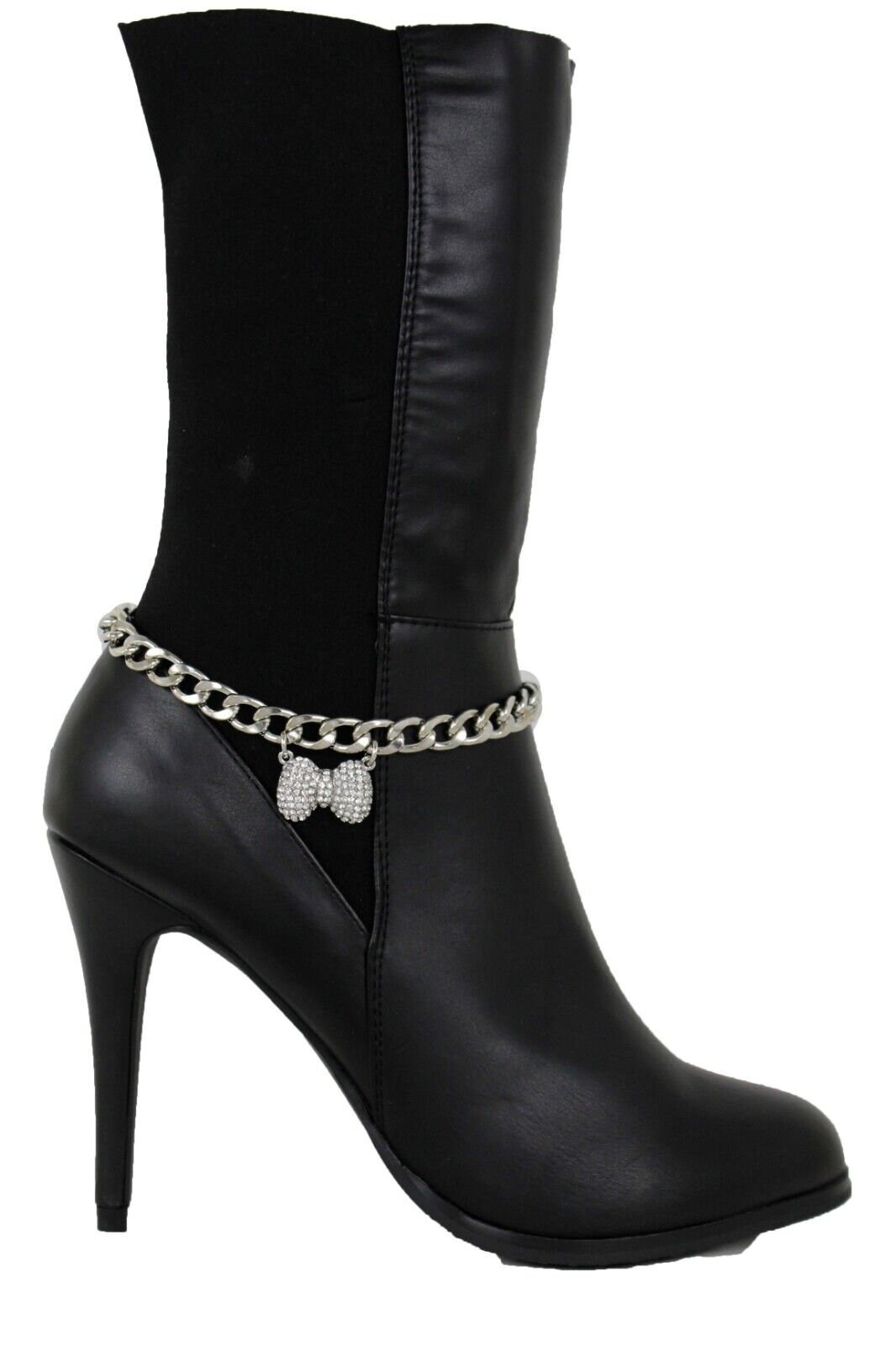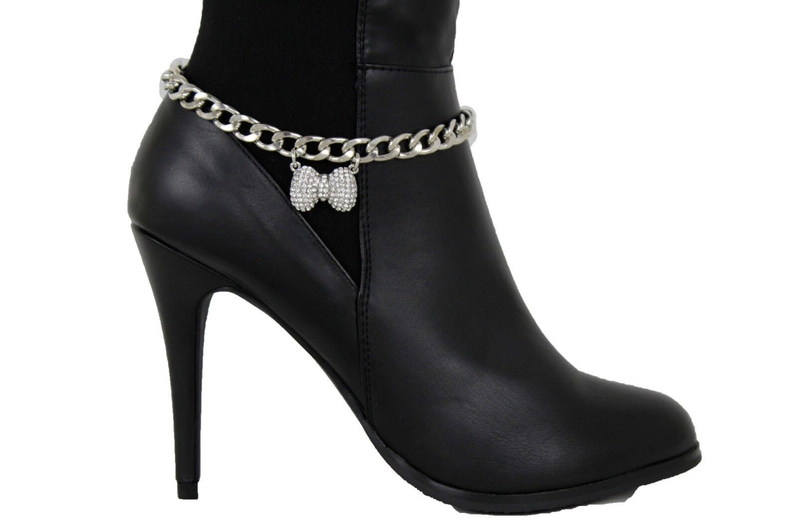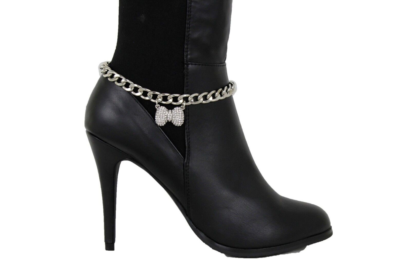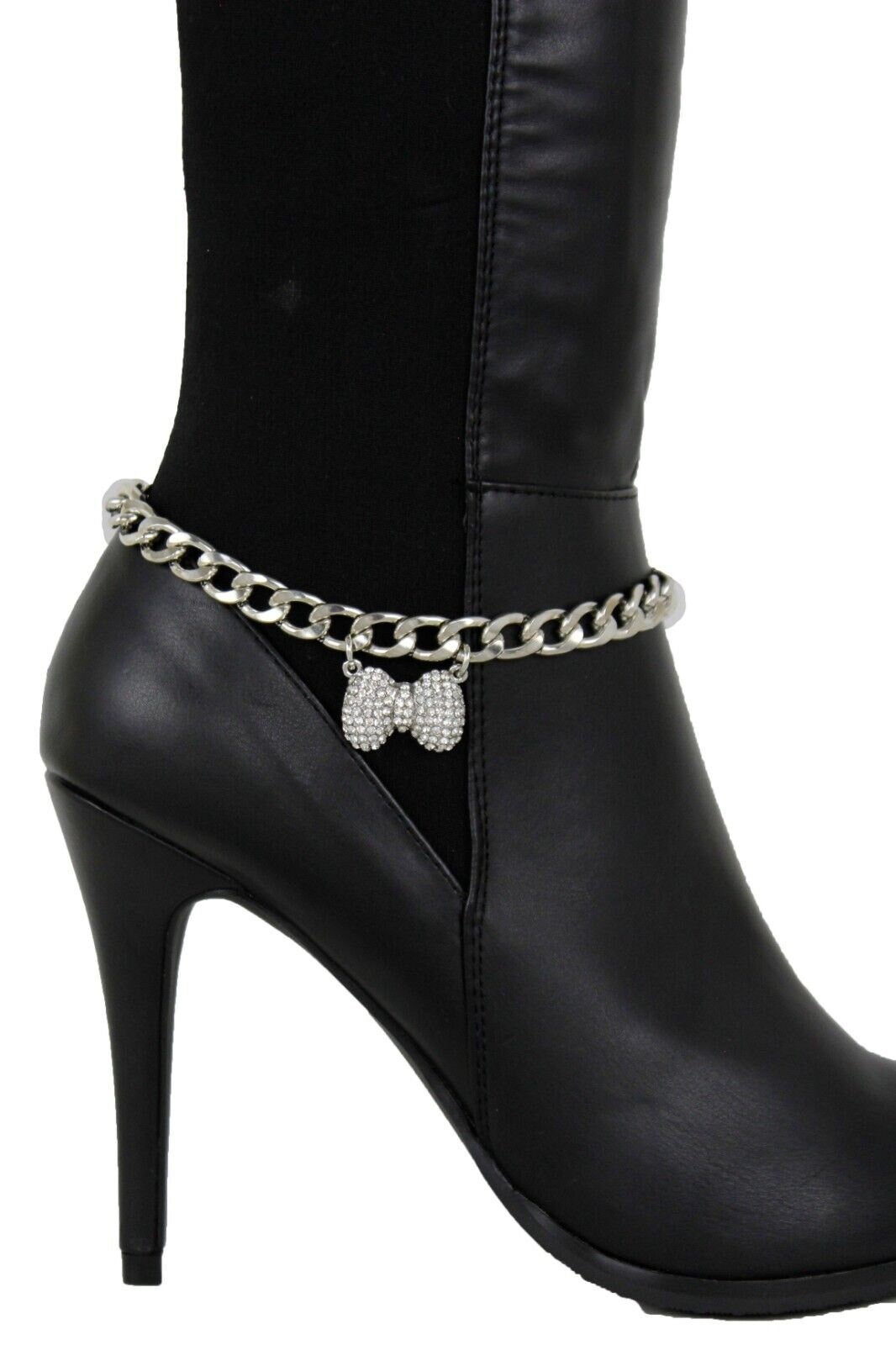 Rhinestone Bow Boot Chain: Western Silver Ankle Bracelet