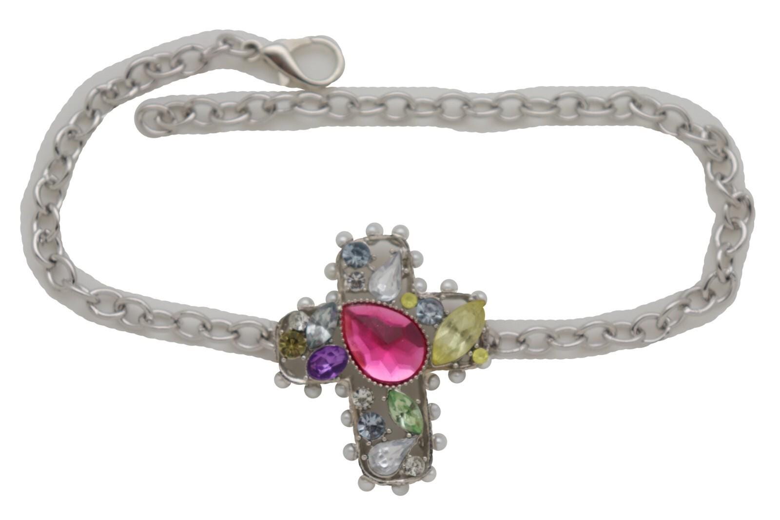 Women’s Silver Boot Chain Bracelets Pair, Multicolor Cross Charm Boot Shoe Anklet Set BC110