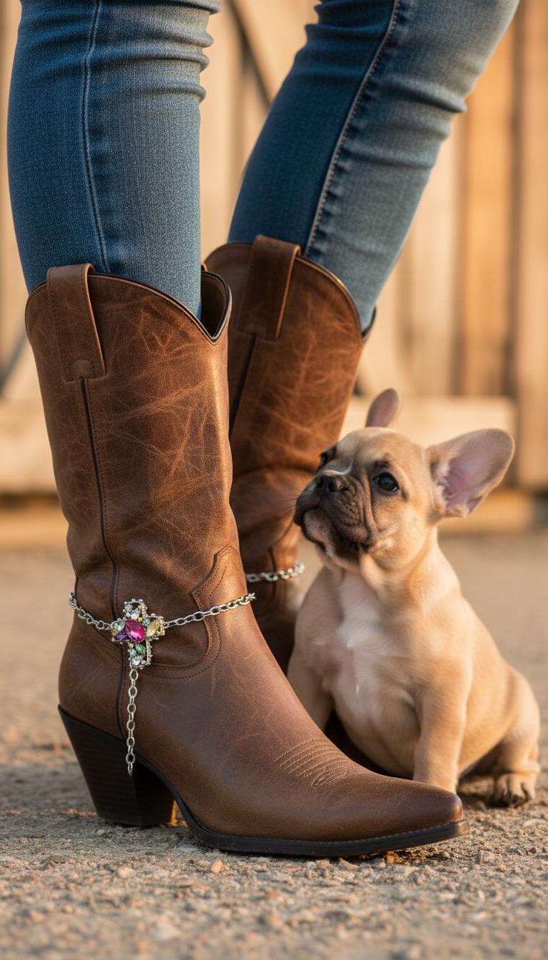Your Boots Deserve Accessories Too. This Pair Of Silver Boot Chain Bracelets Adds The Perfect Finishing Detail: A Multicolor Rhinestone Cross Charm That Brings Shine, Color, And A Little “Where Did You Get That?” Energy To Any Outfit.