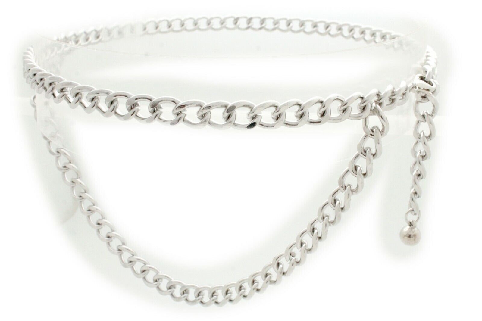 Introducing the Women’s Silver Metal Chain Link Belt from our all-season urban-chic collection. This eye-catching belt is designed to fit sizes XS to XXL (adjustable from approx. 20" to 55"), making it a wardrobe MVP for petite and slim-waisted fashionistas.