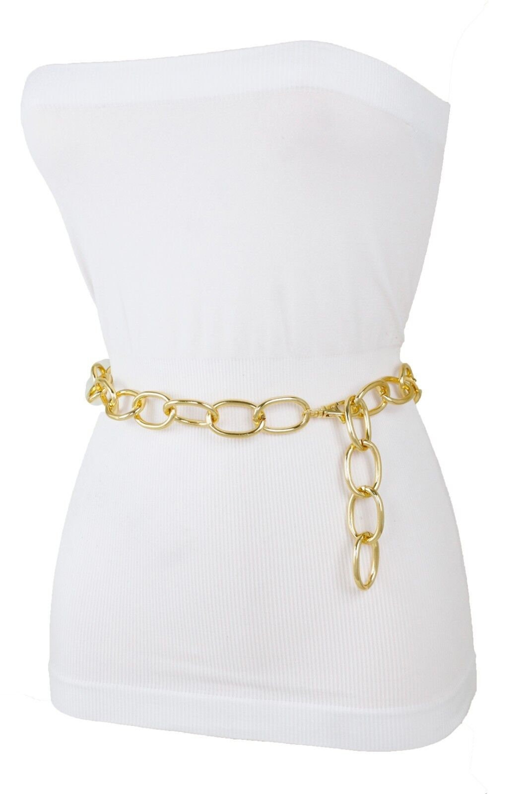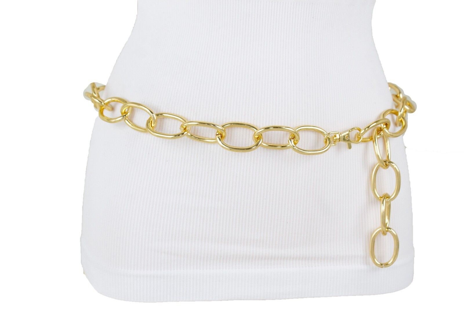 Fashion Forward: This waistband boasts a trendy and stylish design, featuring gold metal chain links that effortlessly blend glamour and edge into your ensemble.