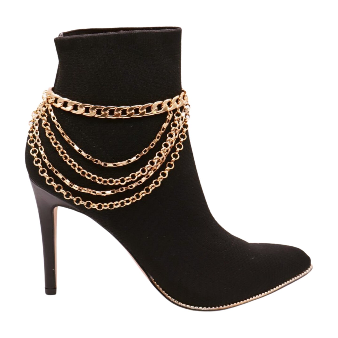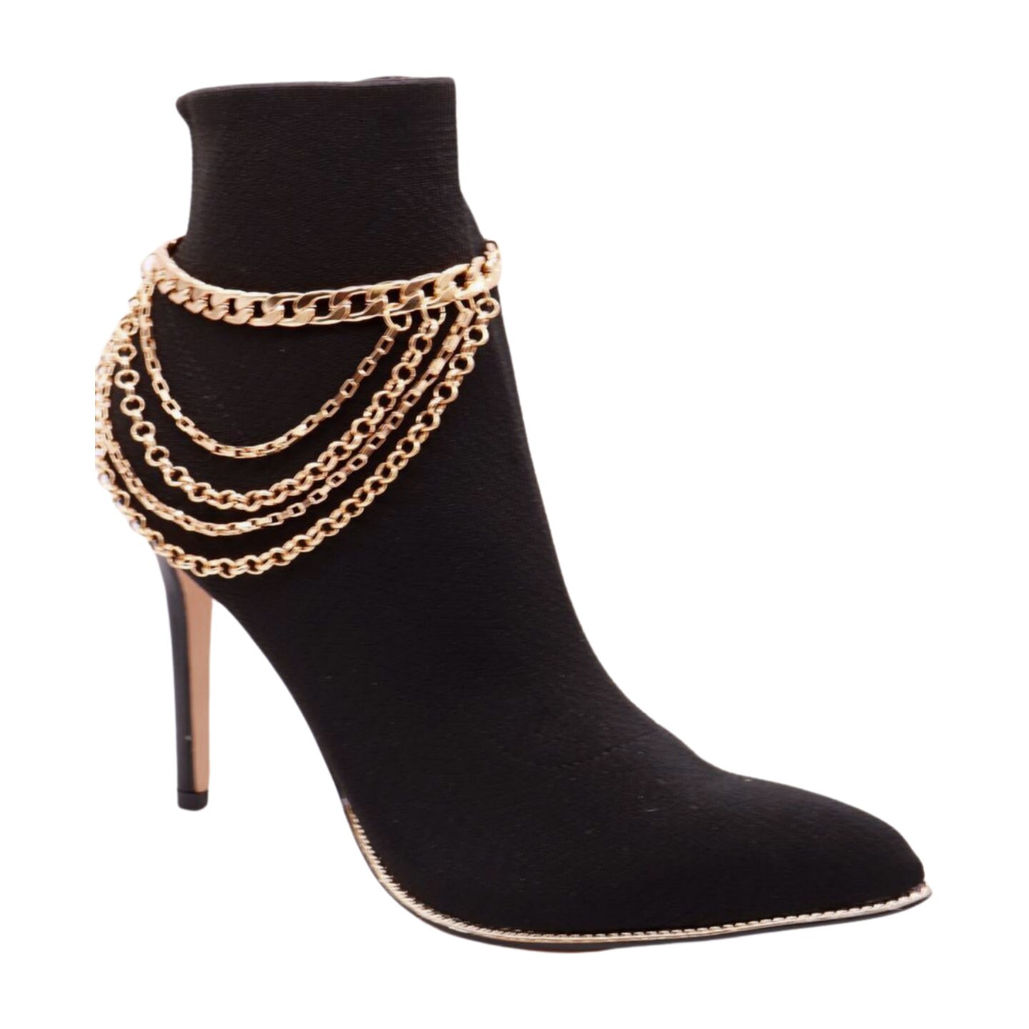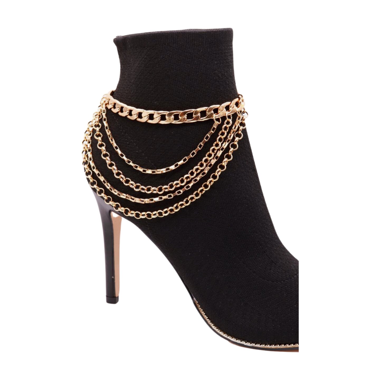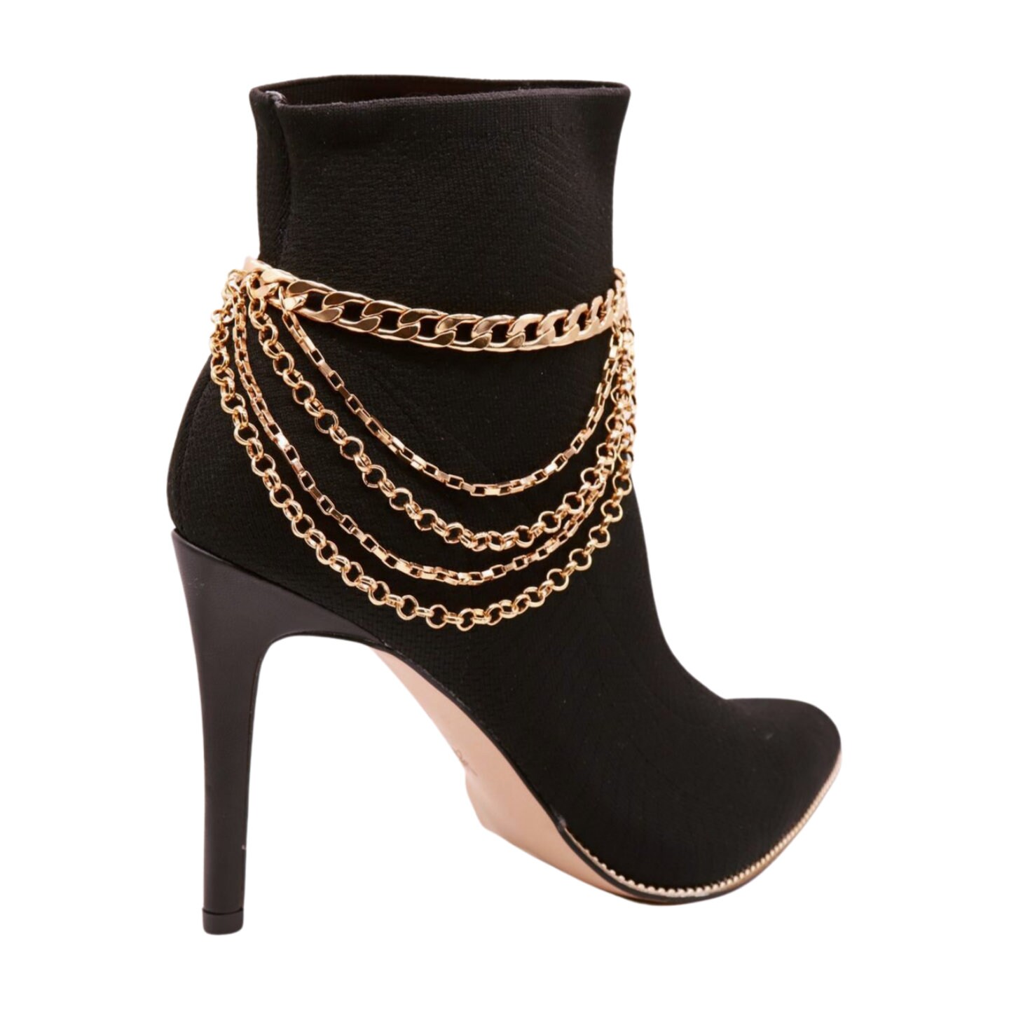 Meet your boots’ new favorite accessory: a gold-tone, multi-strand wave drape boot chain set that turns everyday footwear into a styled moment.