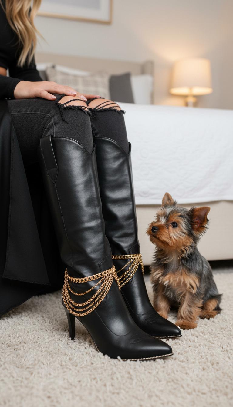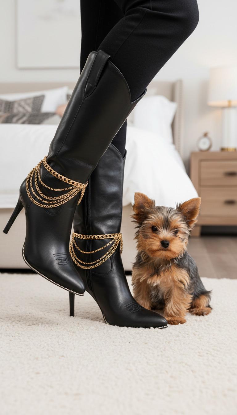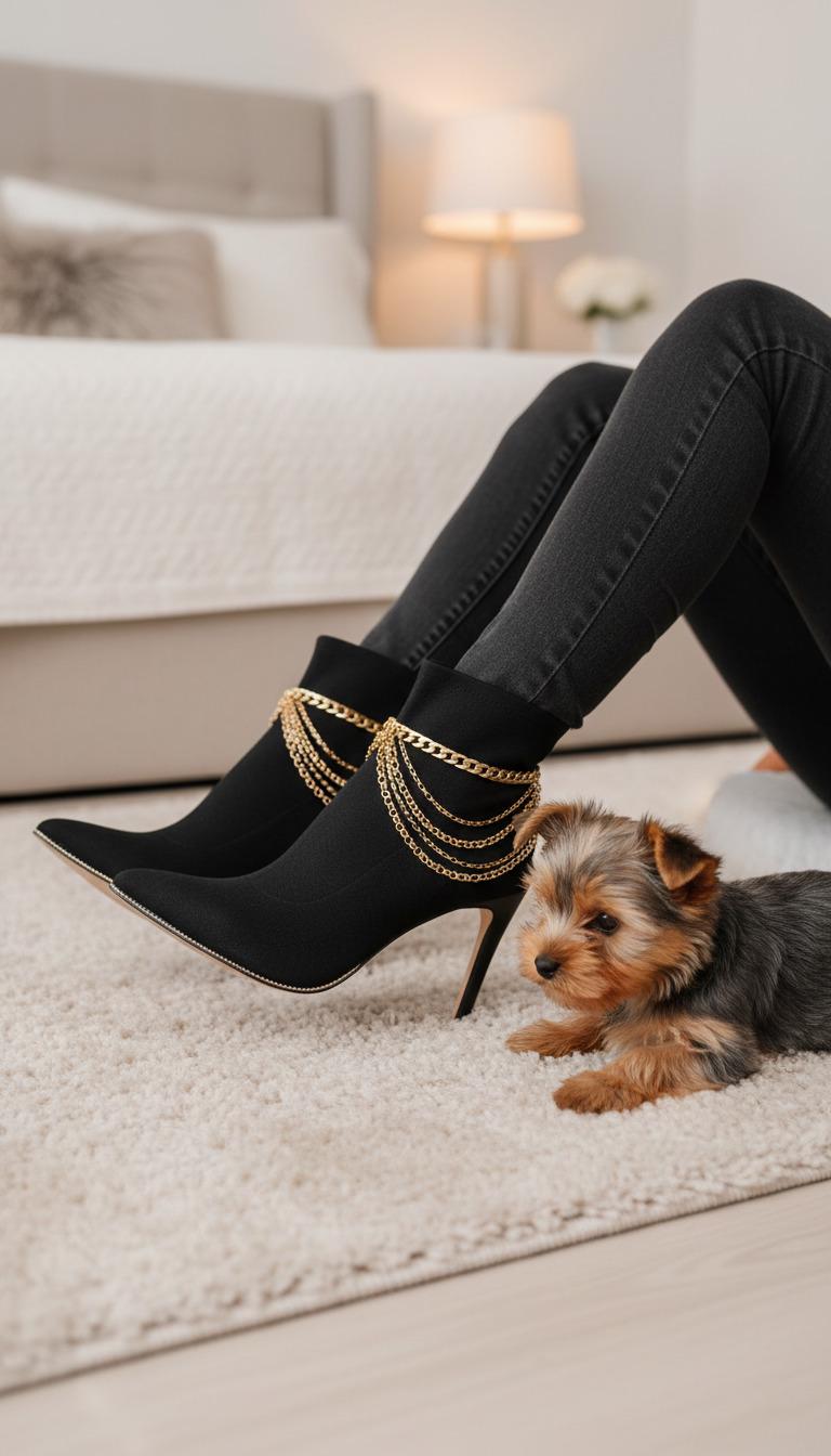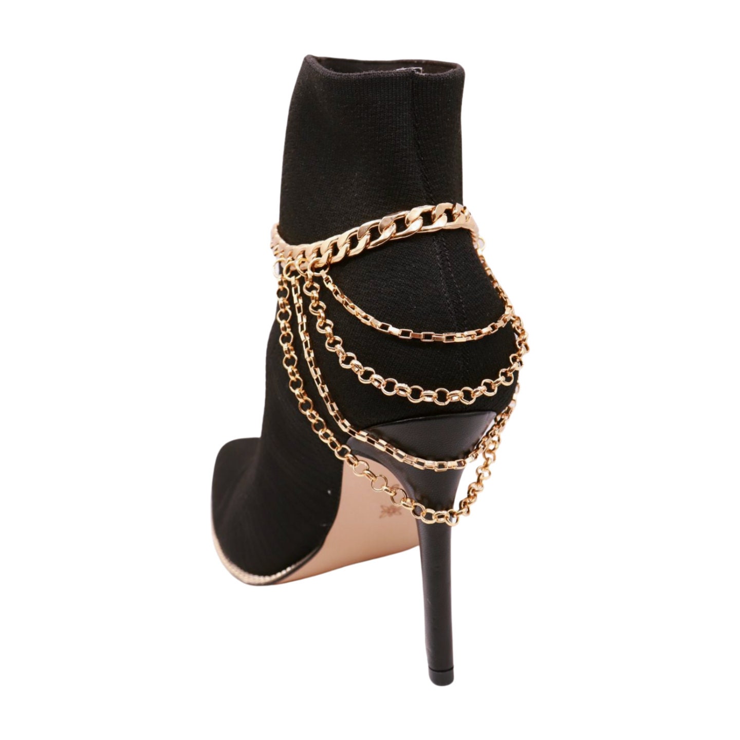 Meet your boots’ new favorite accessory: a gold-tone, multi-strand wave drape boot chain set that turns everyday footwear into a styled moment.