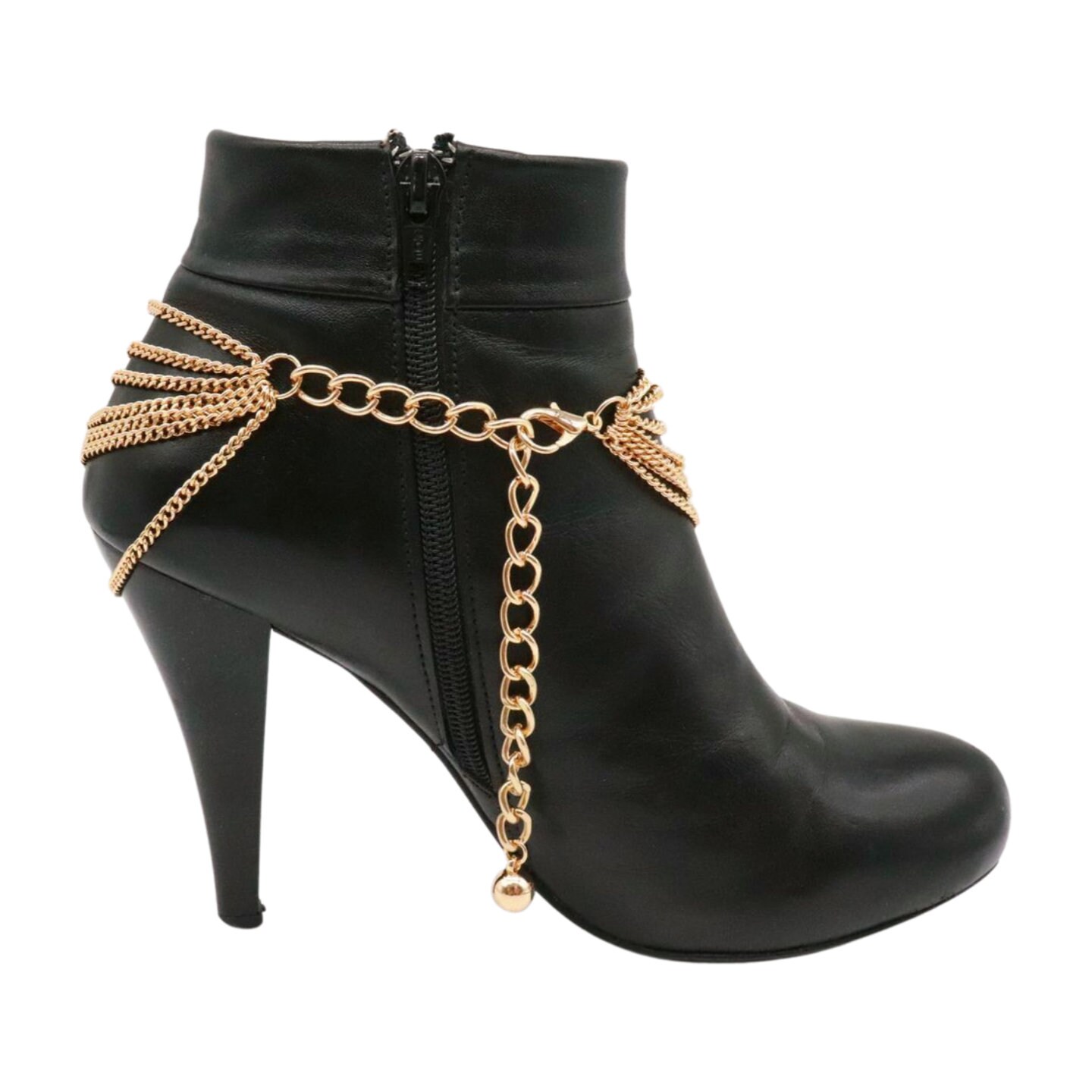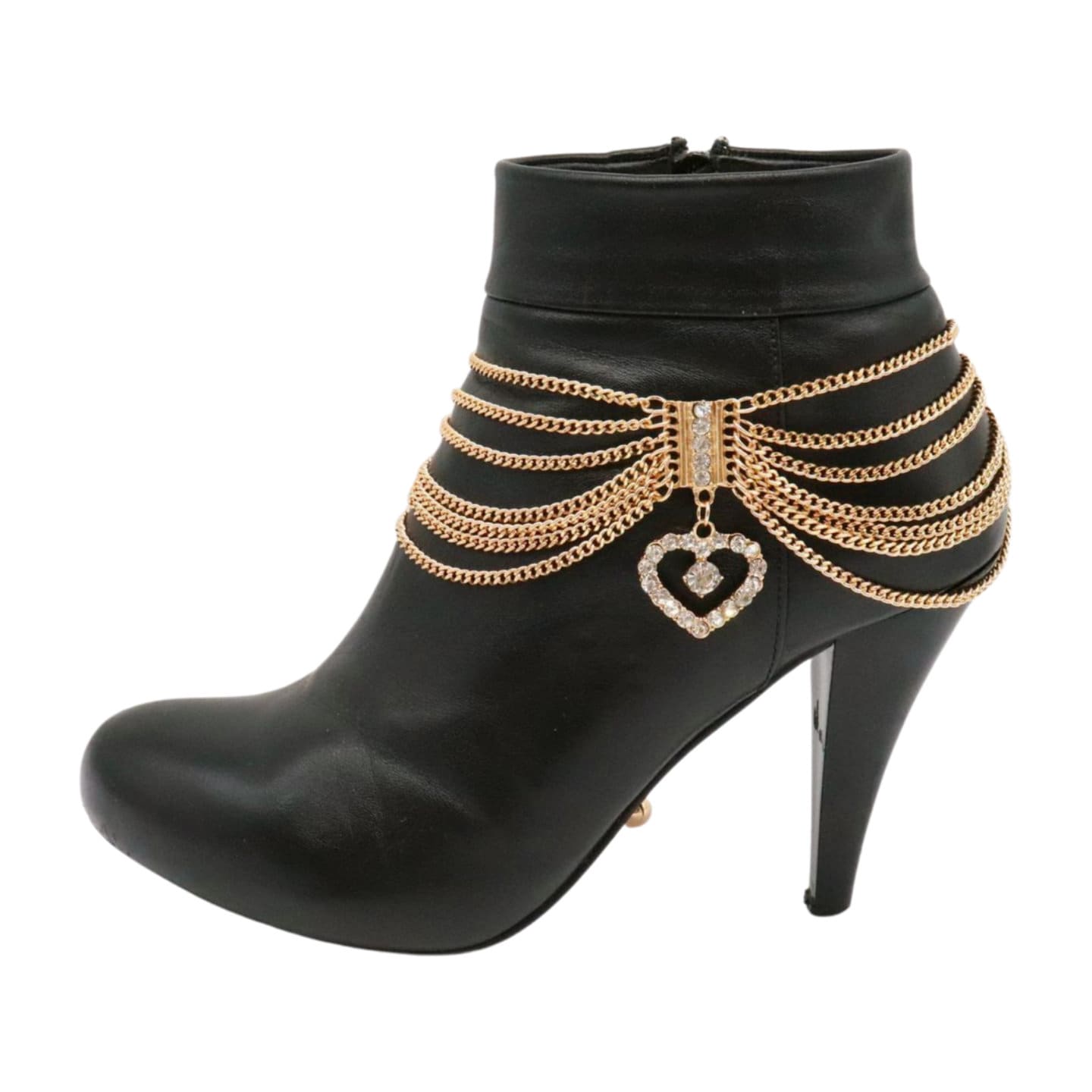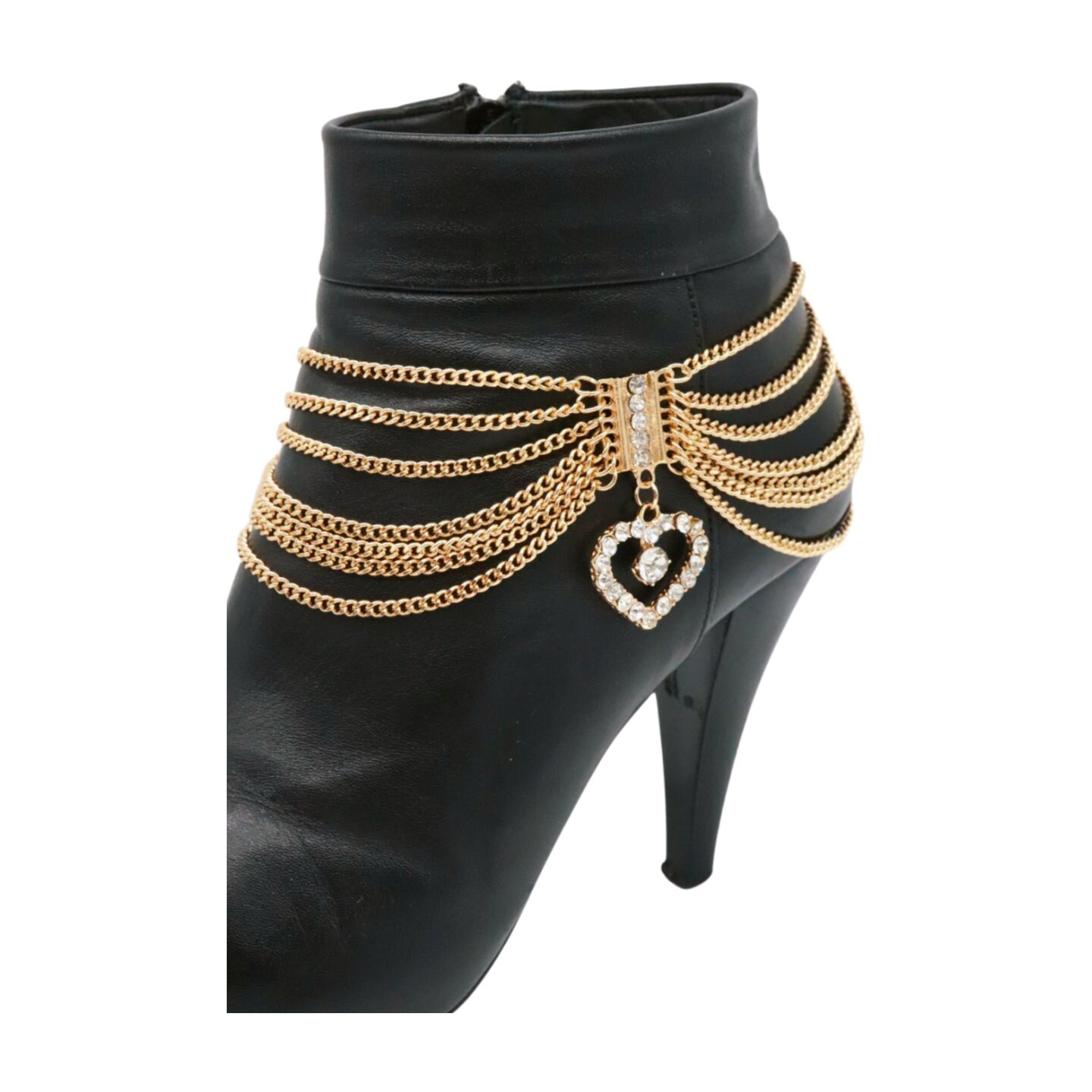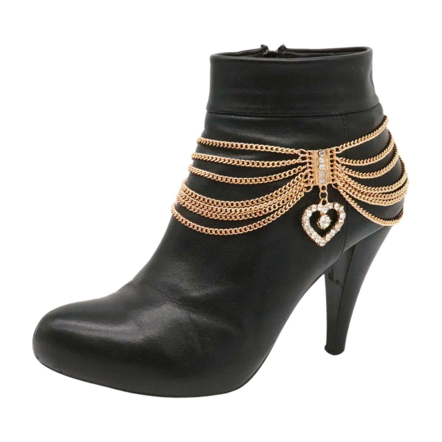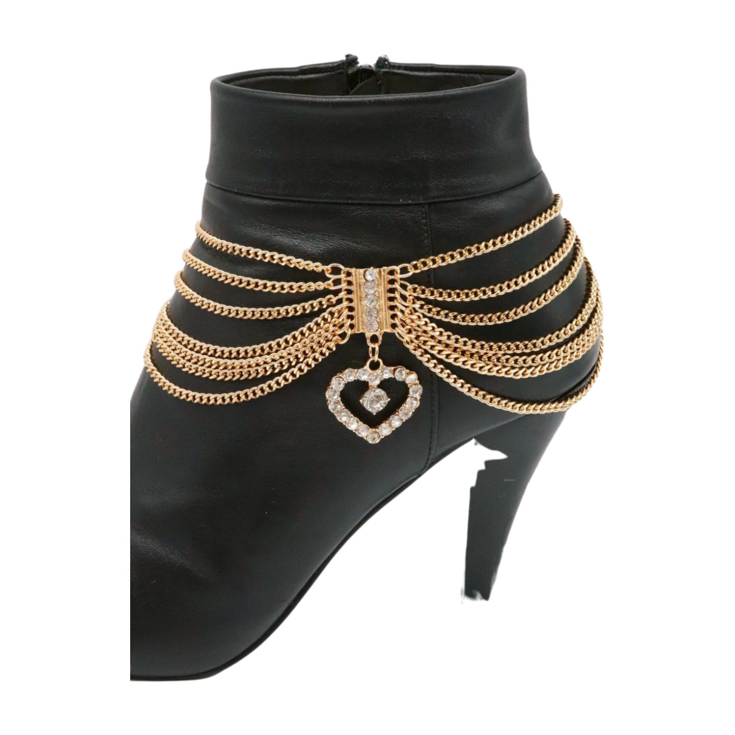 Turn your boots into the statement piece. This gold multi-wave boot chain bracelet set features layered draped chains and a rhinestone heart charm for a polished sparkle that works with western boots, ankle boots, and heeled booties.