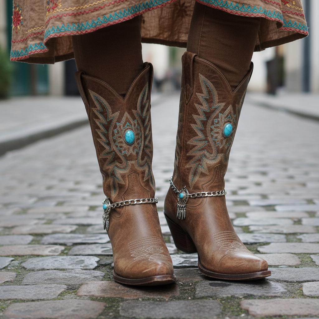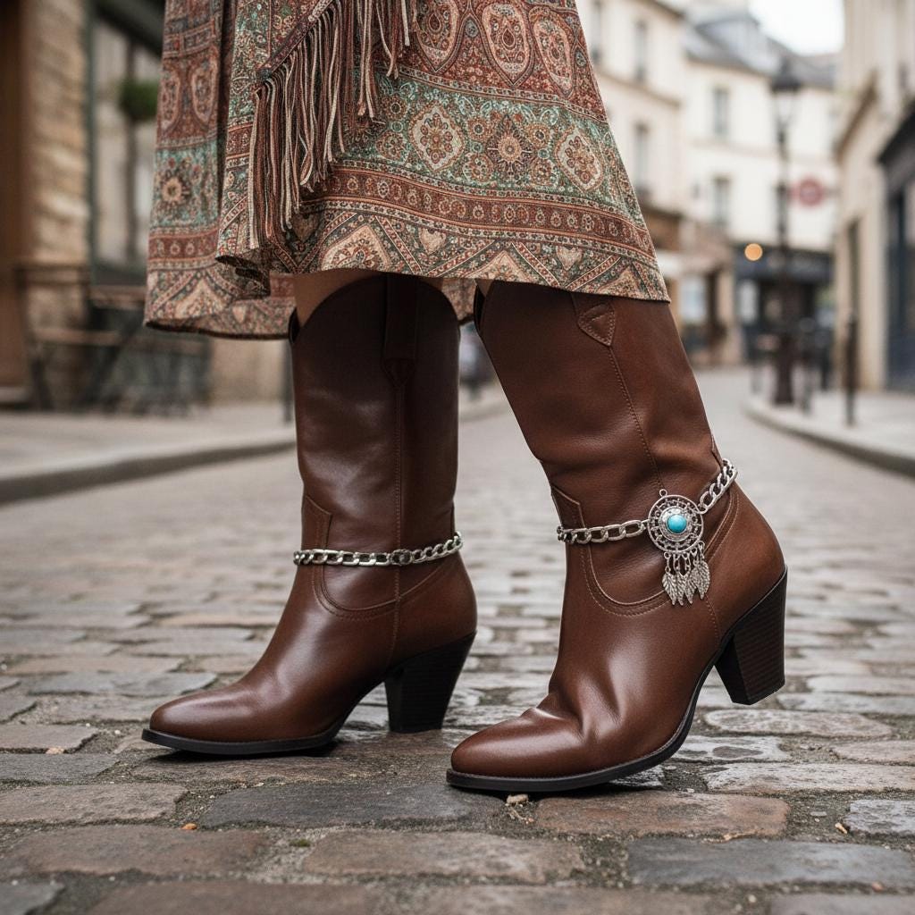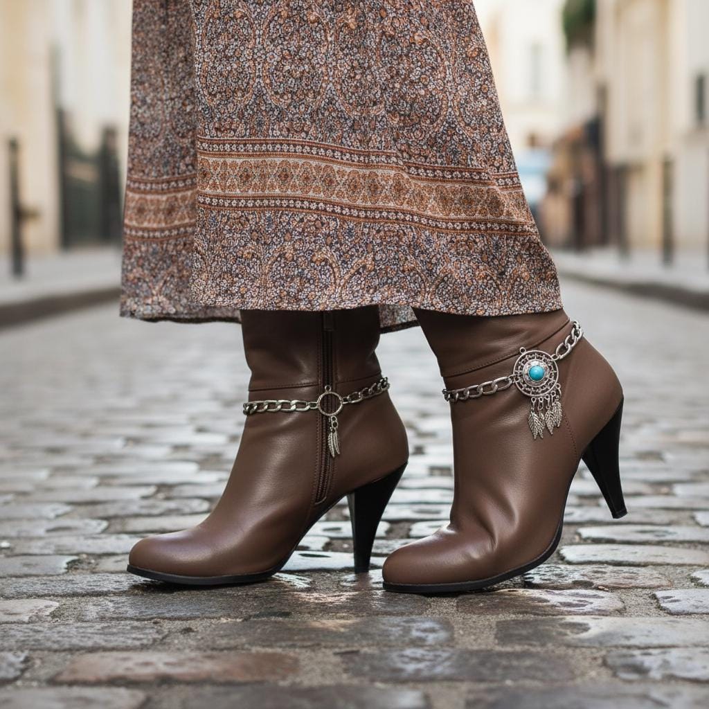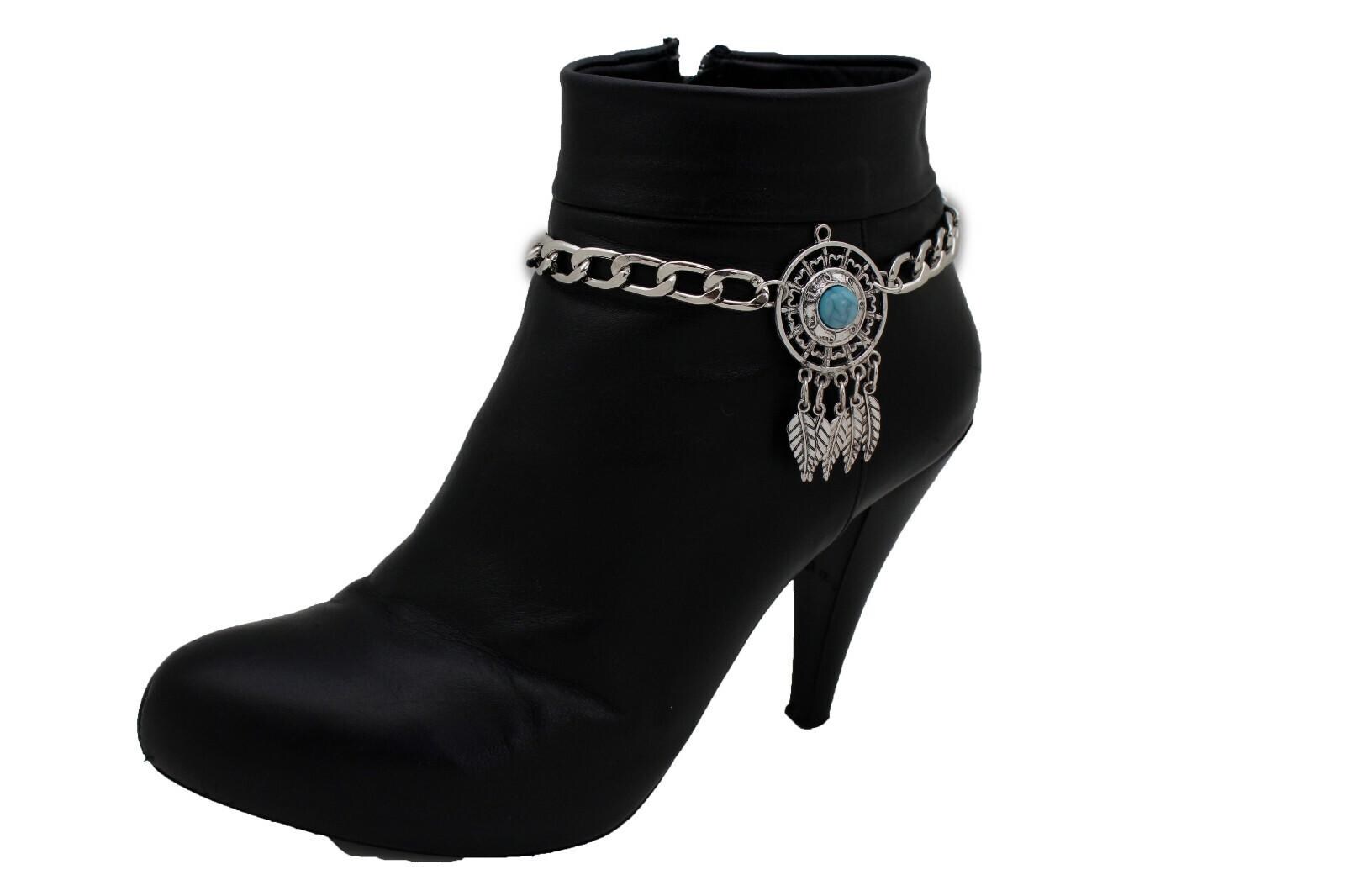 Your boots deserve jewelry, too. This silver-tone boot chain bracelet pair brings a western-boho statement to ankle boots, booties, and cowgirl boots with a dreamcatcher-inspired medallion charm, a turquoise-color center bead, and dangling feather accents that move beautifully when you walk.