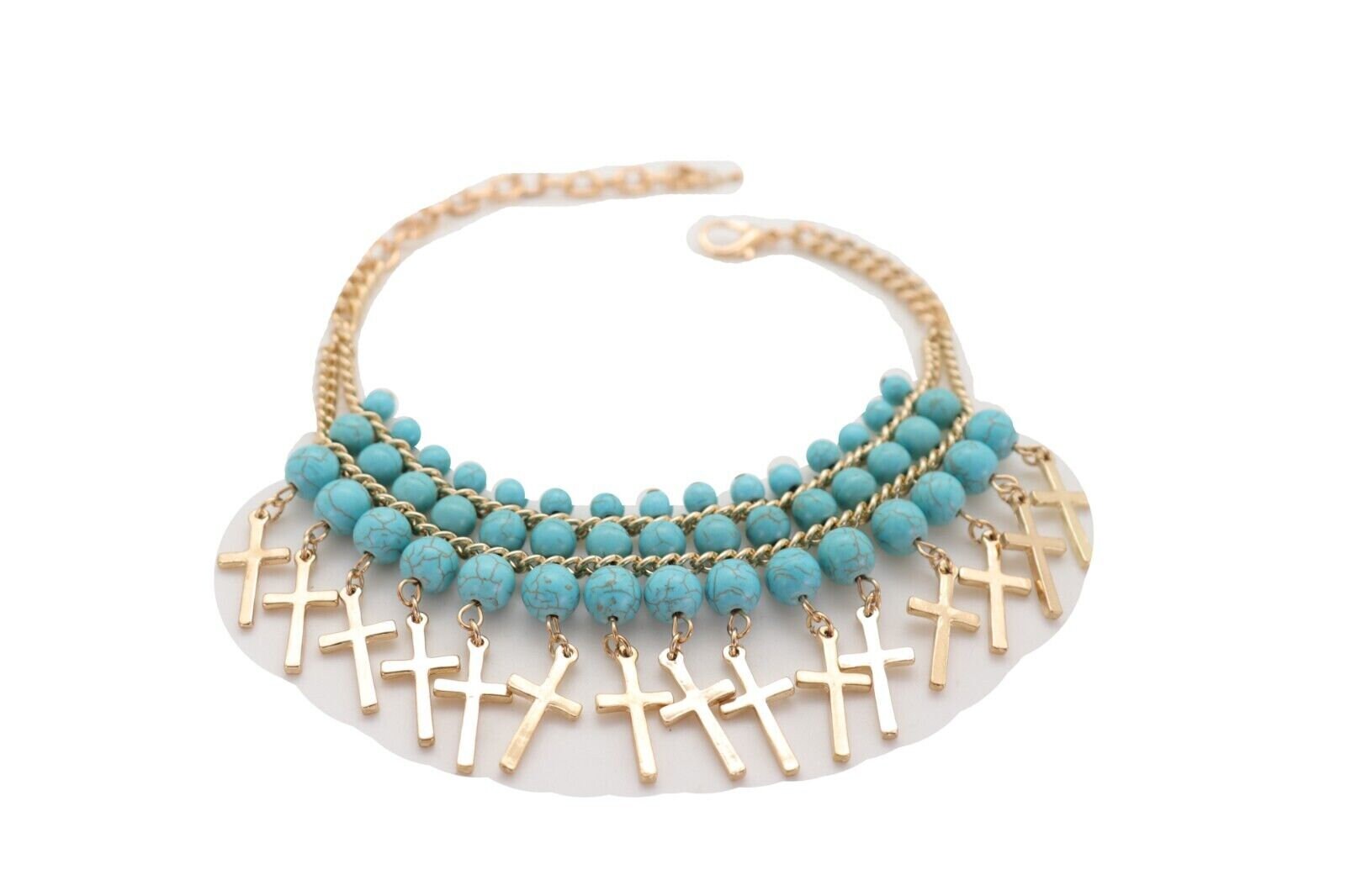 Western Boot Chain: Gold Cross Charms, Turquoise Beads (Single)