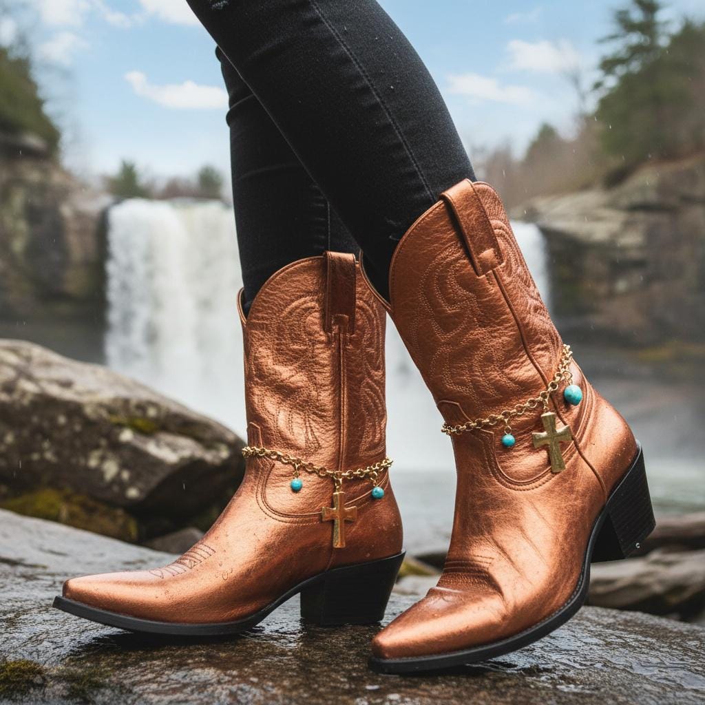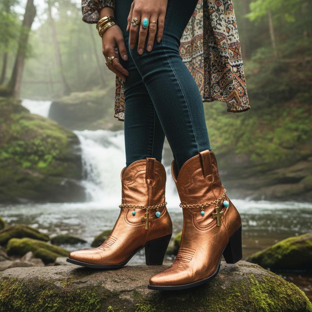 Perfect for styling western boots, ankle boots, heeled booties, or tall shafts—this accessory turns “cute boots” into “where did you get those?”