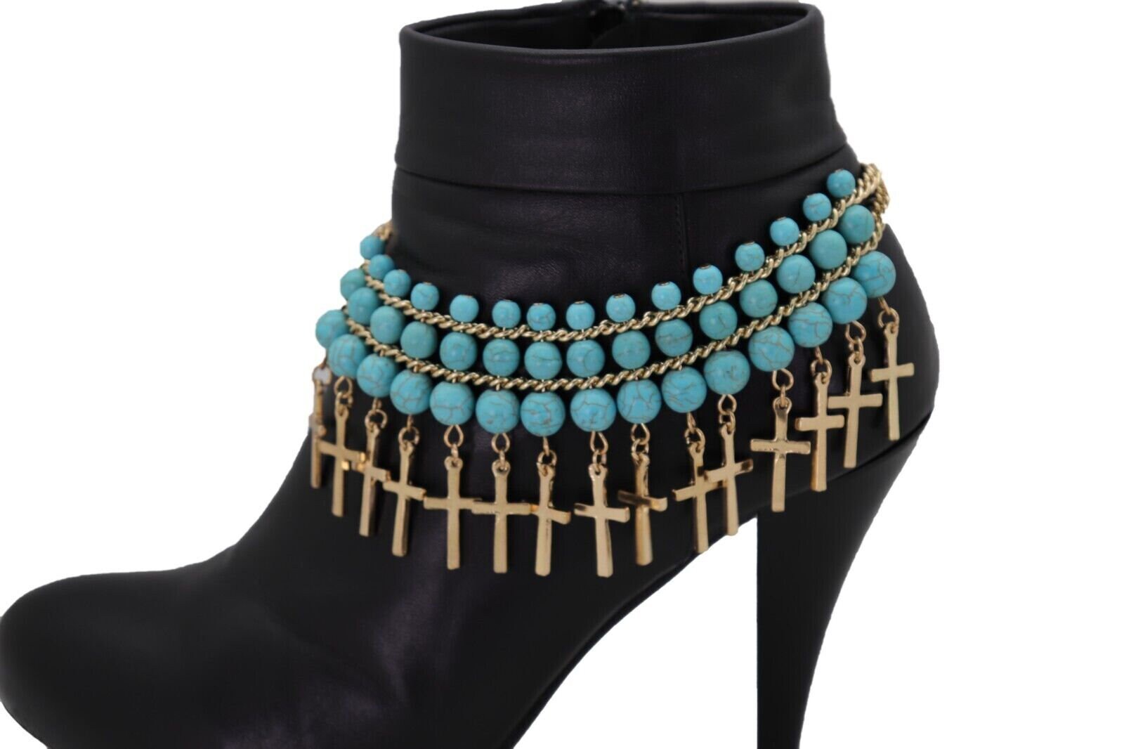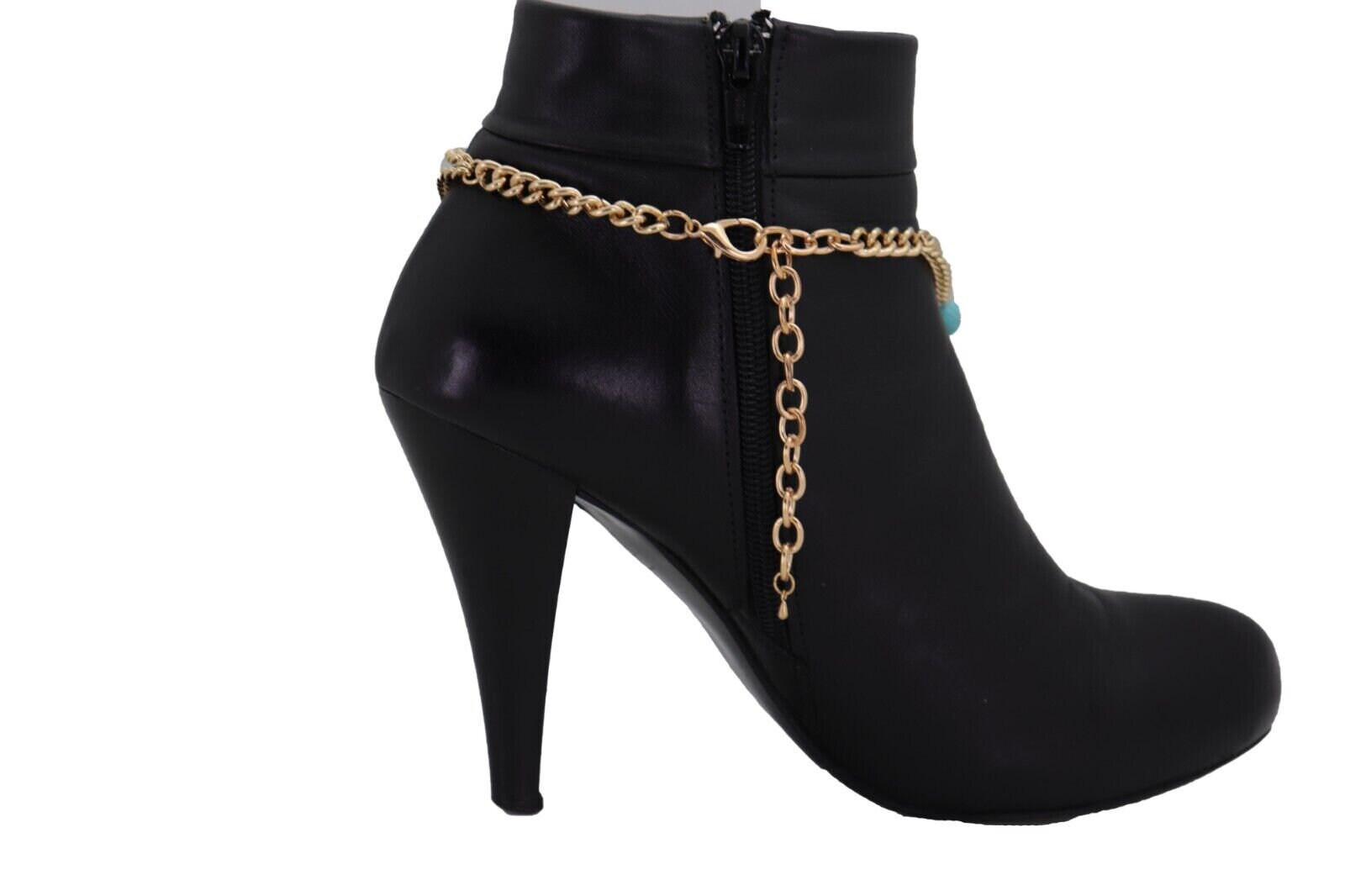 ✨ Step into the spotlight with our Brand New Fancy Western Fashion Sexy Boot Chic Metal Chain Links Bracelet! 🌟 This single and chic accessory, sold individually and handcrafted in the USA, is the epitome of Western bling. Elevate your boots with this single boot strap featuring gold metal chain links, charming charms, and vibrant turquoise blue beads. Perfect for special events, parties, dances, or any day or night out, this accessory adds a touch of fun and cool glamour to your ensemble.