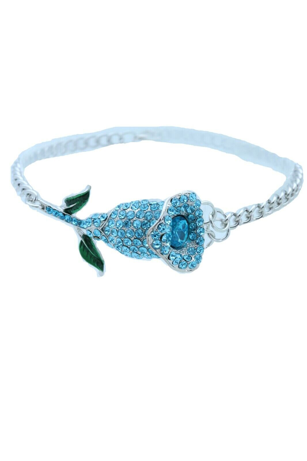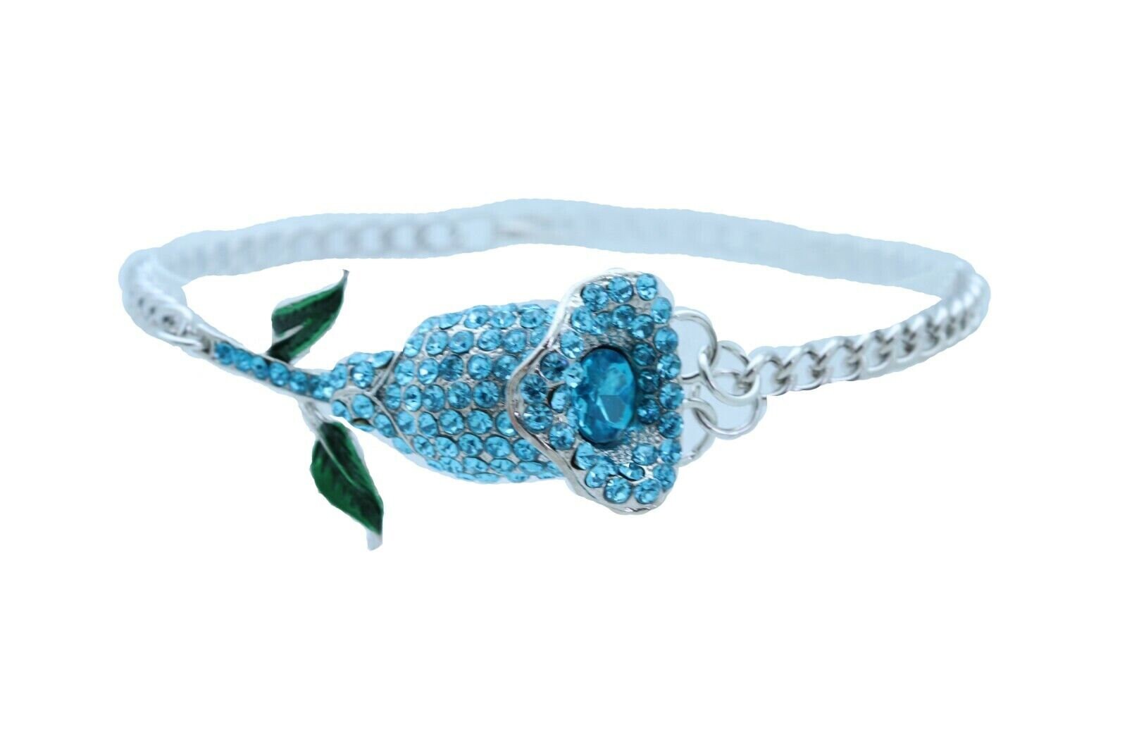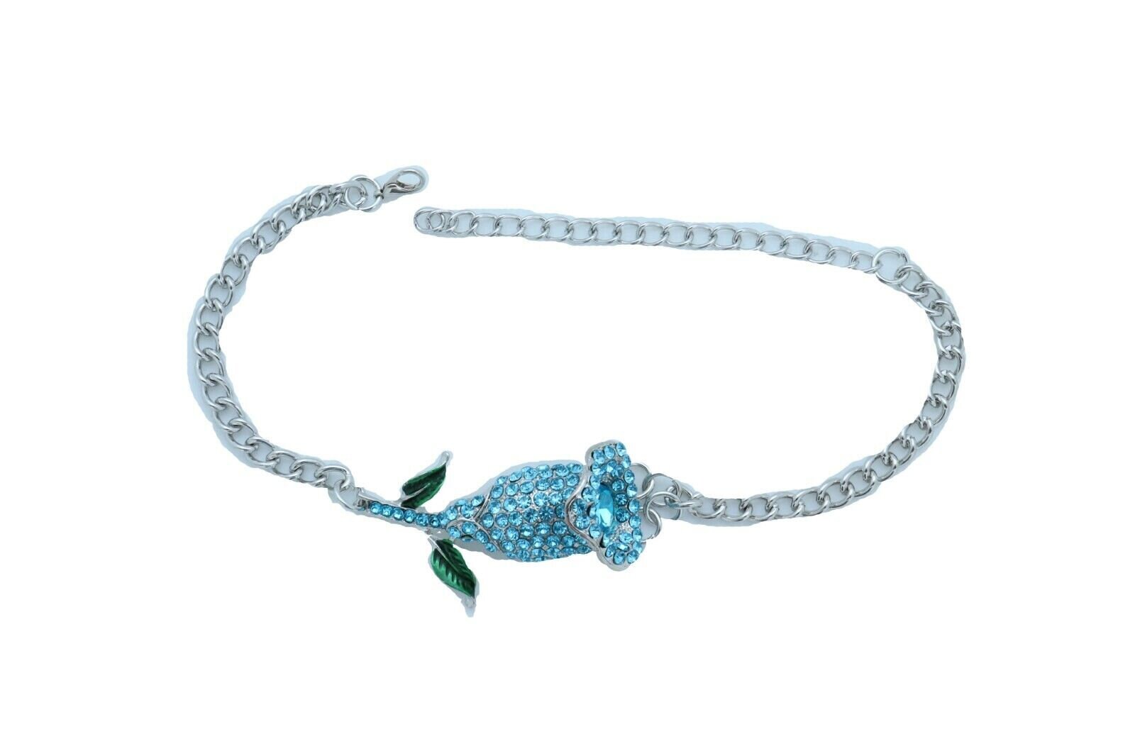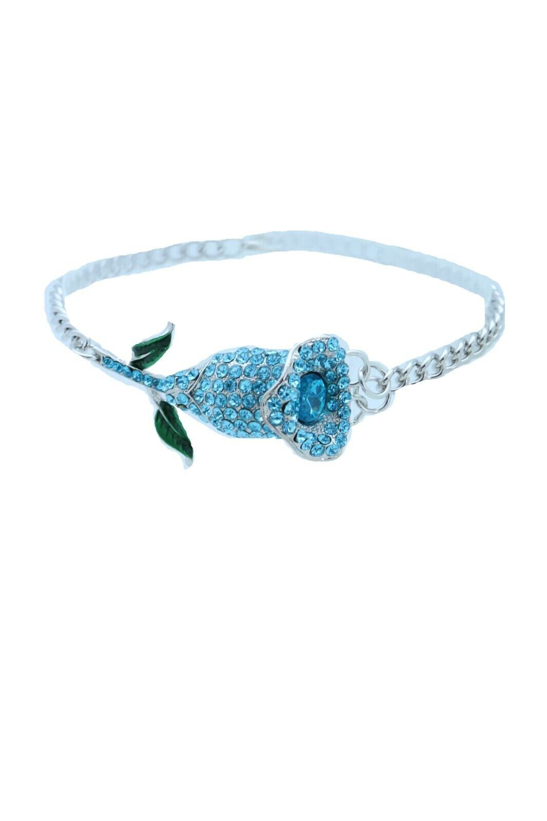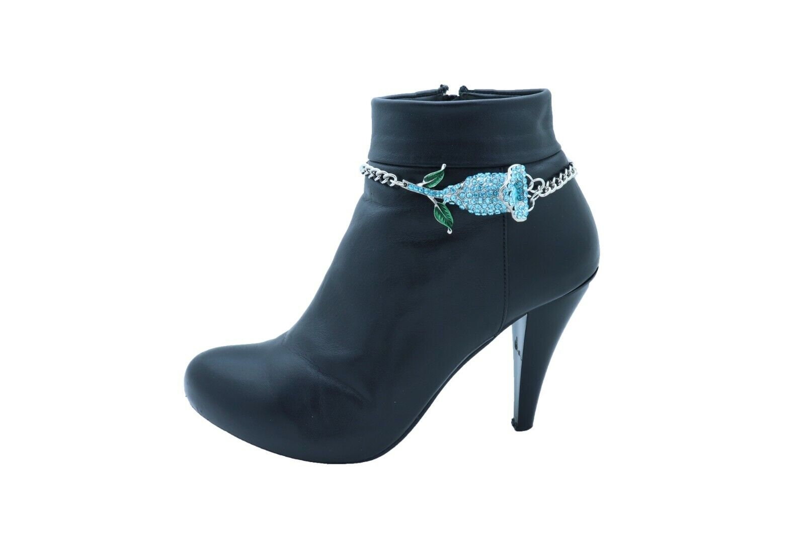 Meet your boots’ new favorite accessory: a silver-tone chain bracelet set with a sky-blue rhinestone rose charm that brings instant sparkle and a floral pop to your look. This listing is for BC120, a pair (2 pieces) of boot chain bracelets—one for each boot—handmade by us in the USA.