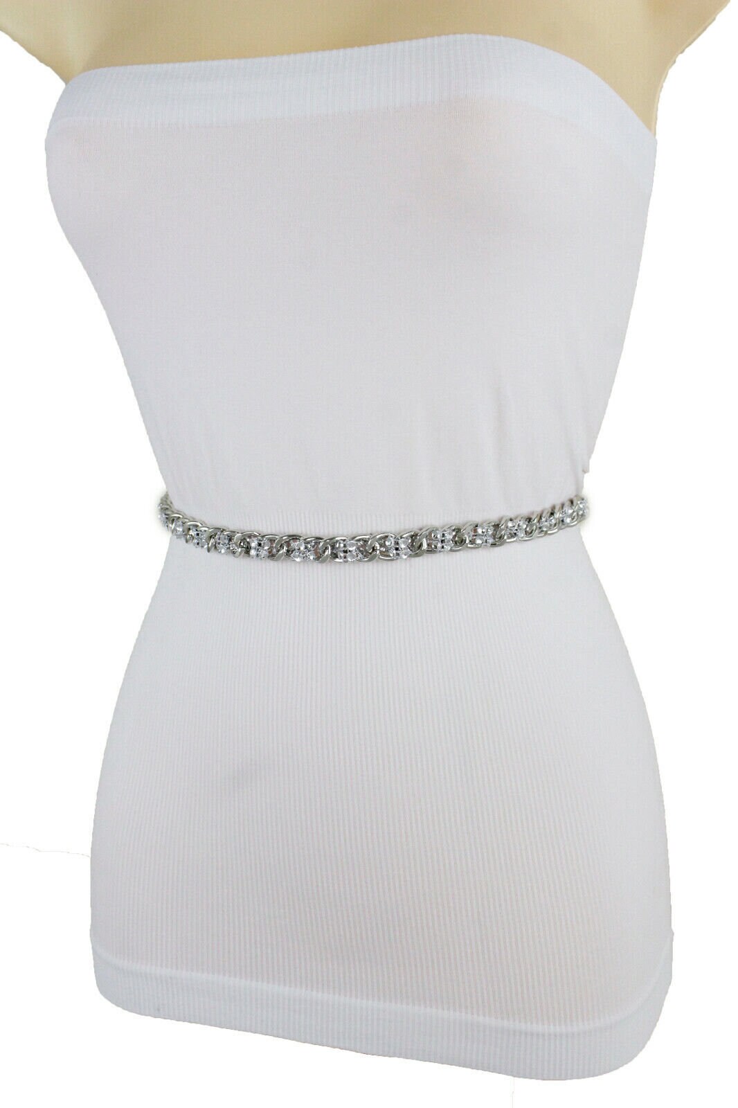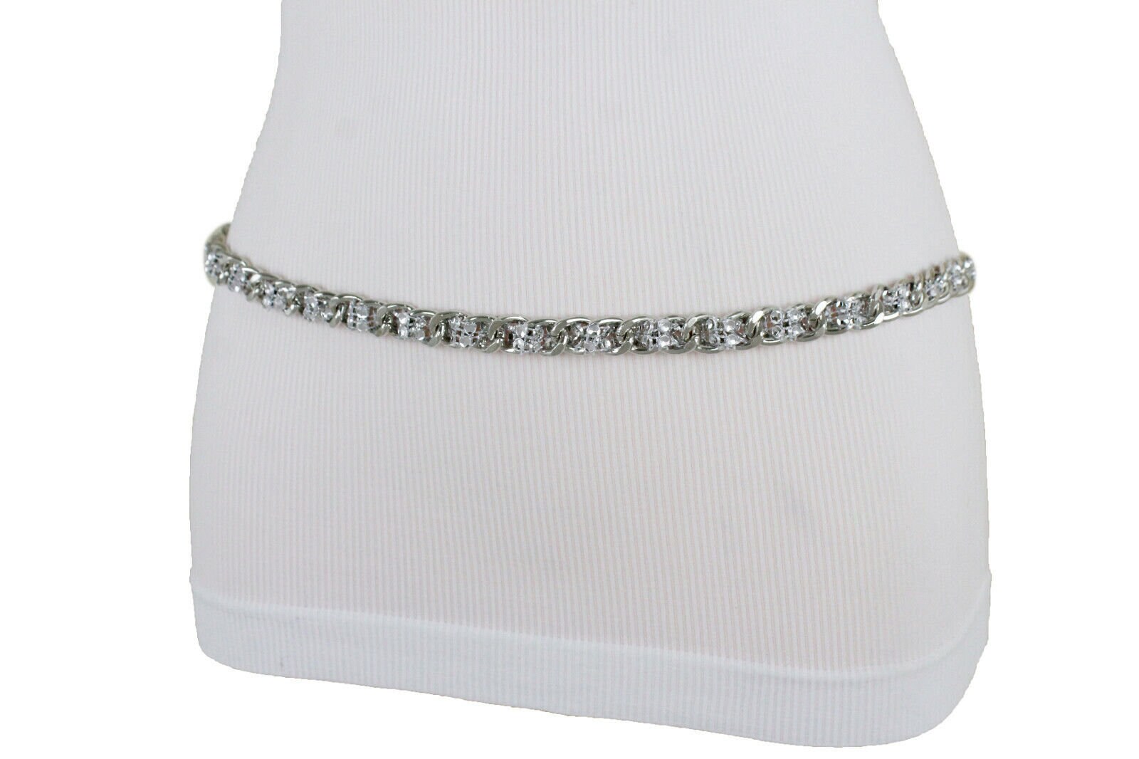 Fashion Forward: This waistband boasts a unique and chic design with silver metal chain links and a mesh fabric adorned with beads. It's the perfect blend of edgy and stylish.
