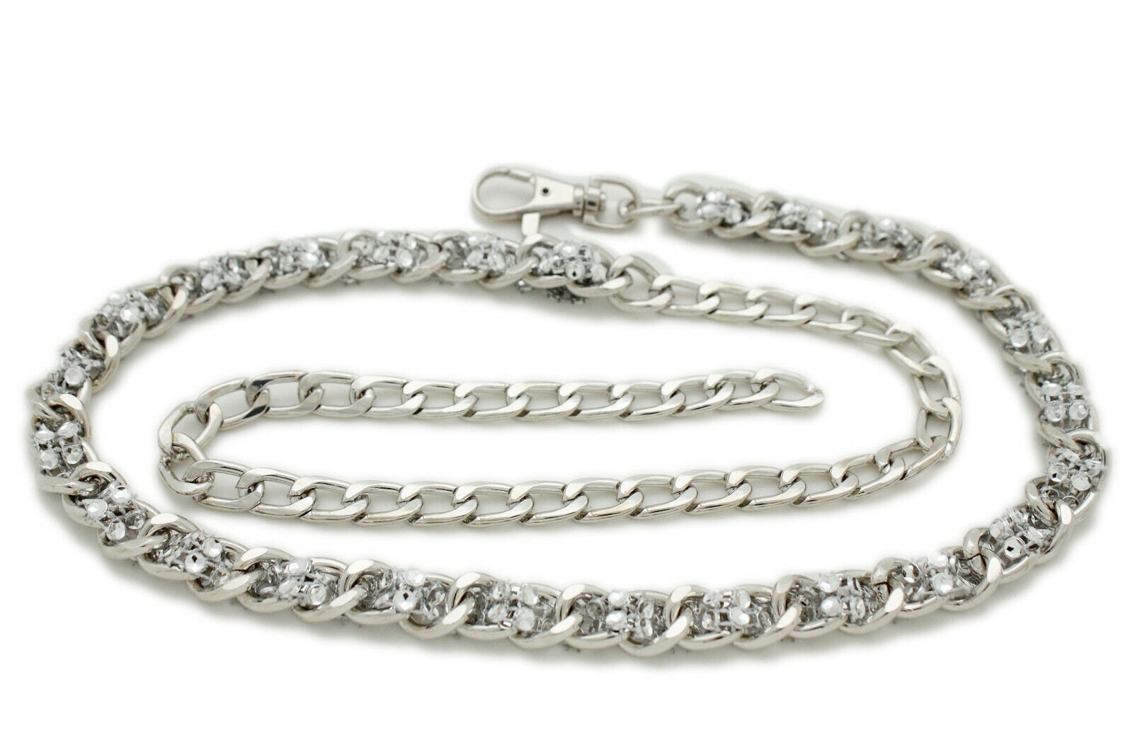 Party Perfect: Stand out at parties or special events with the fashionable flair of this silver mesh chain links waistband.