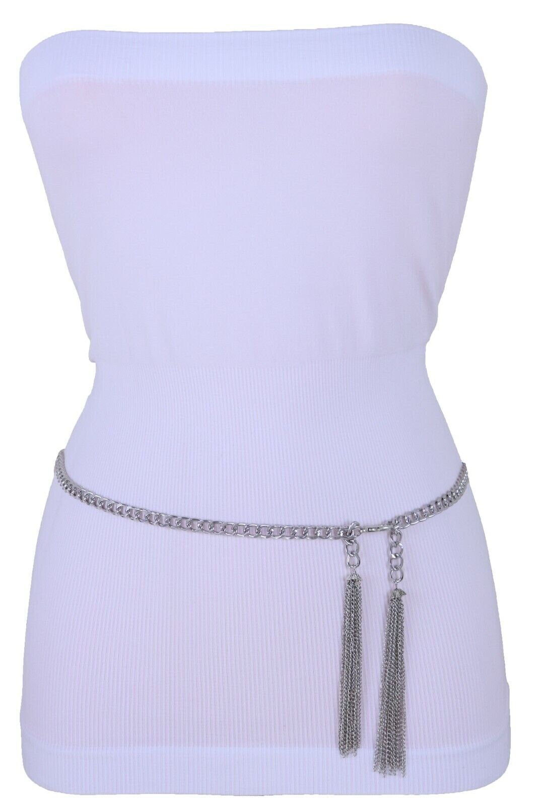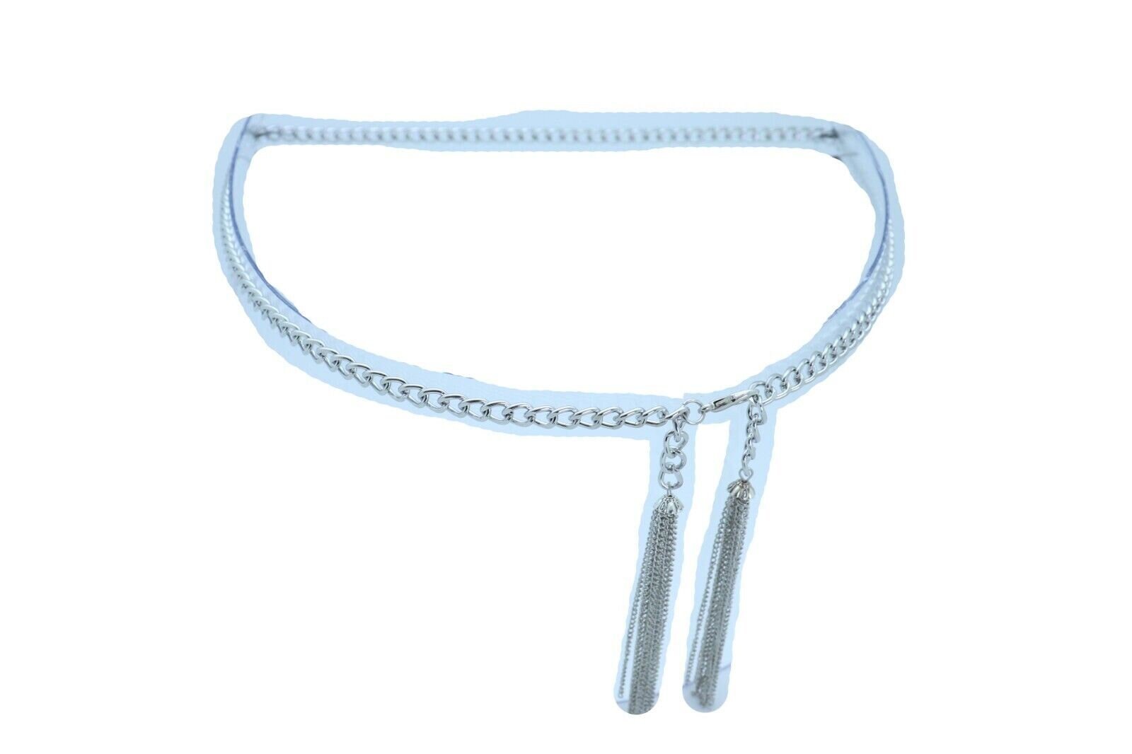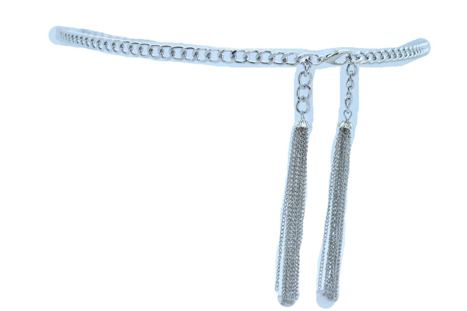 Women Silver Metal Chain Link Fashion Belt Long Tassel Fringes Charm Adjustable Size