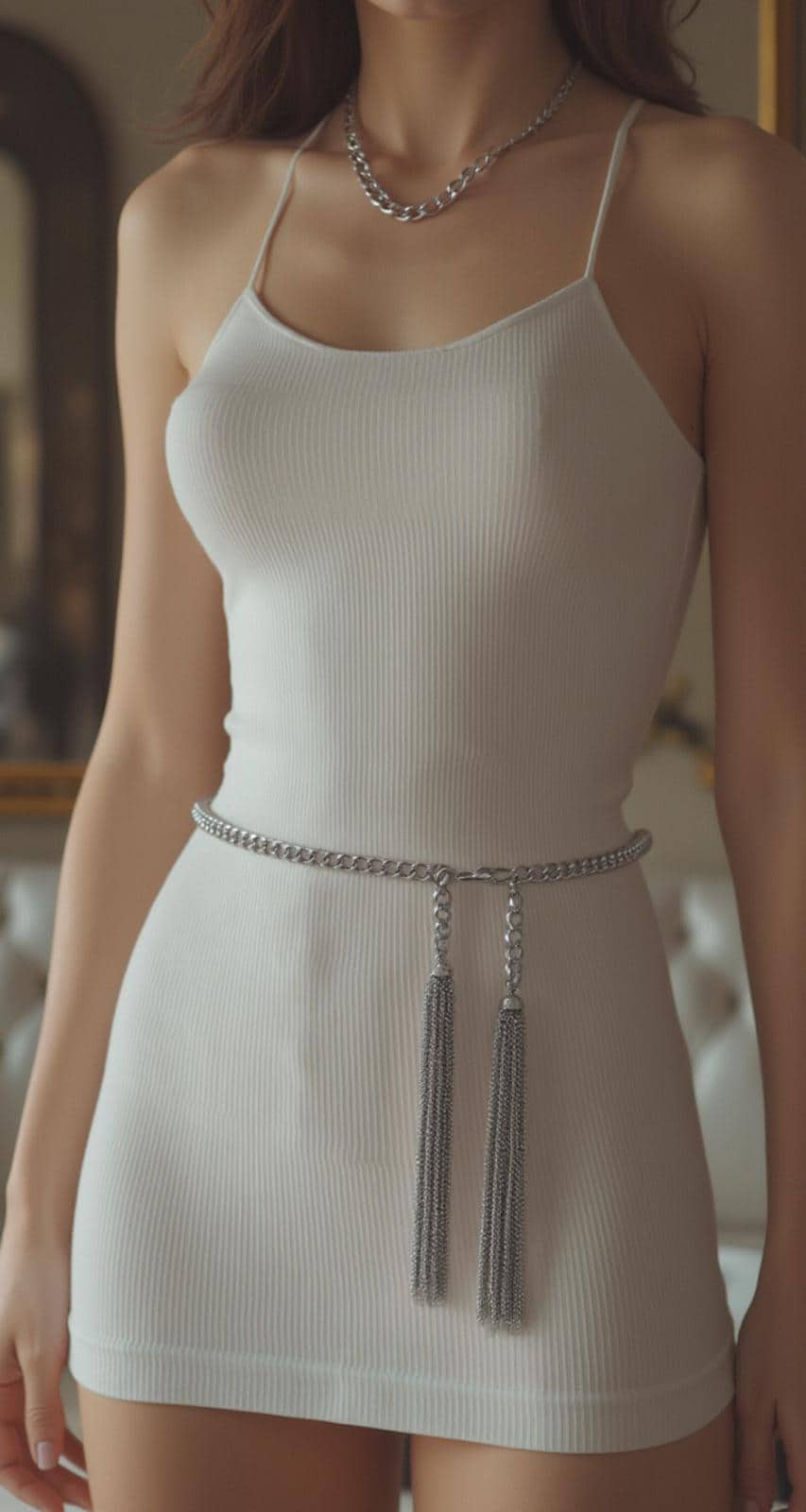 Don’t miss your chance to own one of the most sought-after statement belts of the season. With its glamorous sparkle, edgy detail, and refined silhouette, this silver chain tassel belt will become your go-to accessory for any occasion. Be bold, be glamorous, be unforgettable.
