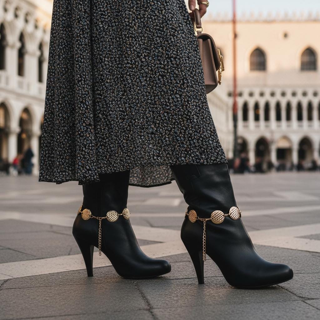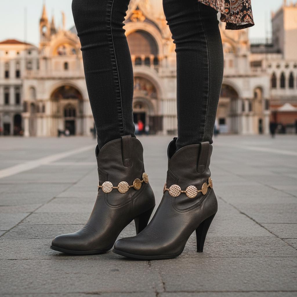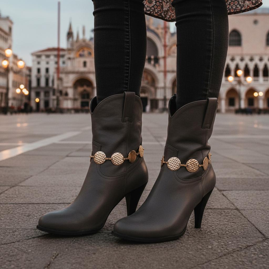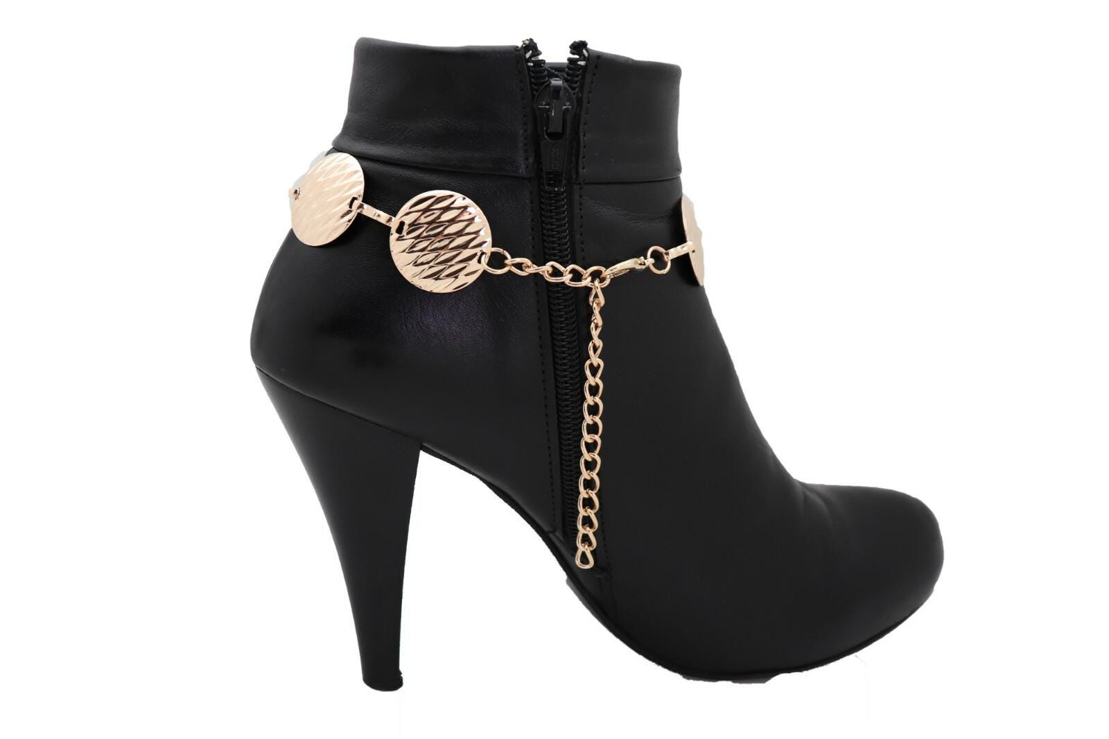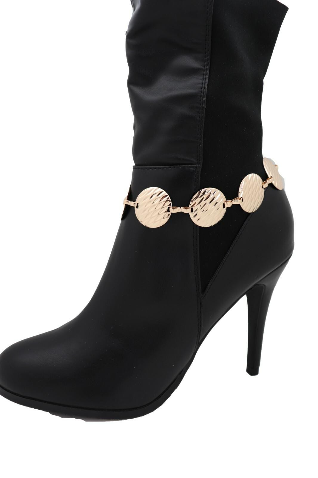 Meet the easiest way to make boots look styled in seconds. These gold tone boot chain bracelets feature textured circle disc charms that add a clean, modern shine with a western-ready attitude. They’re simple, striking, and surprisingly versatile—perfect for ankle boots, cowboy boots, and heeled booties when you want your outfit to look finished without trying too hard.