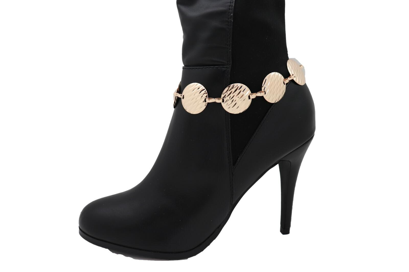 Gold Tone Textured Circle Boot Chain Bracelets, Pair Of 2 Boot Jewelry Straps BC145